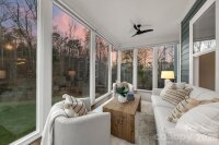 Welcome home to this exceptional John Wieland residence, perfectly tucked on a quiet cul-de-sac with its own charming pocket park. Set on one of Olmsted’s most private lots—over half an acre backing to protected woods—this home offers year-round tranquility and a truly picturesque setting. The current owners have taken meticulous care and made meaningful upgrades throughout. The screened porch has been transformed into a heated, stunning 4-season sunroom featuring remote-controlled shades, and breathtaking views of the trees and your beautiful, private yard. Inside, thoughtful design meets elevated finishes. The main level offers open, light-filled living spaces and a chef’s kitchen with gas cooking, stainless steel appliances, granite countertops, and soft-close drawers. Upstairs, you’ll find four bedrooms including a serene primary suite, along with a loft and a convenient upper-level laundry room. The fully finished basement with a full bath offers exceptional flexibility, ideal for fitness, media, hobbies, or multigenerational living. TVs convey in both the large recreation room and the bedroom. An additional flex room features plumbing already in place for a future wet bar. With walk-out access to the backyard, this level is both functional and inviting for guests. Smart-home features, remote-operated blinds throughout the house, well-chosen upgrades and all the space you need to make daily living effortless. Residents of Olmsted enjoy resort-style amenities including a clubhouse, fitness center, pool, playground, tennis courts, walking trails, and vibrant community events—one of the many reasons this neighborhood remains among Huntersville’s most desirable. This is a rare opportunity to own a beautifully maintained, move-in-ready home on one of the community’s premier lots.
