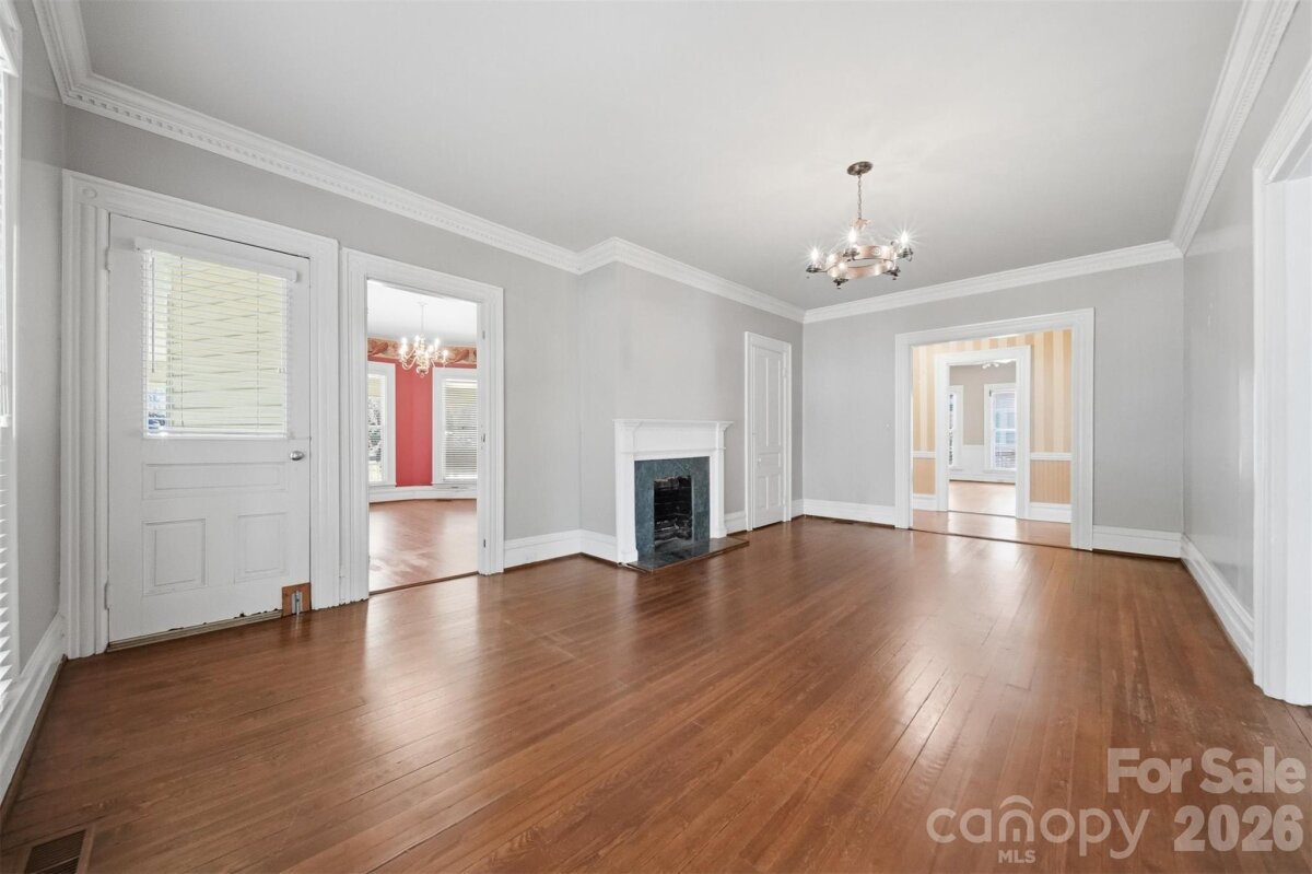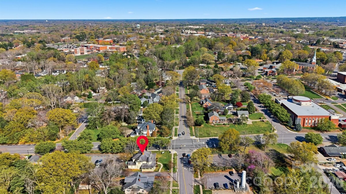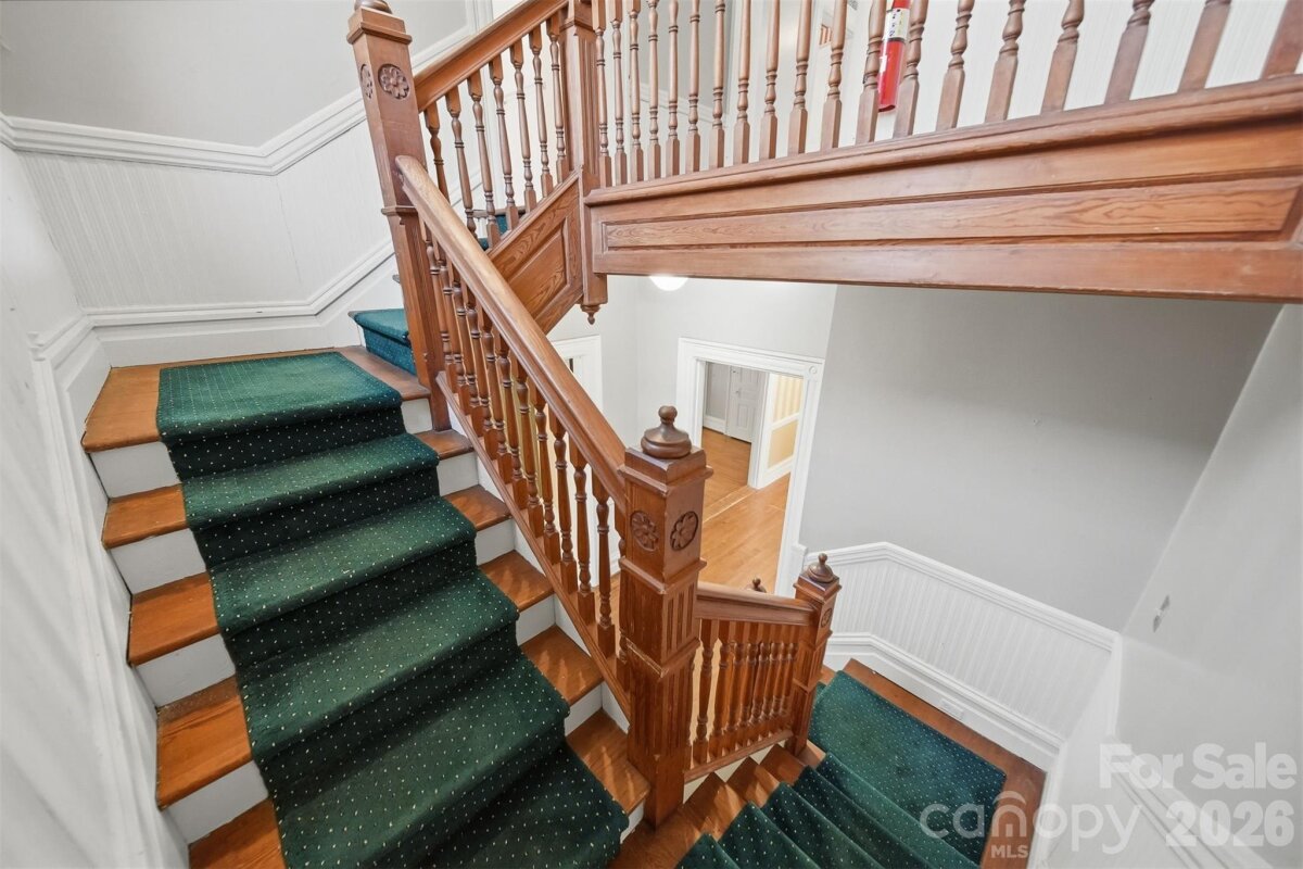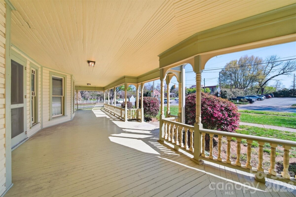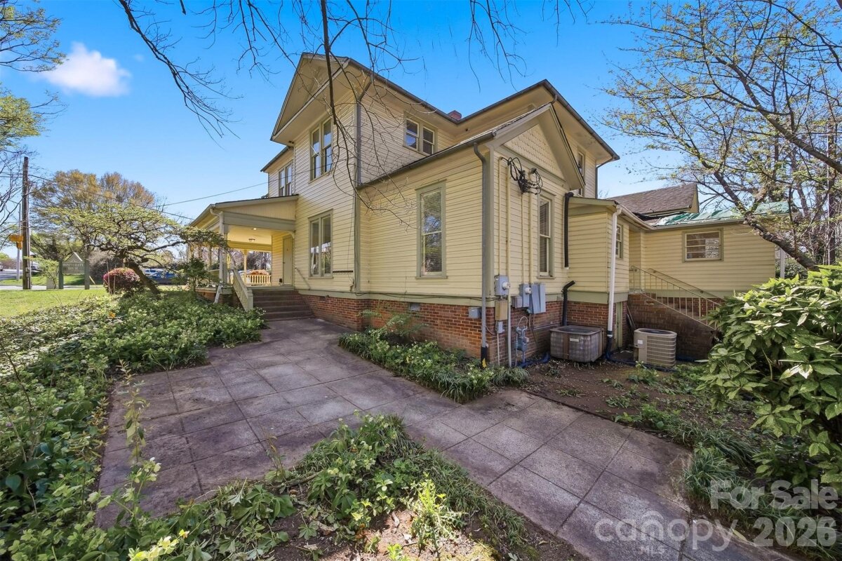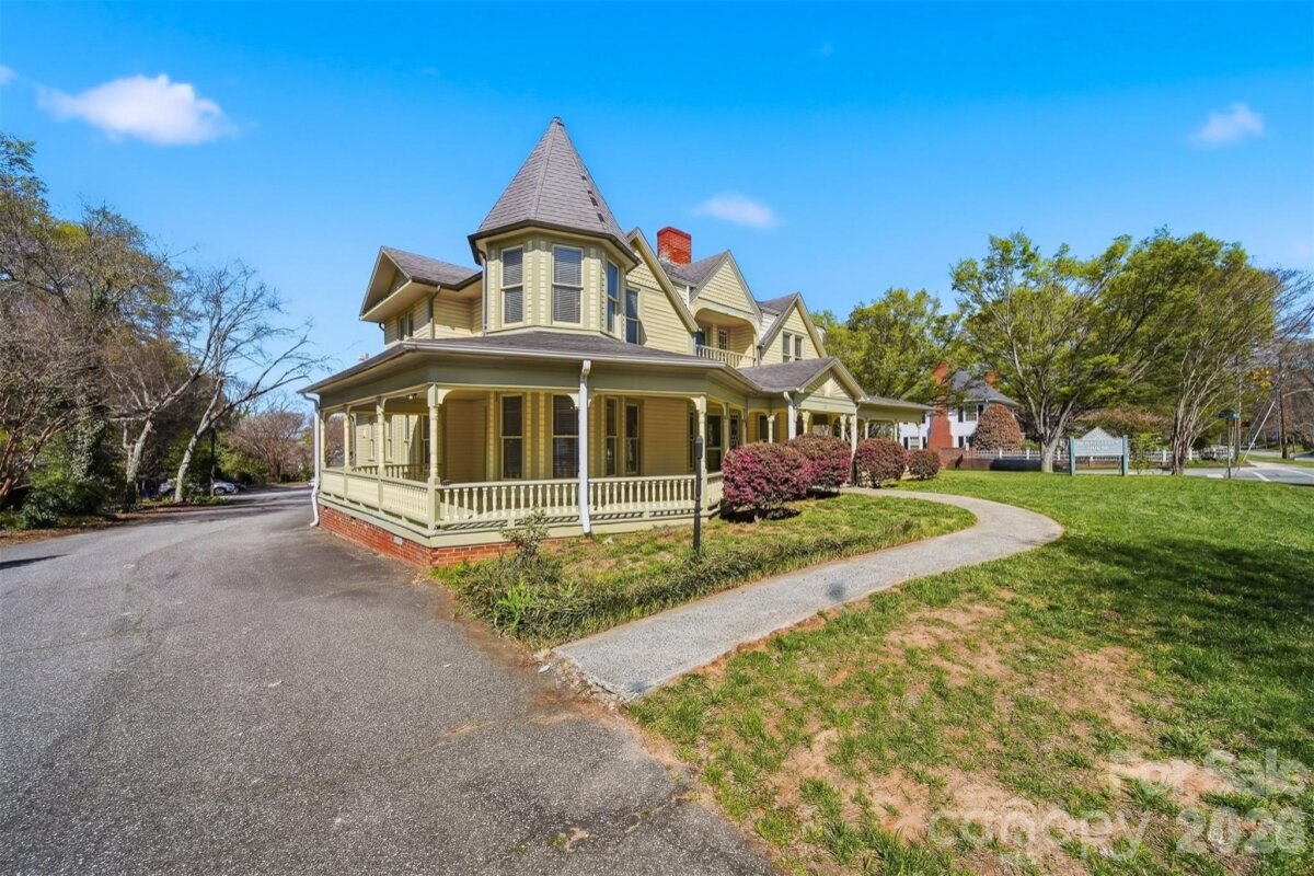 The Fox-Ingold House, known by most locals as the "Hospitality House," is now available! Located in the Claremont Historic District of downtown Hickory, this 1897 Queen Anne offers 5 bedrooms, 4 bathrooms and period detailing inside and out. Details include 9 fireplaces, each with unique mantels, hand carved stairway posts, stained glass windows, original hardwood flooring, original wainscoting, built-ins, the list goes on! The main level offers a large central foyer opening onto two front parlors, a dining room with original built-in china cabinet and wainscoting, main-level bedroom with en-suite bonus room, kitchen, laundry, and mud room. Wind your way upstairs via a hand-carved staircase made of heart pine, leading to another large landing with a stained glass exit to the centrally located upper level porch. Upstairs, four generously sized bedrooms all offer fireplaces and share a hall bathroom. Outside, a wonderful wrap-around porch welcomes guests year-round and features classic 19th century detailing that can only be found on historic properties. Located withing walking distance to downtown Hickory shopping and dining, LRU sporting events, and local schools and churches. Seller is a historic preservation organization requiring protective covenants attached to the deed at sale protecting the historic integrity of the structure, materials and site. Most changes proposed to the property will require seller’s review and approval. Modernization of the kitchen and baths are generally permitted. Roof on home will need to be replaced in near future. Seller is unsure of AC functionability.