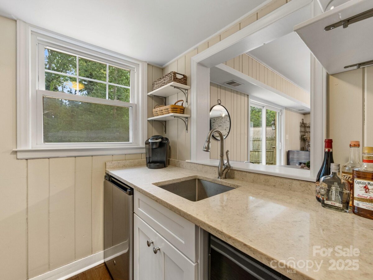 This move-in ready classic ranch is tastefully updated AND has a fabulous finished basement. Nestled in the highly desirable Robinson Woods neighborhood, this home offers comfortable living with versatile spaces for work and play. The heart of the home is a spacious, gourmet kitchen with a breakfast bar, granite counters, gas cooktop, stainless steel appliances, and a generous pantry, opening seamlessly to a cozy all-season sunroom. An oversized living room that flows into the dining room creates a sense of easy living and effortless entertaining. Downstairs, the basement is its own retreat—complete with a bedroom, large fireplace, and wet bar—perfect for guests, multigenerational living, or a fun hangout space. A walk up attic and ample storage on both levels keeps everything organized. Step outside and you’ll find two patios overlooking a large backyard, the perfect backdrop for weekend gatherings or quiet moments. New HVAC in 2022. Residents benefit from a private gate that provides direct access to Providence Day School. You’ll love this convenient Charlotte location with easy access to popular breweries, multiple restaurants, and local shopping at SouthPark, Strawberry Hill, and Cotswold.