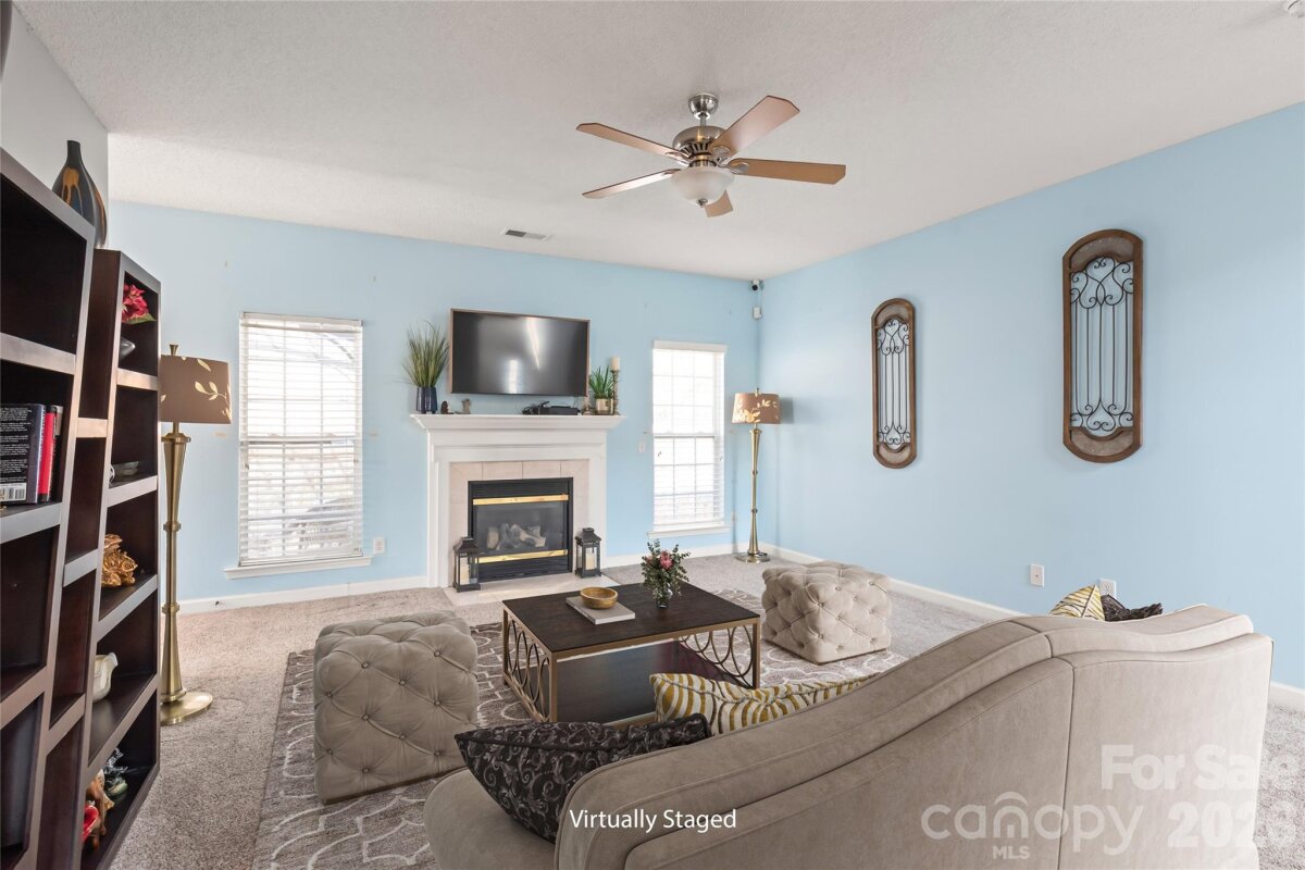 Perched at the top of a hill in the established Withrow Downs community, this classic 4 Bedroom, 2.5 Bath home enjoys an elevated setting that provides added privacy and a peaceful backdrop of mature trees. A covered front porch welcomes you into a bright two-story foyer and spacious main living area centered around a gas log fireplace. The partially remodeled kitchen features granite countertops, tile backsplash, stainless appliances and a sunny breakfast area with bay window overlooking the backyard patio—perfect for morning coffee or relaxed evenings. The main-level primary suite offers tray ceilings, a walk-in closet and a bath with dual sinks, soaking tub and separate shower. Upstairs you'll find three additional bedrooms plus a large loft that works well as a second living area, office, or playroom. Major updates include roof (approx. 2020), HVAC (2021), kitchen improvements and water heater (2022). The driveway is steep, but it flows directly to the front-facing two-car garage and helps create the elevated setting that gives this home its sense of separation from the street. With rental opportunities allowed (single-family use only, no short-term rentals), the home may also appeal to investors looking for a well-located property near major highways, shopping and entertainment.