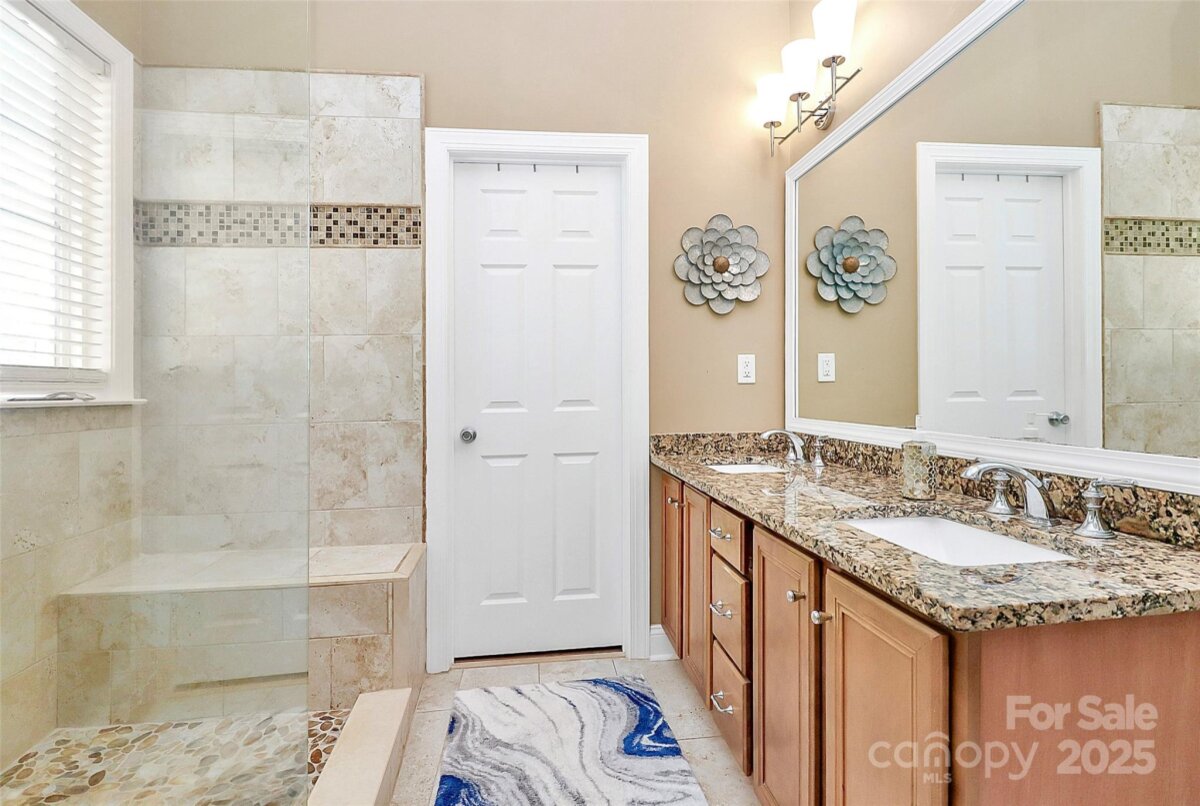 Gorgeous ranch home with a bonus suite located in the heart of Huntersville on a private corner home-site. The majority of the downstairs has just been freshly painted. The main level is 3 bedrooms with 2 full bathrooms. The large owner's suite with bathroom is located privately towards the rear of the home and bedrooms 2 and 3 are located on the other side of the home with a bathroom in the middle. The home is an open floorplan flowing nicely from the kitchen to the breakfast area and the great room making the area great for entertaining. Spacious dining room is also right of the kitchen. The bonus suite upstairs is a great space for living with plenty of room for a bed and a living area with it's own walk in closet and full bathroom plus walk in attic storage. Enjoy coffee on the covered front porch or on the back patio that is surrounded by a wooded area. Great storage in both the attic and in two large closets in the garage. Kitchen appliances - the microwave, dishwasher and refrigerator are new and have warranties that will transfer to the new buyer. Schedule your showing soon as this home won't be around long.