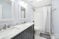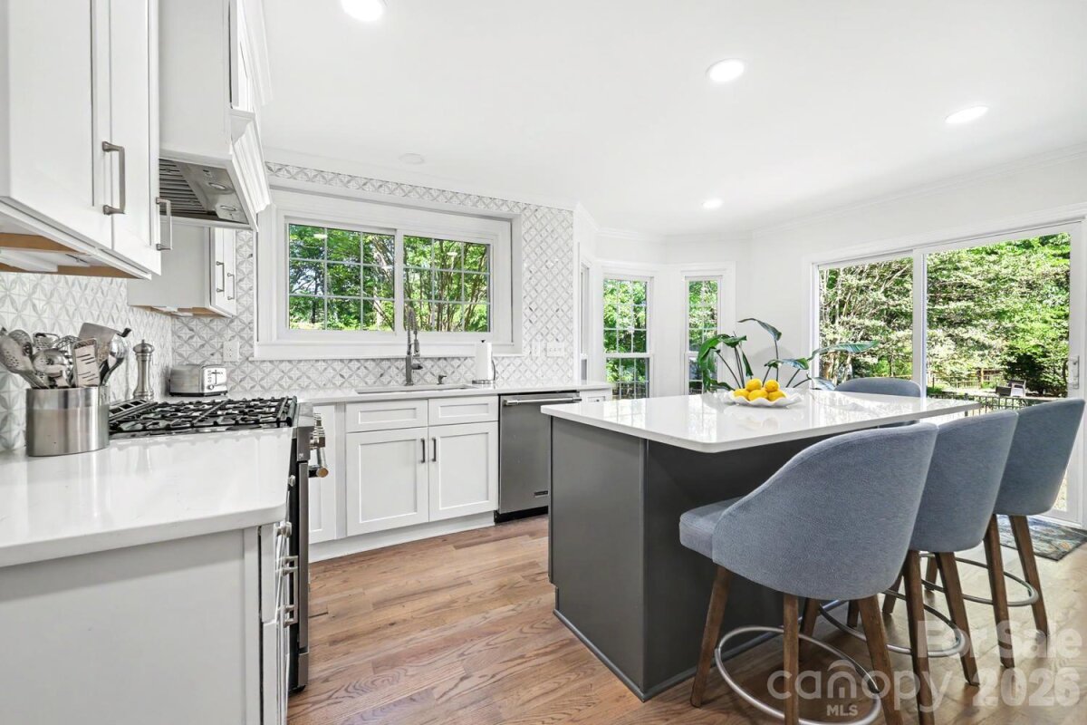 Welcome to 12227 Provincetowne Drive in the desirable Williamsburg neighborhood of Ballantyne. Situated on a rare .52-acre lot, one of the largest properties in the community, this beautifully updated 5-bedroom, 2.5-bath home offers 2854 square feet of move-in ready living space in an unbeatable location. The heart of the home is the stunning chef's kitchen, fully renovated within the past year with style and function in mind. Additional upgrades include James Hardie plank siding installed in August, fresh paint, remodeled upstairs bath and powder room, tankless water heater, plantation shutters, and hardwood floors throughout the main living areas. Upstairs, all bedrooms are thoughtfully positioned, including a spacious primary suite with a walk-in closet. The versatile fifth bedroom/bonus room offers flexible space for a guest room, playroom, media room, home office, or gym. Step outside to enjoy the screened porch overlooking a large fenced backyard with endless room to play, entertain, or relax. Additional features include a finished 2-car garage and HVAC replaced in 2019. Located in a sought-after school district with zoning for Polo Ridge Elementary, Cato Ridge Middle School, and Ballantyne Ridge High School. This home is also minutes from Stonecrest at Piper Glen, Blakeney Shopping Center, Waverly, and I-485. Exceptional lot. Prime Ballantyne location. Move in ready. NO HOA dues!