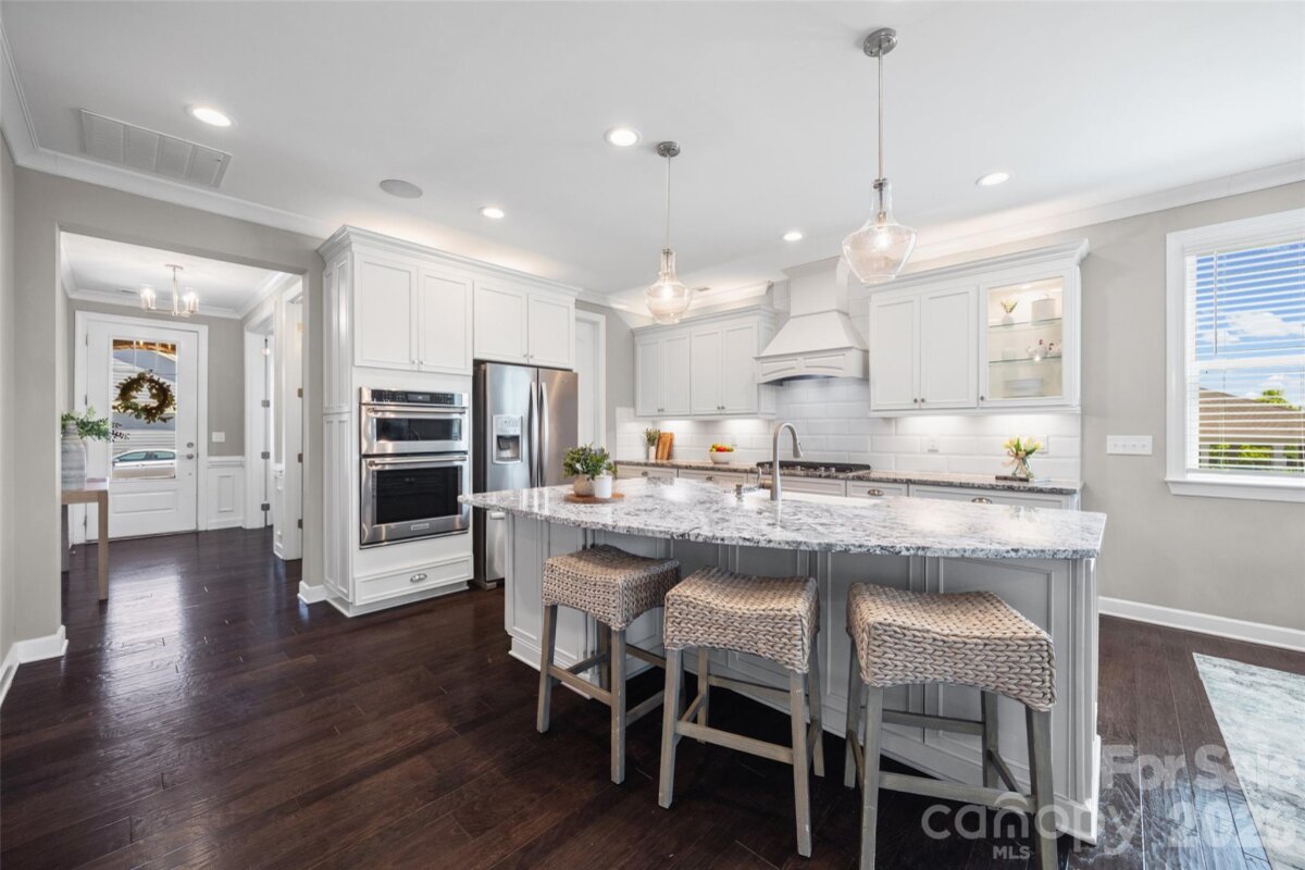 Beautiful Former Model Home in Cadence at Tega Cay! This stunning, thoughtfully designed home showcases high-end finishes and an open, inviting layout. The gourmet kitchen is a true showstopper—featuring granite countertops, a stylish backsplash, white cabinetry, KitchenAid appliances, a 5-burner gas cooktop, double ovens with built-in microwave and convection, and a large island perfect for entertaining. Rich hardwood floors extend throughout the main level, along with a well-appointed private office. The spacious primary suite offers a true retreat, featuring dual sinks, a zero-entry walk-in shower, and an oversized walk-in closet. Upstairs, you’ll find an additional bedroom with a full bath and a generously sized bonus room—ideal for guests, hobbies, or flexible living space. This home is equipped with a high-quality audio system with surround sound throughout the interior and covered porch, a high-end video security system, and high-speed internet. Enjoy the bright sunroom or relax on the covered porch, perfect for seamless indoor-outdoor living. Residents of Cadence enjoy an active lifestyle with a community pool, walking trails, and vibrant social opportunities. Ideally located near the upcoming Grove at Tega Cay, as well as shopping, dining, and convenient access to I-77.