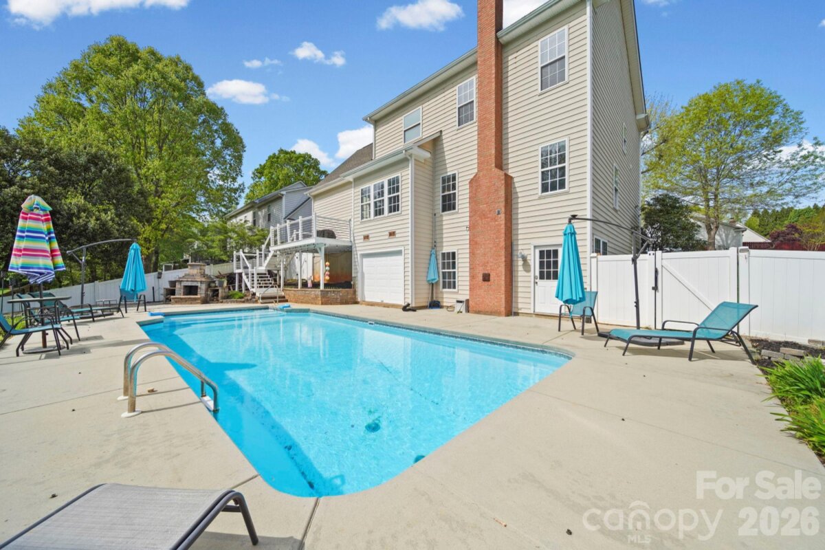 Well-maintained, original-owner home featuring a functional layout, thoughtful updates, and a backyard setup that’s ready to enjoy. The main level offers a dedicated dining room, a private office, and a comfortable living room with fireplace. The updated kitchen is a standout, featuring granite countertops, glass tile backsplash, pantry, and an oversized island in the breakfast area with additional seating and storage. From the breakfast nook, step out to the deck overlooking the backyard and saltwater pool with stairs leading down for easy access. Upstairs, the primary suite includes an updated bathroom with dual vanities, tile flooring, and a spacious walk-in shower with built-in seating. Additional bedrooms plus a bonus room currently used as a bedroom with en suite bath offer flexible living options. Laundry is conveniently located on the upper level. The basement offers excellent storage and flexible space for a home gym, hobby area, or additional use. Additional features include a hybrid dual-fuel HVAC system with electric heat pump and gas backup for efficient heating and cooling, and a roof replaced approximately 15 years ago (per seller). Convenient location with access to nearby amenities, shopping, and major roadways.