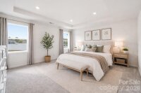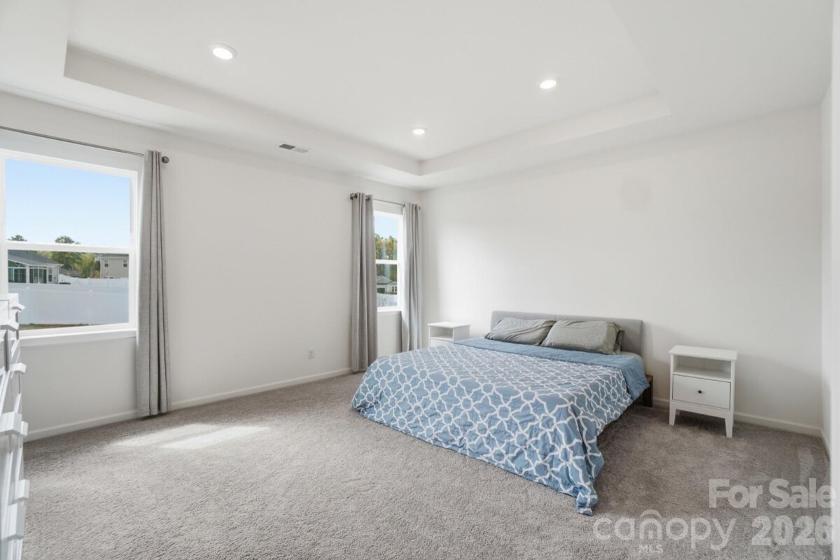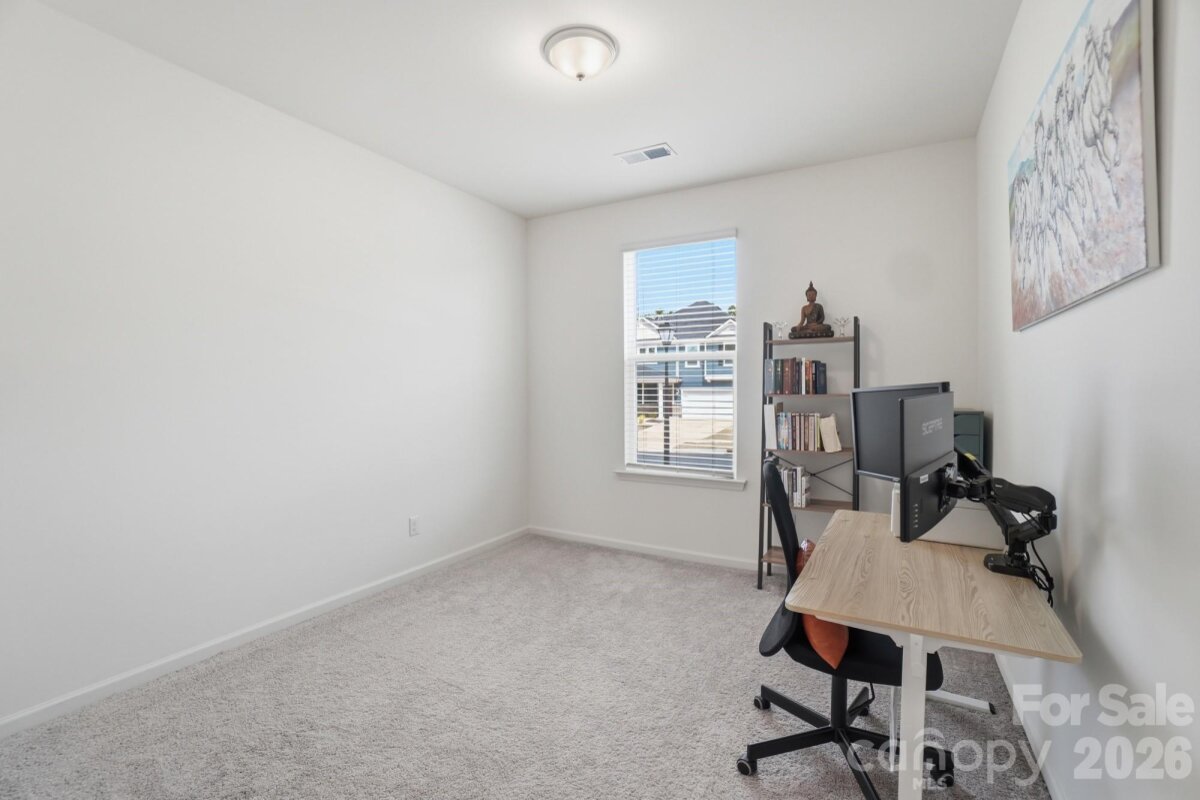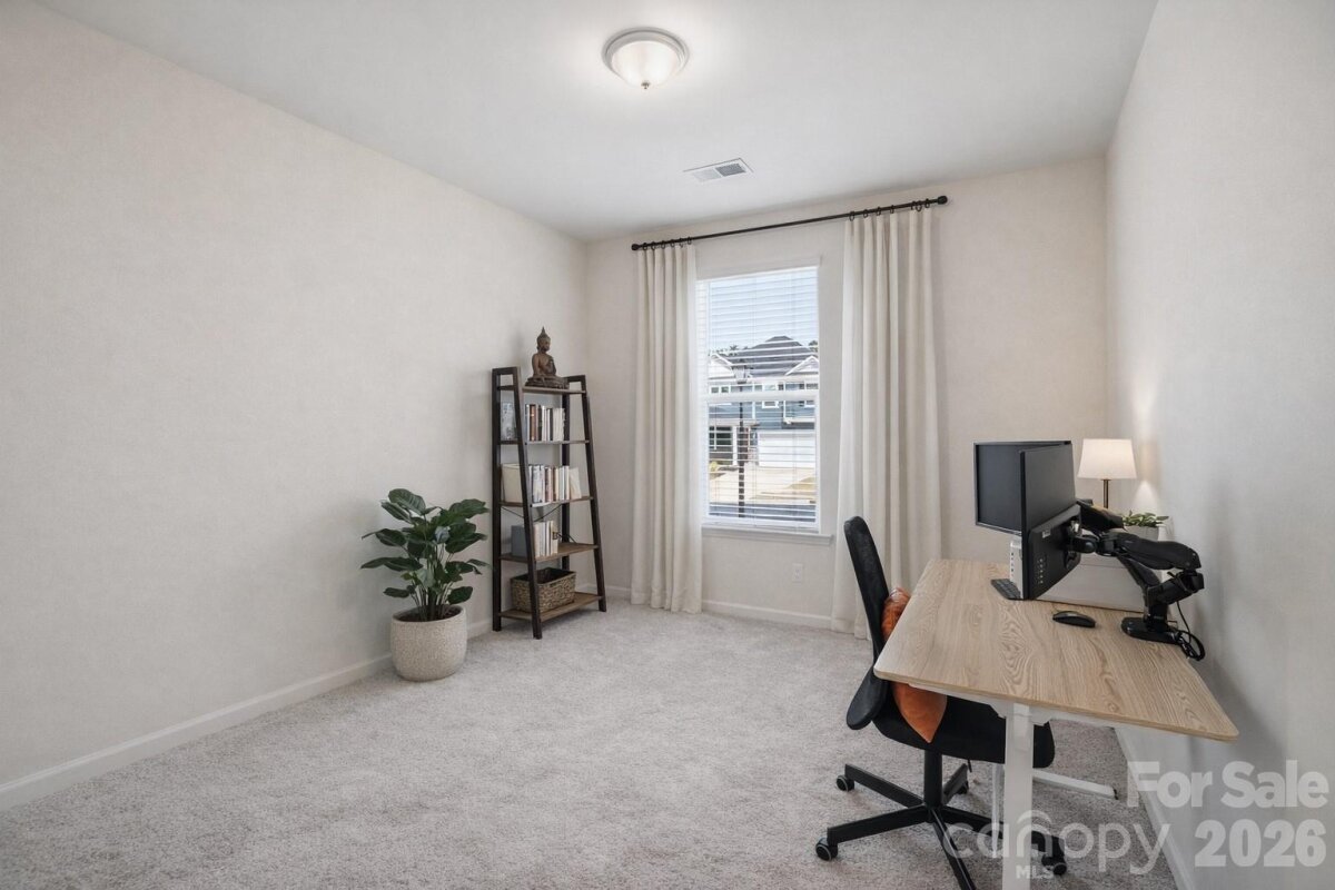 Modern two-story home offering a thoughtfully designed layout with 3 bedrooms, 2.5 baths, a dedicated office on the main level, and a versatile loft upstairs. Featuring 9-foot ceilings on both levels, this home feels open and airy throughout. The spacious floor plan is enhanced by large windows that bring in abundant natural light, creating a bright and welcoming atmosphere. The kitchen flows seamlessly into the living and dining areas, ideal for everyday living and entertaining. Upstairs, the loft provides flexible space for a media room, play area, or additional workspace. The primary suite and secondary bedrooms offer comfortable proportions and functionality. Enjoy outdoor living with an extended patio, perfect for relaxing or hosting. Additional highlights include electric vehicle charging prewire in the garage and included refrigerator, washer, and dryer, making this home move-in ready.