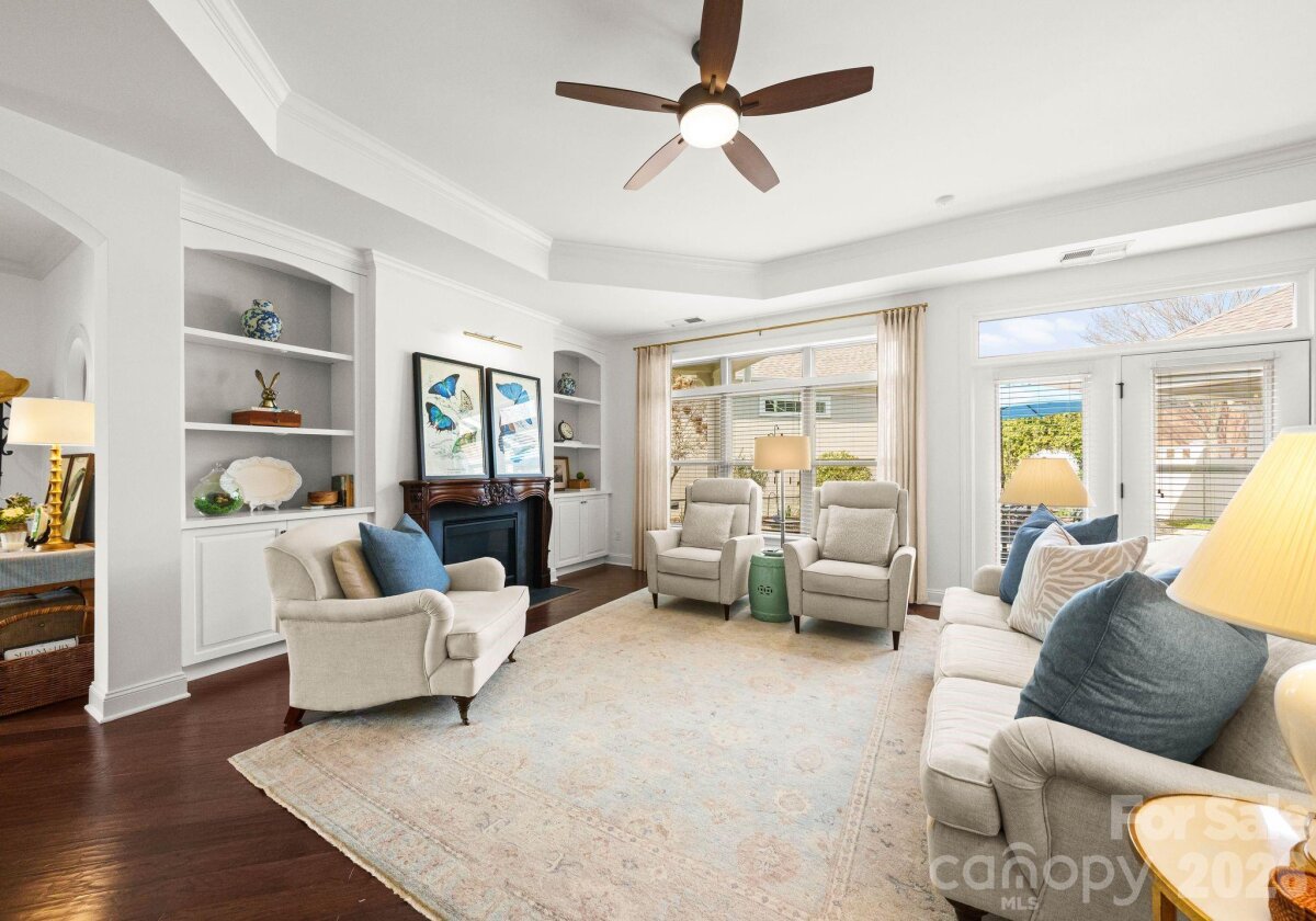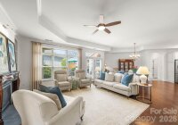 Low-maintenance living meets resort-style amenities in this charming ranch in the community of The Courtyards of Marvin. Bright, open living spaces feature high ceilings, abundant natural light, and a welcoming layout with a kitchen island, dining area, and cozy living room with gas log fireplace. The upgraded kitchen includes pull-out shelves in the pantry and most lower cabinets for added convenience. A front den and a custom sound-insulated office/studio provide flexible work or hobby space. Recent updates (since 2024) include new carpet, paint, Ring doorbell, EcoBee thermostat, and custom hardware and drapery. The spacious owner’s suite features a luxury custom closet and overlooks a private, fenced courtyard with mature landscaping. Enjoy community walking trails, a pond, outdoor pool, and fitness center—the perfect blend of comfort, privacy, and active living.