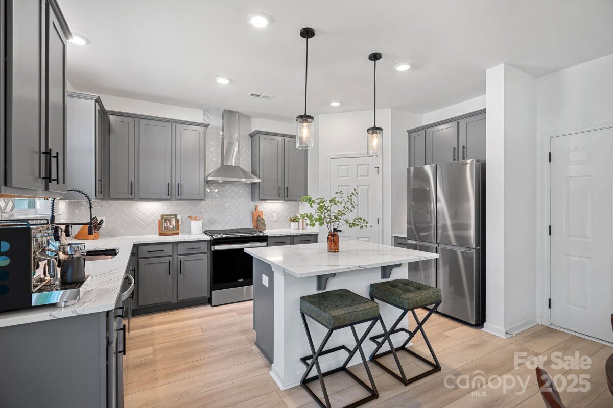 Discover this beautifully upgraded Huntersville home for sale, offering over 2,500 square feet of light-filled living space designed for both everyday comfort and effortless entertaining. Thoughtfully upgraded throughout, the home blends modern convenience with custom touches that make it both stylish and move-in ready. On the main level, the living room showcases custom built-ins with warm ambrosia maple floating shelves and coordinating countertops, adding both function and character. The breakfast area features a second set of built-ins with a matching maple counter and drawer microwave - a detail that elevates design while adding everyday convenience. At the heart of the home, the chef’s kitchen is equipped with upgraded countertops, custom finishes, and premium details, creating a space as enjoyable to cook in as it is to gather with friends and family. Statement accent walls and upgraded lighting bring personality and warmth, while refined hardware ties each space together. The powder bath has been completely refinished with an updated, polished look that guests are sure to notice. Upstairs, a spacious loft serves as a versatile bonus space - ideal for a movie room, play area, or lounge. Secondary bedrooms are inviting and comfortable, while the primary suite provides a private retreat with its thoughtful layout and elevated finishes. Outdoor living is just as impressive. Enjoy a seamless flow from the main living areas to the backyard, making this home perfect for entertaining. The fully fenced yard features custom flower beds for seasonal color, and beyond the fence you’ll find the peaceful backdrop of a natural area - no neighbors directly behind, just serene views and added privacy. This property delivers more than cosmetic updates - it offers a true lifestyle upgrade. From custom carpentry to modern finishes, every detail balances everyday function with lasting style. Situated in one of Huntersville’s most desirable neighborhoods, this home provides quick access to Lake Norman, Birkdale Village, and Uptown Charlotte, making it easy to balance suburban comfort with urban convenience. With its blend of custom details, versatile spaces, and private outdoor retreat, this home combines the peace of mind of new construction with thoughtful upgrades already in place. Truly better than new - and ready to welcome its next owner! *1% lender credit being offered toward closing costs or rate buy-down with use of preferred lender*