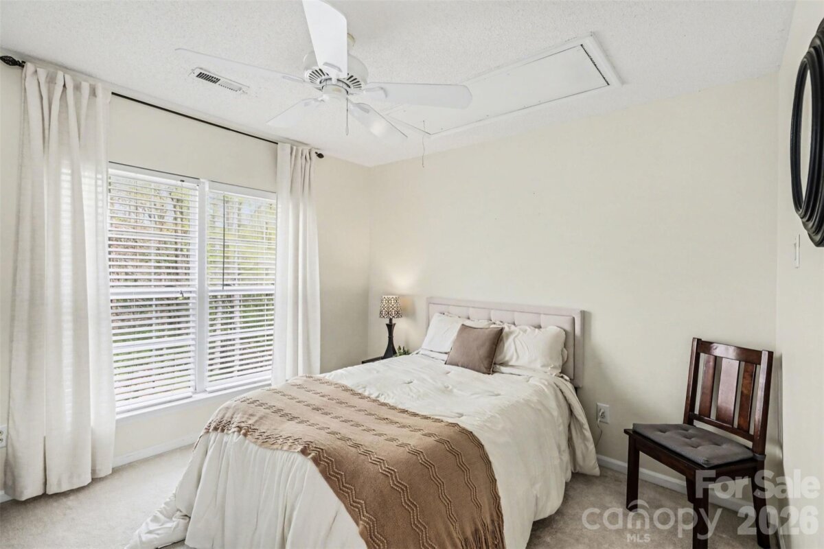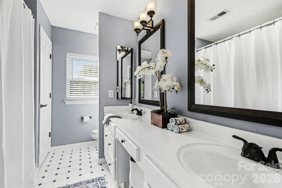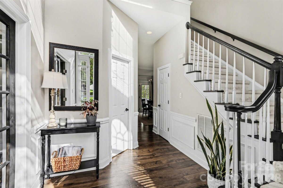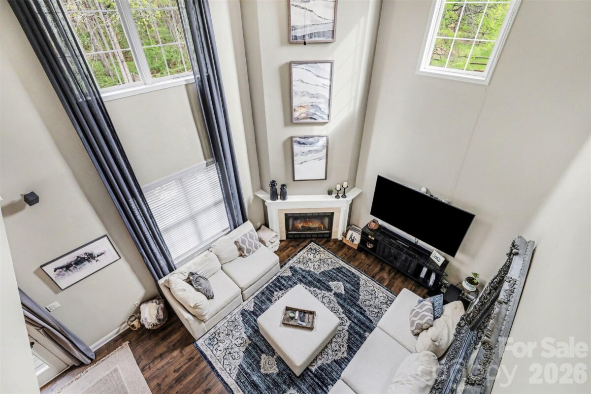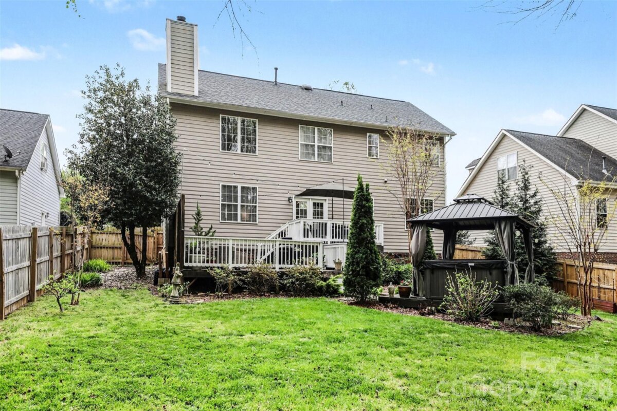 Welcome to 12329 Panthersville Dr., located in the established community of Devonshire with convenient access to I-85, I-77, and I-485. Upon entering, you are greeted by a two-story foyer filled with morning light, featuring a modern office space to the left and a sweeping staircase to the right. The main level also includes a two-story living room with a gas fireplace, a formal dining room, and the kitchen complete with updated lighting, a farmhouse sink, quartz countertops, tile backsplash, and stainless steel appliances. Upstairs, a generous landing leads to the primary bedroom, featuring vaulted ceilings and an ensuite bath with heated tile floors and soaking tub. The upper level also offers two additional bedrooms in neutral tones, a second full bath, and a dedicated laundry room. Outside, you can enjoy lush landscaping and spaces designed for entertaining or relaxing. As spring arrives in the Carolinas, the colorful blooms and foliage will set the stage for a wonderful summer. Notably, this home is situated in a neighborhood where a Greenway expansion is slated to pass through the woods behind the property, once completed it would provide direct access to a variety of outdoor activities. Dining, shopping and entertainment options nearby. Thoughtfully updated and meticulously maintained, this home is ready for its next chapter.