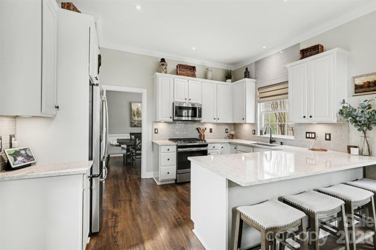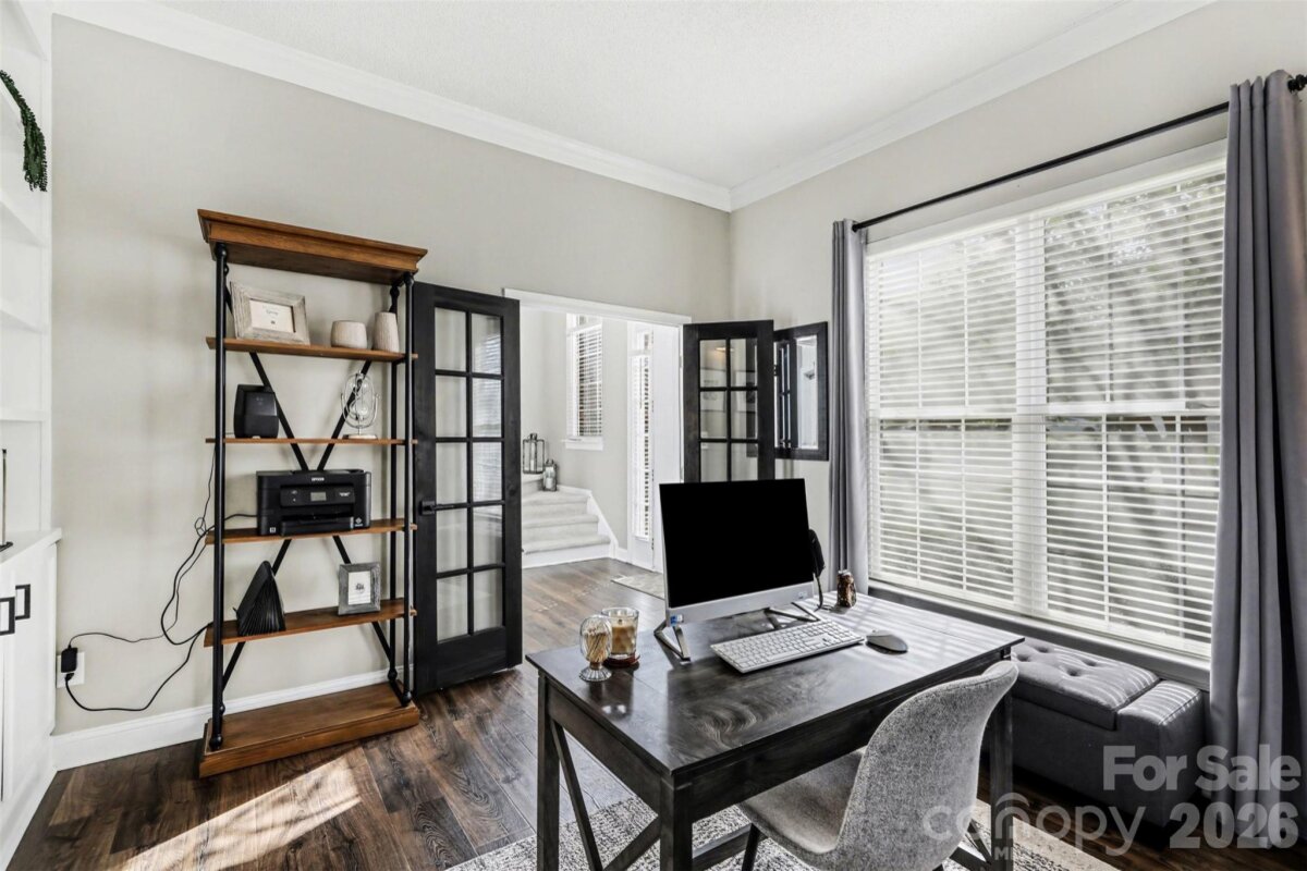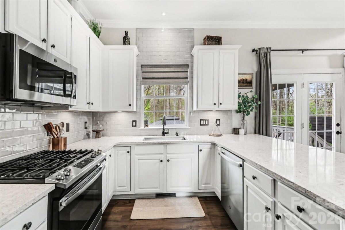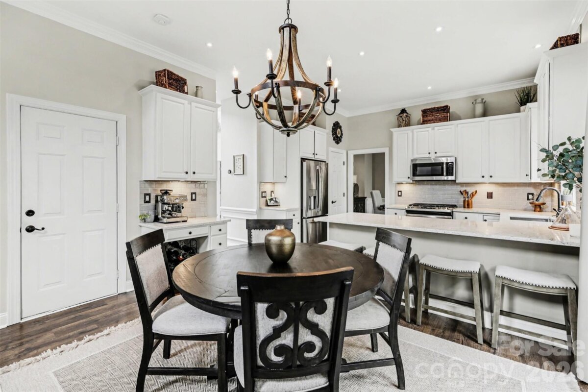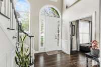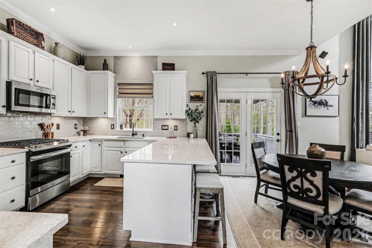 Welcome to 12329 Panthersville Dr., located in the established community of Devonshire with convenient access to I-85, I-77, and I-485. Upon entering, you are greeted by a two-story foyer filled with morning light, featuring a modern office space to the left and a sweeping staircase to the right. The main level also includes a two-story living room with a gas fireplace, a formal dining room, and the kitchen complete with updated lighting, a farmhouse sink, quartz countertops, tile backsplash, and stainless steel appliances. Upstairs, a generous landing leads to the primary bedroom, featuring vaulted ceilings and an ensuite bath with heated tile floors and soaking tub. The upper level also offers two additional bedrooms in neutral tones, a second full bath, and a dedicated laundry room. Outside, you can enjoy lush landscaping and spaces designed for entertaining or relaxing. As spring arrives in the Carolinas, the colorful blooms and foliage will set the stage for a wonderful summer. Notably, this home is situated in a neighborhood where a Greenway expansion is slated to pass through the woods behind the property, once completed it would provide direct access to a variety of outdoor activities. Dining, shopping and entertainment options nearby. Thoughtfully updated and meticulously maintained, this home is ready for its next chapter.