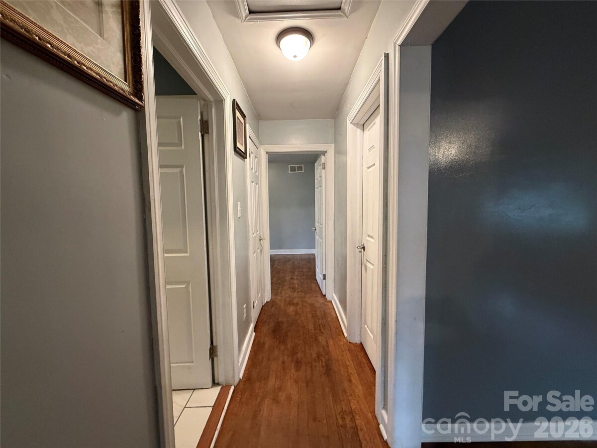 1400 Sq Ft brick home in Hickory with unfinished full basement and fenced backyard. Three bedroom one and 1/2 bath with hardwood and tile floors. Roof and Heat Pump are about four years old. Granite countertops.