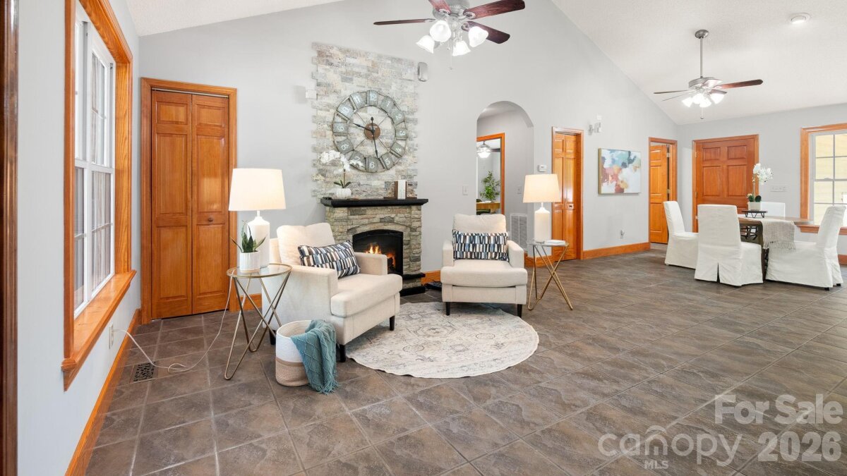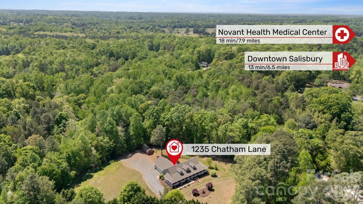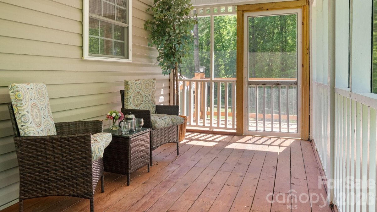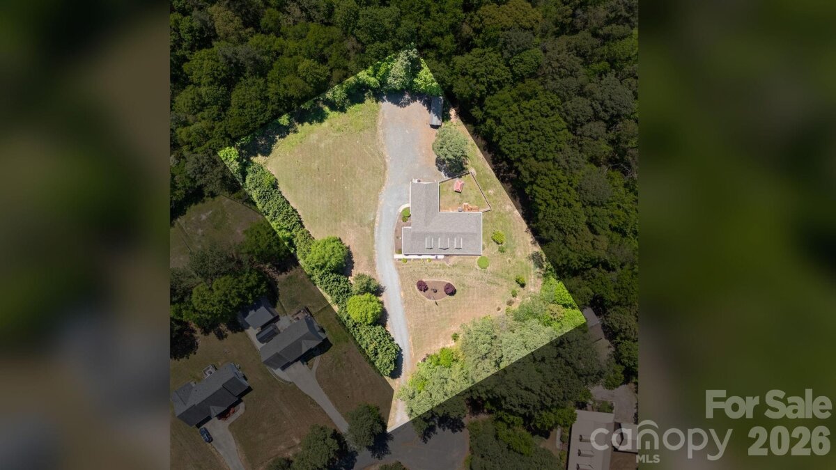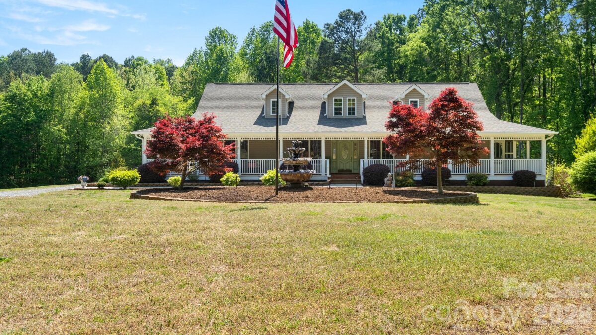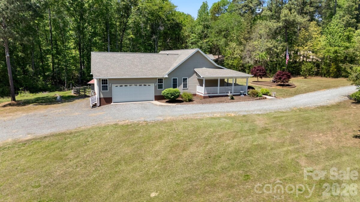 A winding gravel drive welcomes you to the expansive 1.6+ acres of privacy at the end of a cul-de-sac lot. With the feel of a country estate, the airy, light-filled ranch has a spectacular wrap around porch! Live, play, work, entertain, garden/homestead and revel in the nature around you. Flat, green acreage is encircled with a ring of mature trees for near perfect privacy all around. This updated 3-bedroom, 2-bathroom home features LVP throughout a split bedroom floor plan with a bonus Flex Room. There is so much to love, from the great room with soaring vaulted ceilings to the warm wood tones. The spacious primary suite has an updated ensuite with zero entry shower, access to a cozy screened-in porch and a massive walk-in closet! Fresh, neutral interior paint throughout, including the 2 1/2 car oversized garage. Huge laundry room for additional storage. Surprise! A finished room over the garage with a split HVAC system is ready for your home office, hobbies, entertainment, more! Peace of mind: New Roof installed in 2024, New paint, new granite countertops, new backsplash, new LVP floors, new HVAC split in finished Flex Space, MORE! YES, the whole home generator conveys! NO HOA! It offers the perfect mix of a rural feel while remaining close to everything the Charlotte region has to offer. A three-minute drive to Main Street, Faith, NC amenities. Quick access to I-85. Located 10 minutes from Salisbury, 20 minutes to Concord, 40 minutes to Uptown Charlotte.