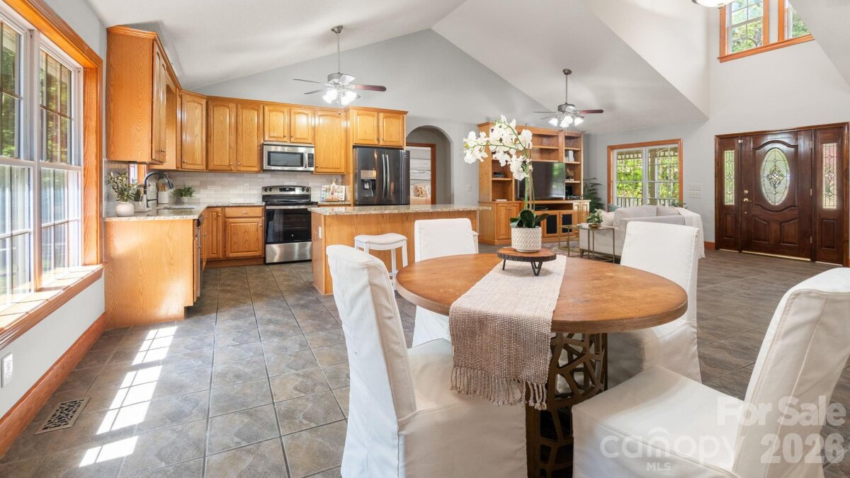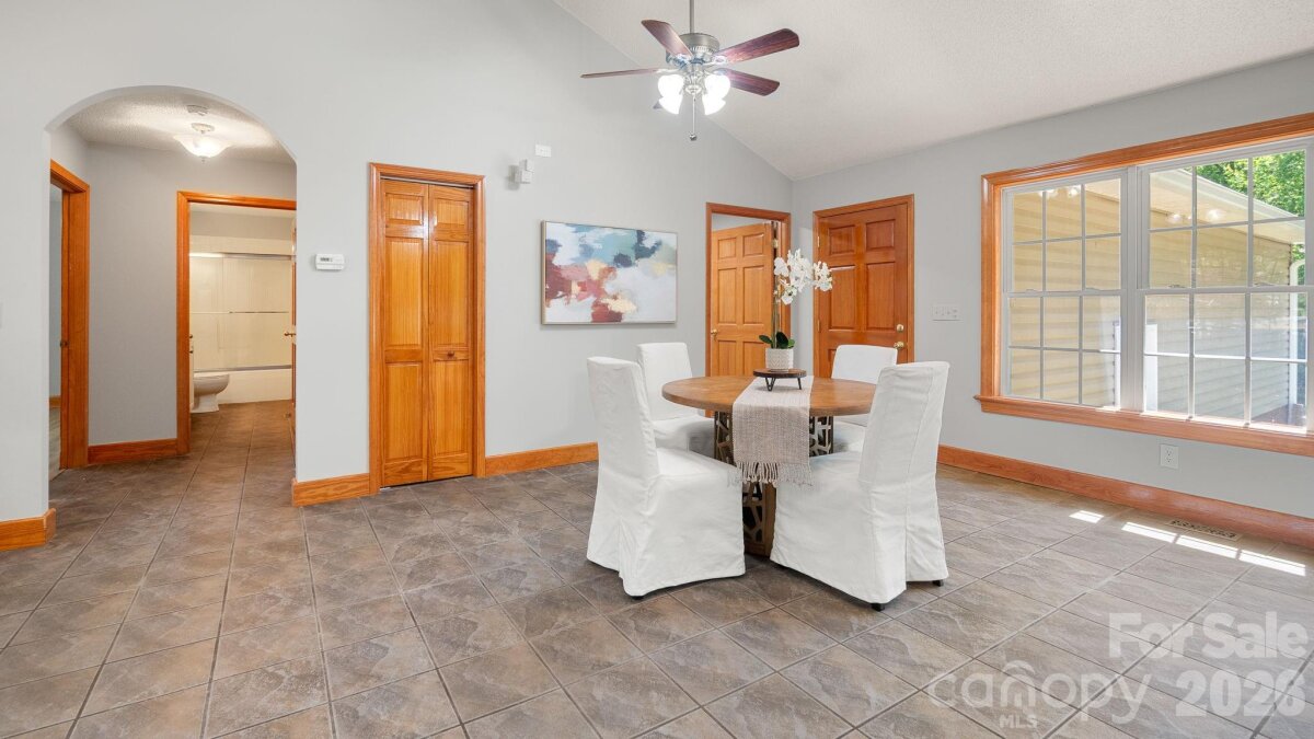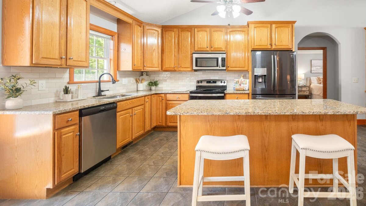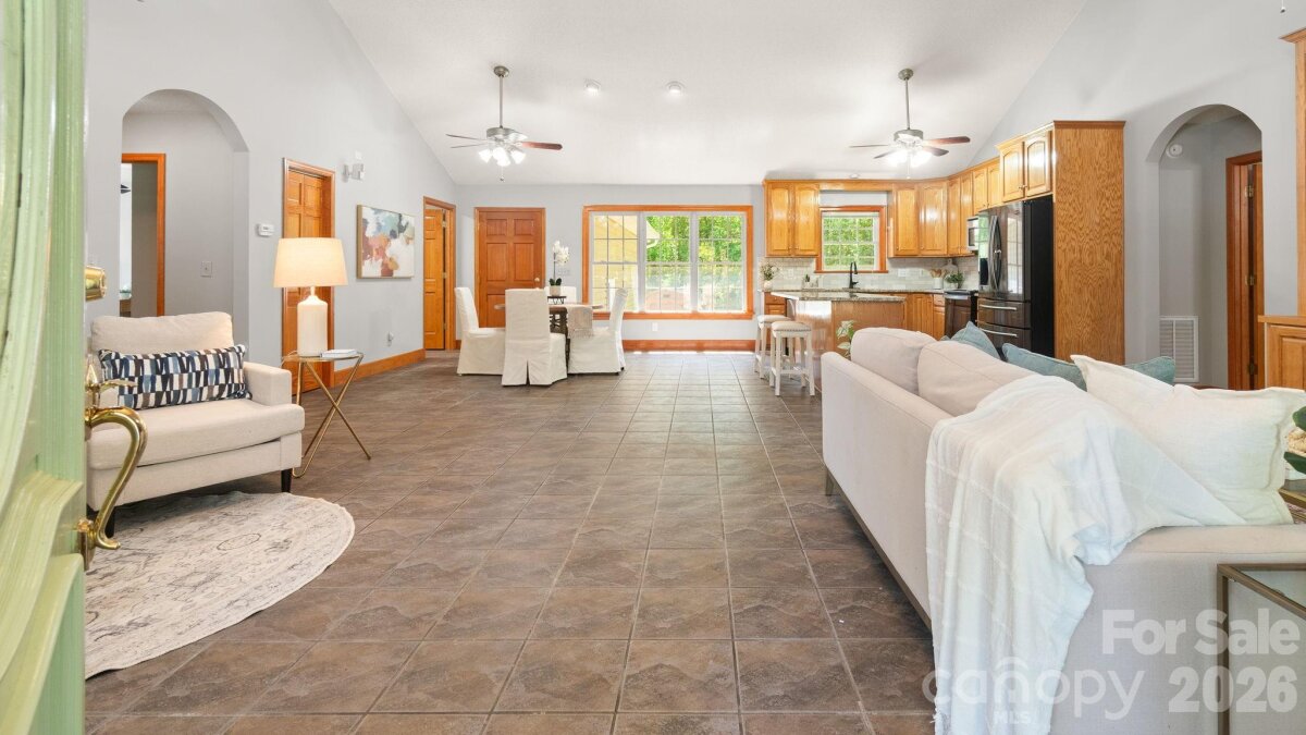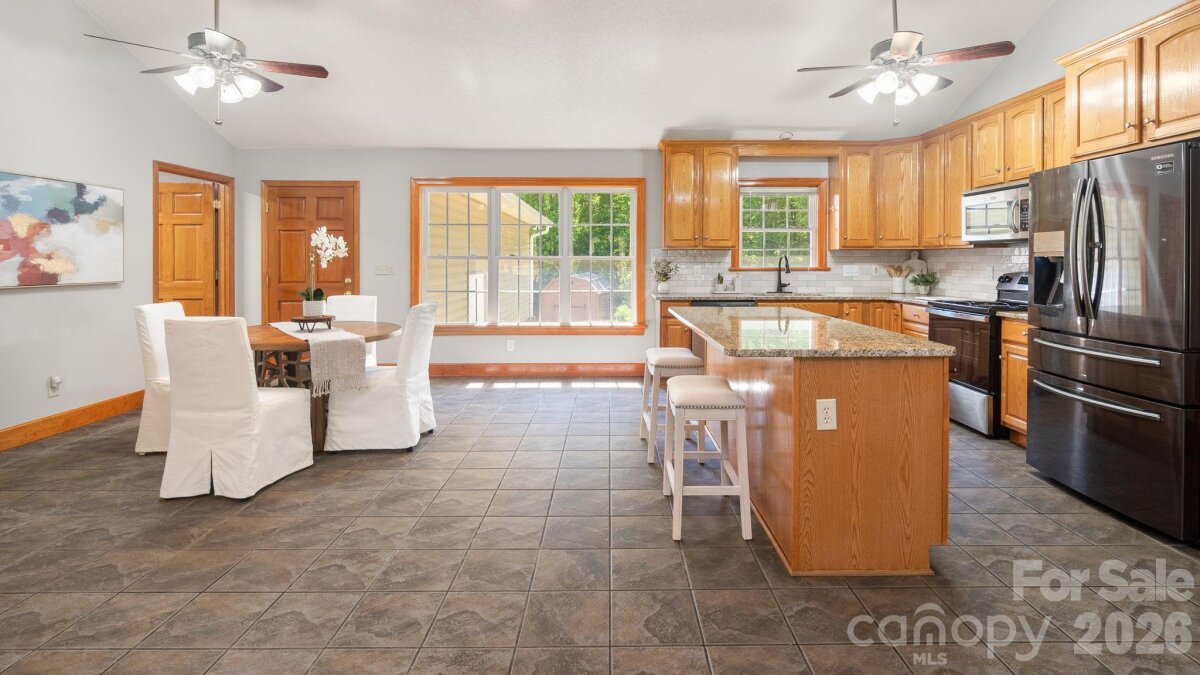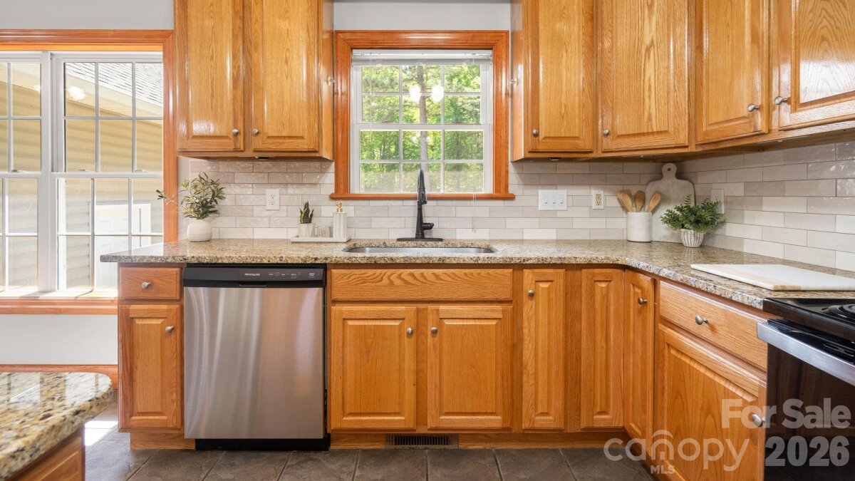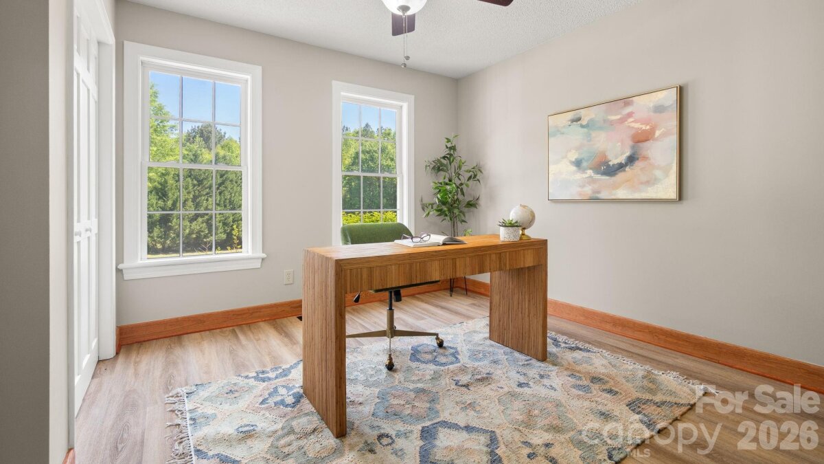 A winding gravel drive welcomes you to the expansive 1.6+ acres of privacy at the end of a cul-de-sac lot. With the feel of a country estate, the airy, light-filled ranch has a spectacular wrap around porch! Live, play, work, entertain, garden/homestead and revel in the nature around you. Flat, green acreage is encircled with a ring of mature trees for near perfect privacy all around. This updated 3-bedroom, 2-bathroom home features LVP throughout a split bedroom floor plan with a bonus Flex Room. There is so much to love, from the great room with soaring vaulted ceilings to the warm wood tones. The spacious primary suite has an updated ensuite with zero entry shower, access to a cozy screened-in porch and a massive walk-in closet! Fresh, neutral interior paint throughout, including the 2 1/2 car oversized garage. Huge laundry room for additional storage. Surprise! A finished room over the garage with a split HVAC system is ready for your home office, hobbies, entertainment, more! Peace of mind: New Roof installed in 2024, New paint, new granite countertops, new backsplash, new LVP floors, new HVAC split in finished Flex Space, MORE! YES, the whole home generator conveys! NO HOA! It offers the perfect mix of a rural feel while remaining close to everything the Charlotte region has to offer. A three-minute drive to Main Street, Faith, NC amenities. Quick access to I-85. Located 10 minutes from Salisbury, 20 minutes to Concord, 40 minutes to Uptown Charlotte.