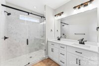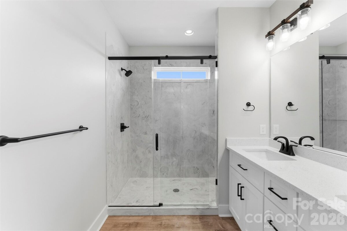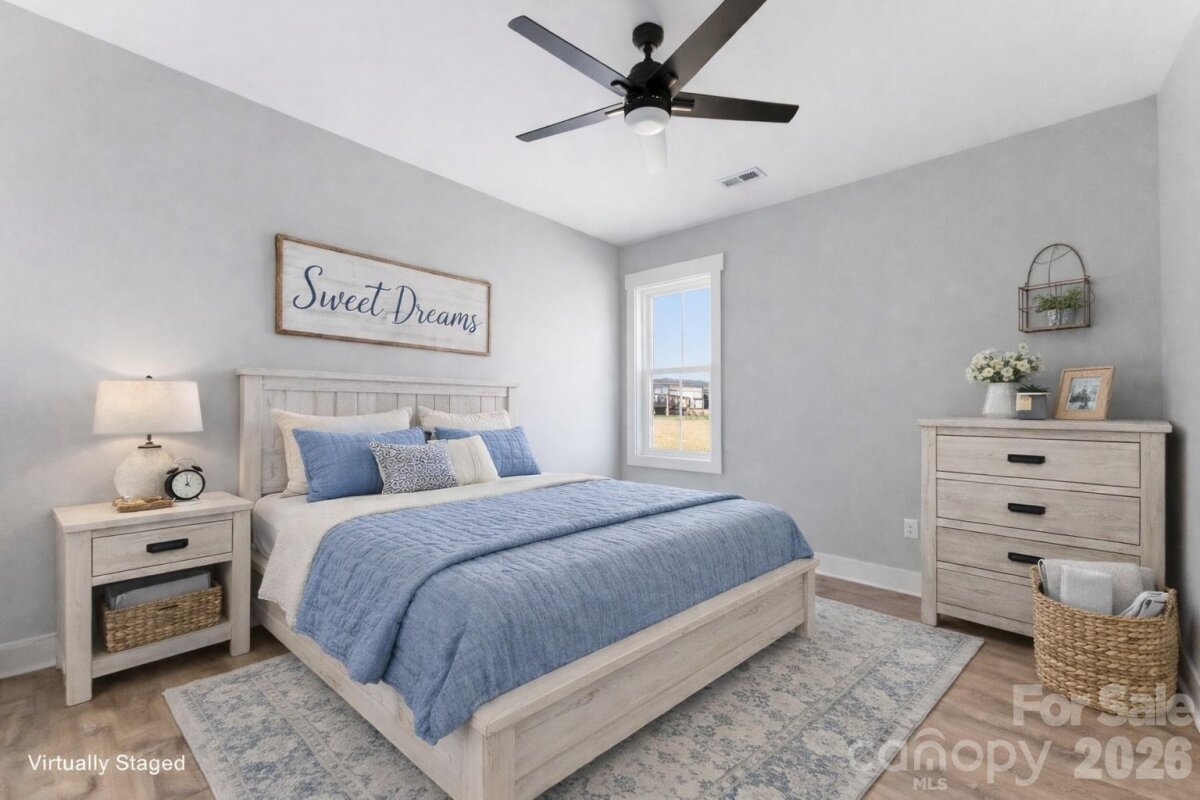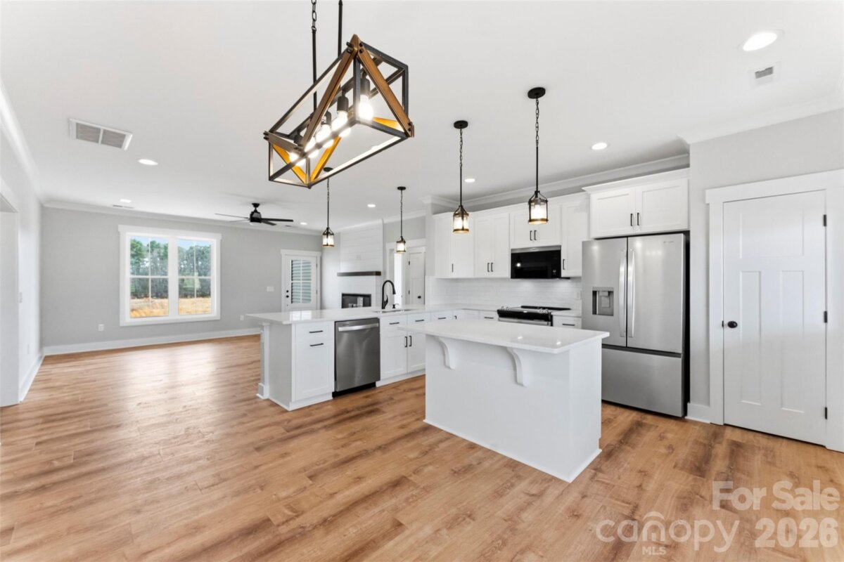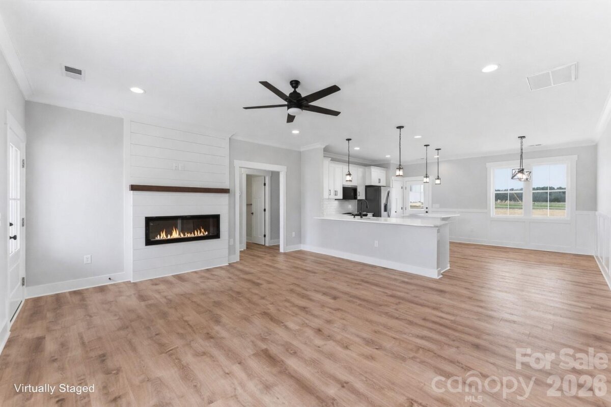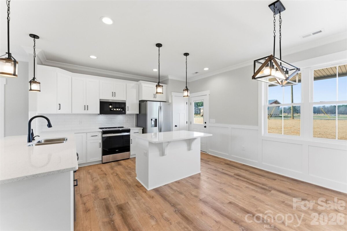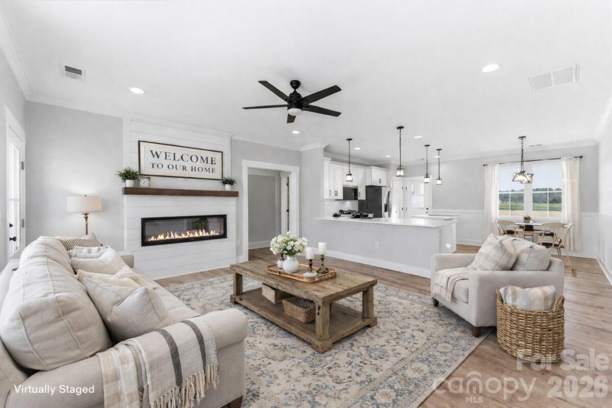 Stunning new construction in the sought-after western part of Stanly County, situated on nearly an acre with no HOA. Featuring gorgeous carbon-colored exterior siding for standout curb appeal, this home offers desirable main-level living plus an expansive upstairs bonus room for added flexibility. The open-concept layout includes a beautifully designed kitchen with custom white shaker cabinetry, sparkle quartz countertops, subway tile backsplash, stainless steel appliances, and pendant lighting. The primary suite features a coffered ceiling, large walk-in closet, and a spa-inspired bath with dual vanities and a marble walk-in shower with built-in bench and glass enclosure. Two additional bedrooms and a full bath complete the main level. Upstairs, the oversized bonus room provides endless possibilities — ideal for a media room, playroom, home office, fitness space, or private guest retreat — along with access to a large walk-in attic for convenient storage. Enjoy both covered front and rear porches, offering inviting spaces to relax or entertain, along with an attached two-car garage for everyday convenience. A rare opportunity for new construction with space and freedom in the desirable city of Locust.