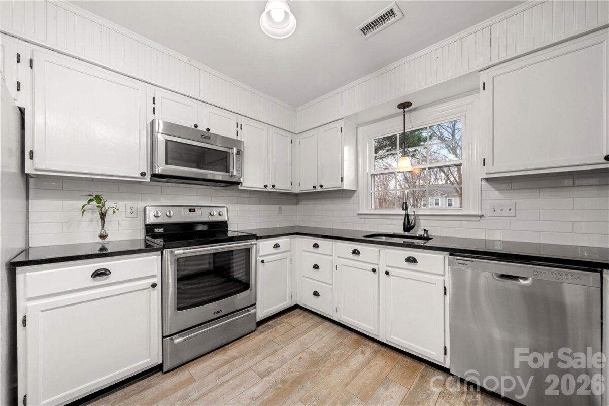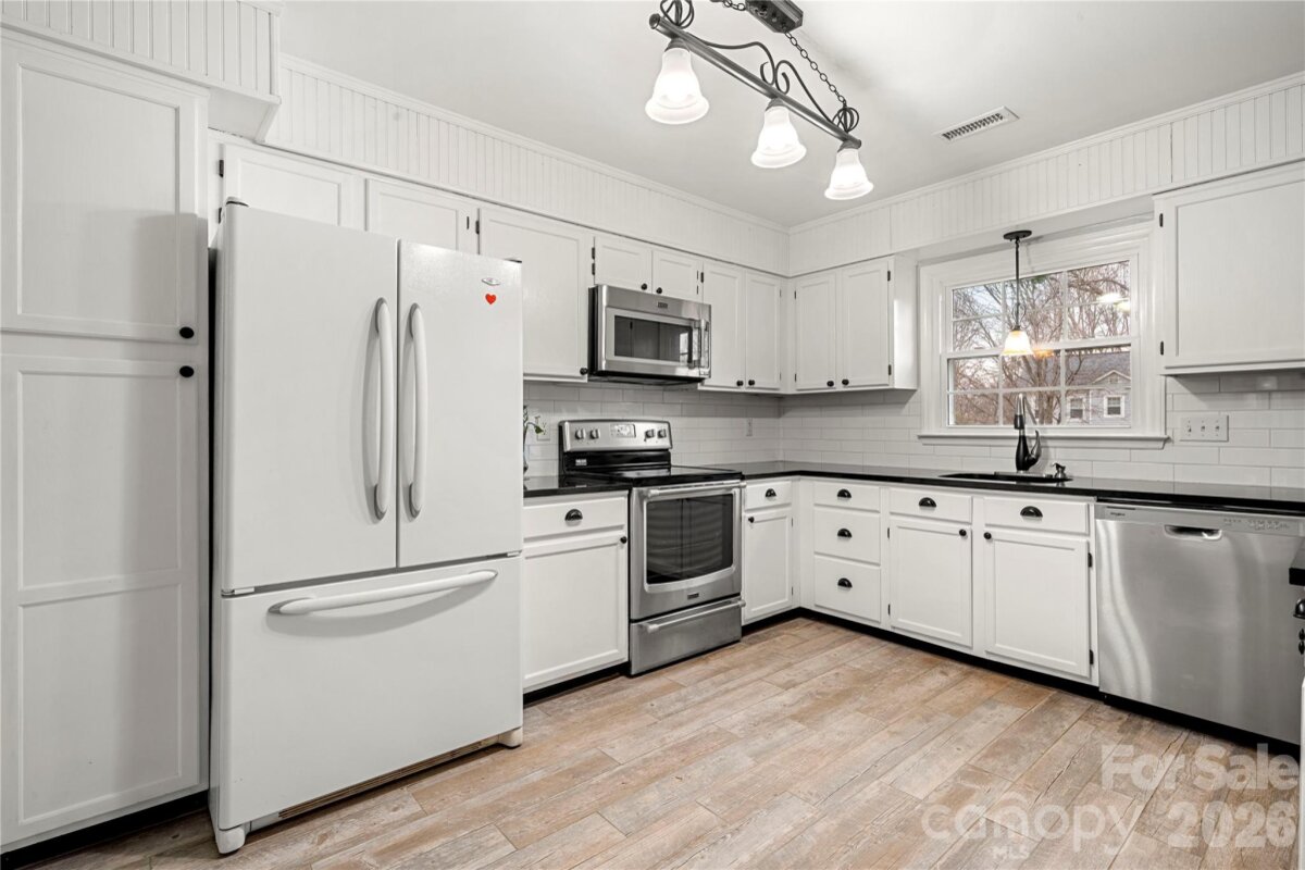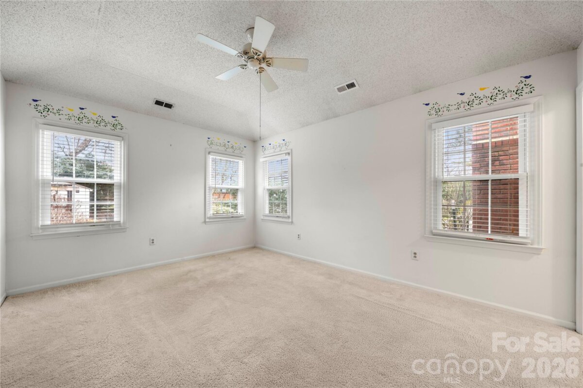 Welcome to this ranch home in Cedarfield! The kitchen features stainless steel appliances—including a brand-new dishwasher (2025)—granite countertops, and an open layout that flows seamlessly into the vaulted living room. Just off the kitchen, you’ll find a sunroom. The home also offers a family room with a wood-burning fireplace, perfect for relaxing or gatherings. Continue to the primary suite which features a tray ceiling and an ensuite bathroom with a walk-in shower, soaking tub, and double vanity. Two additional bedrooms, a full bathroom, and a dedicated dining area complete this well-designed floor plan. Notable updates include a NEW ROOF installed in March 2026, a new HVAC system and ductwork replaced in May 2025 and Hardiplank siding installed in 2014. Cedarfield residents enjoy fantastic amenities such as an outdoor pool, playground, pond, and walking trails with direct access to the Torrence Creek Greenway. Come see all this wonderful property has to offer!