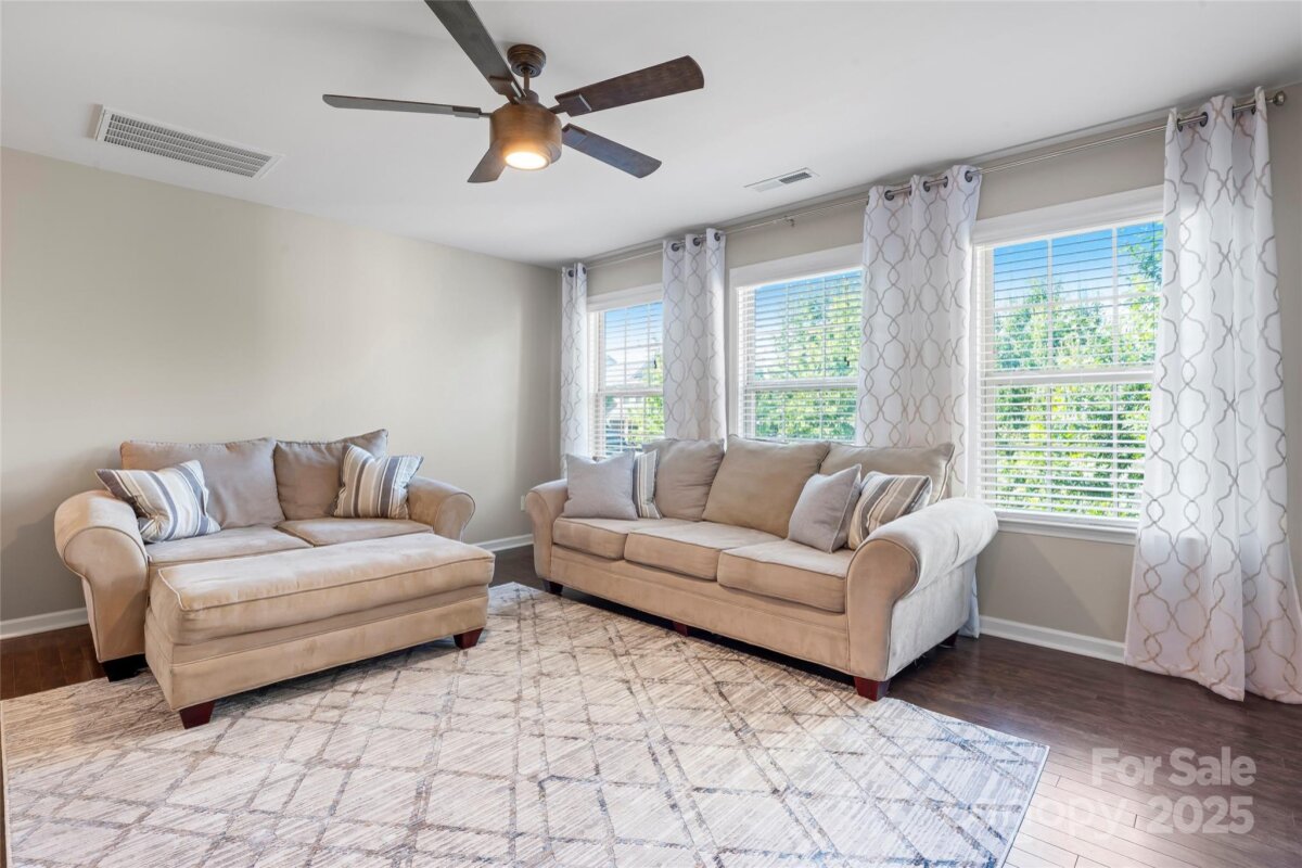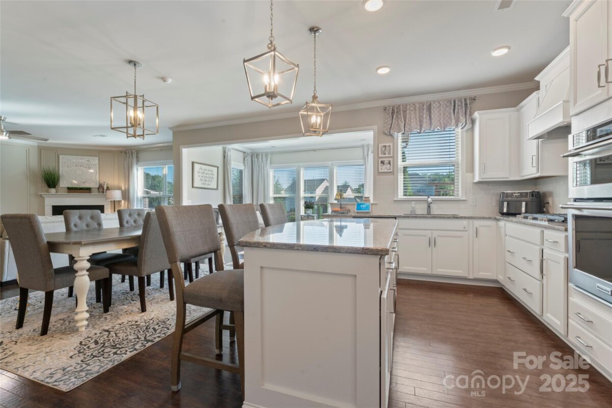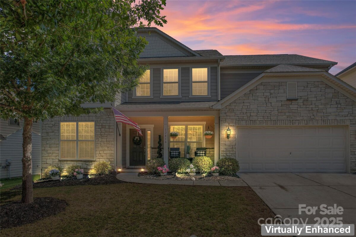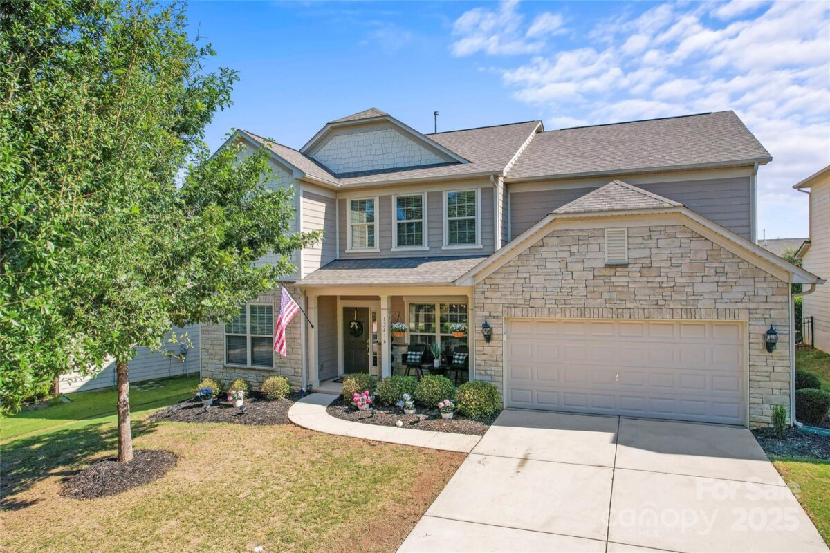 Welcome Home to this LIGHT filled, move-in ready 5 bedroom, 3 FULL bath and 3-car tandem garage home located in the amenity rich Chapel Cove neighborhood. Walking in you are greeted by a beautifully maintained front yard and rocking chair front porch. Entering the home you immediately notice the designer paint colors and functional floorplan. The first floor includes a well-sized bedroom, open dining room that can easily be used as flex space perfect for an office, playroom or secondary living space, oversized living room with HUGE eat-in kitchen, attached sunroom and gourmet kitchen. The kitchen features an island with bar, all Stainless Steel appliances with quartz countertop and tile backsplash, a gas rangle and ample cabinetary. Downstairs also includes a drop zone, workspace and butlers pantry. Upstairs are four bedrooms including an over-sized primary with true 5-piece en-suite bath WITH TWO well sized closet, loft area, auxilary bedroom full bath and dedicated laundry room. Outside is your fenced in backyard featuring a paver patio, fire pit and ample grass space. The Chapel Cove community offers an incredible Clubhouse, outdoor pool, tennis courts and community access to Lake Wylie for all your non-motorized water sports. Nestled in the Southwest Corner of Charlotte you are conveniently located and close to the highway, shopping and restaurants. Don't miss this one!!