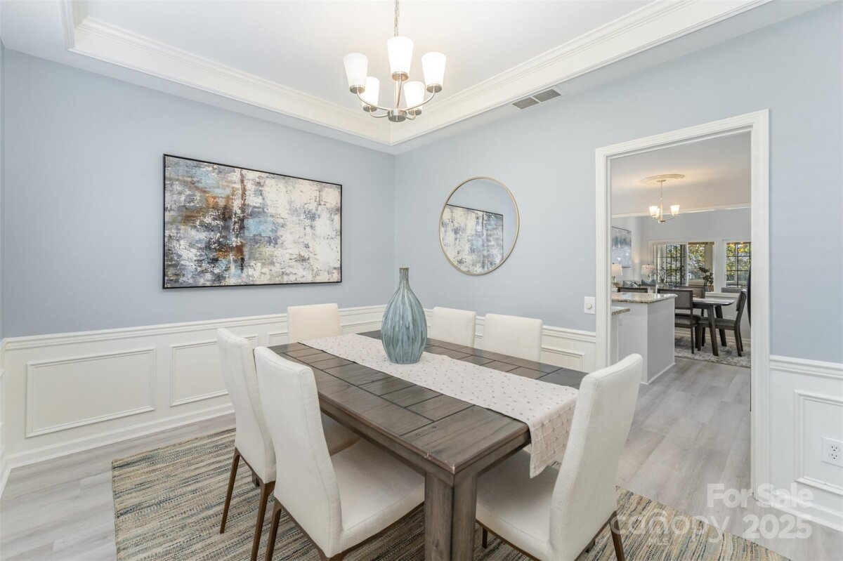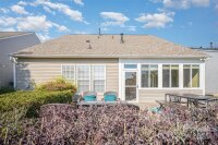 Welcome to Auburn Place! Ideally located near Stonecrest, Blakeney, Rea Farms, Waverly, and with quick access to I-485, this 3-bedroom, 3-bath patio home offers style, comfort, and convenience. Inside, the vaulted 2-story family room opens to a glass-enclosed sunroom with a new heat & cooling system (2023) and added insulation, perfect for year-round enjoyment. The renovated kitchen (2023) features updated cabinets, granite full-height backsplash, new lighting, stylish LVP flooring, and an exterior exhaust fan. Two bedrooms are on the main level, including one with ensuite. Plantation shutters throughout the main floor and LED lighting upgrades (2023) add to the home’s charm. Upstairs, an additional bedroom and bath provide flexible living space, along with an oversized loft. Outside, relax on the cobblestone-style brick patio and the enjoy the fully irrigated yard for effortless maintenance. Additional updates include: 2024 Gas Hot Water Heater / 2023 New LVP Flooring / 2023 Renovated Kitchen / 2023 Downstairs light fixtures + LED lights