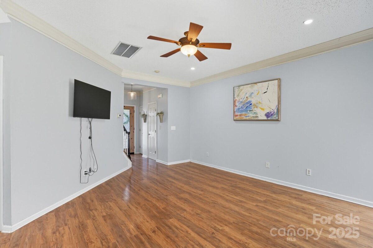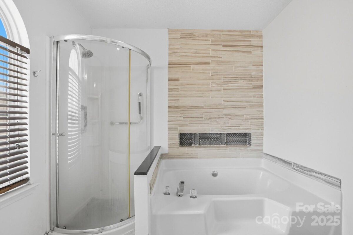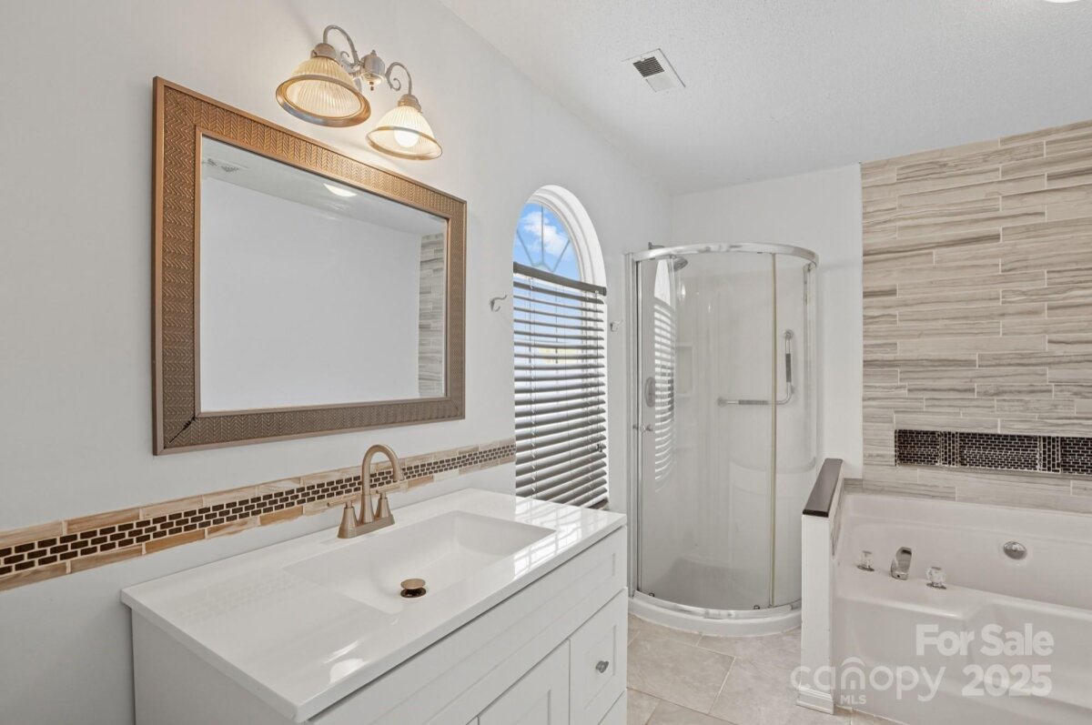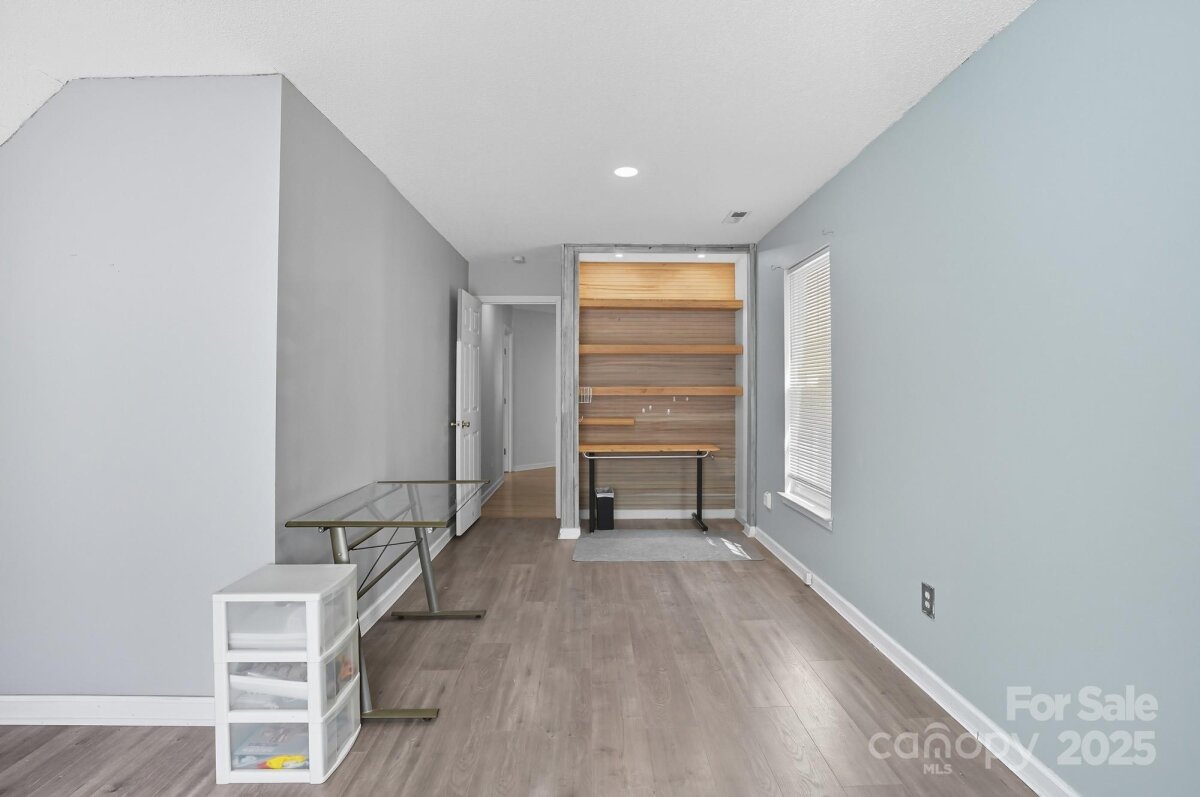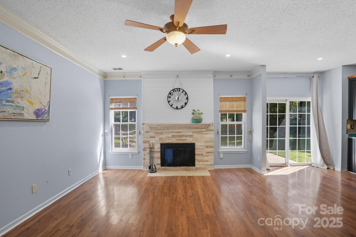Welcome to your next Home in the Eastfield Ridge community! Walk inside to the Front Foyer where you are greeted by a spacious open floor plan connecting the Living Room and Kitchen. A newer Fireplace highlights the Living Room as well as LVP flooring and updated lighting throughout the main level. A lovely Kitchen boasts plentiful cabinets, abundant countertop space, stainless steel appliances, and a kitchen island. Venture upstairs where you will find four airy bedrooms with bamboo hardwood floors. The Primary Bedroom is highlighted by it's walk-in closet and newly remodeled Bathroom. Newer HVAC system (2023). Hard to find a better workshop than in the Garage with it being heated and cooled by the mini-split system, plentiful shelving and storage, walls are insulated and sheet rocked, and vinyl floors. The tranquil Backyard serves as the perfect retreat or a great place for entertaining with plenty of space and fully fenced in. Two nice sized sheds located in the Backyard as well. Located in close proximity to Uptown Charlotte just minutes away and the I-485 belt loop just right outside the community. Schedule your showing today!