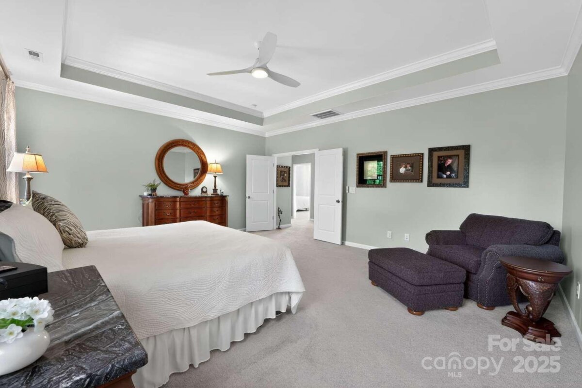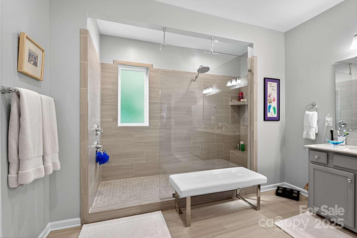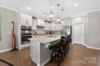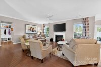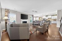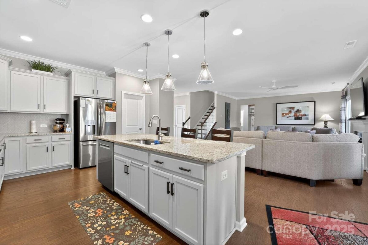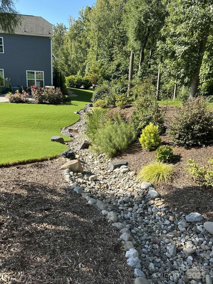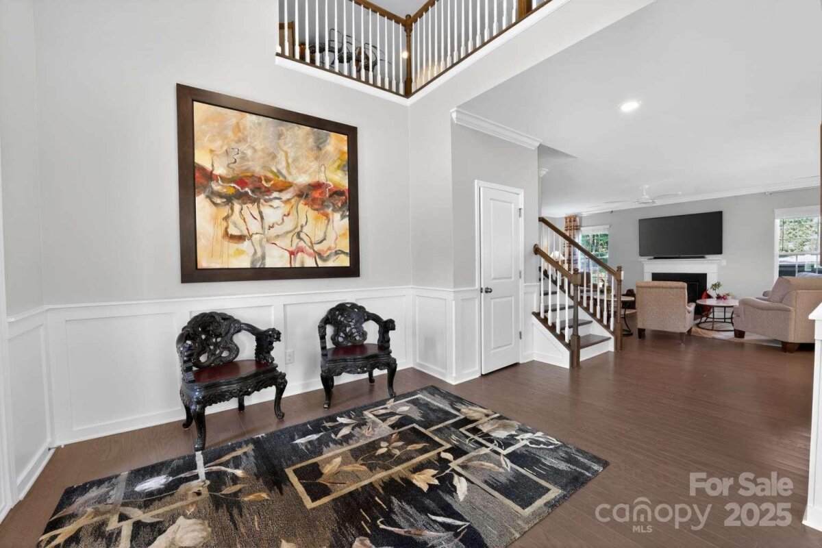 This stunning five-year-old home sits on a spacious, private wooded lot and perfectly blends modern design with timeless elegance. Step inside to a dramatic two-story foyer with rich wood flooring throughout the main living areas. The formal dining room stands out with its tray ceiling and classic wainscoting. Natural light floods the open floor plan, creating a warm and welcoming ambiance. The chef’s kitchen boasts a sprawling island, elegant granite countertops, a herringbone-patterned backsplash, gas cooktop, double wall oven/microwave, walk-in pantry, and a bright breakfast nook just steps away. Upstairs, retreat to a luxurious master suite accompanied by two additional bedrooms, a dedicated office, a large laundry room, and a versatile loft. Outdoor living is truly exceptional with an oversized custom patio, stacked stone built-in kitchen, and a cozy gas fireplace—perfect for entertaining or relaxing. The landscaping is beautifully maintained and features an irrigation system.