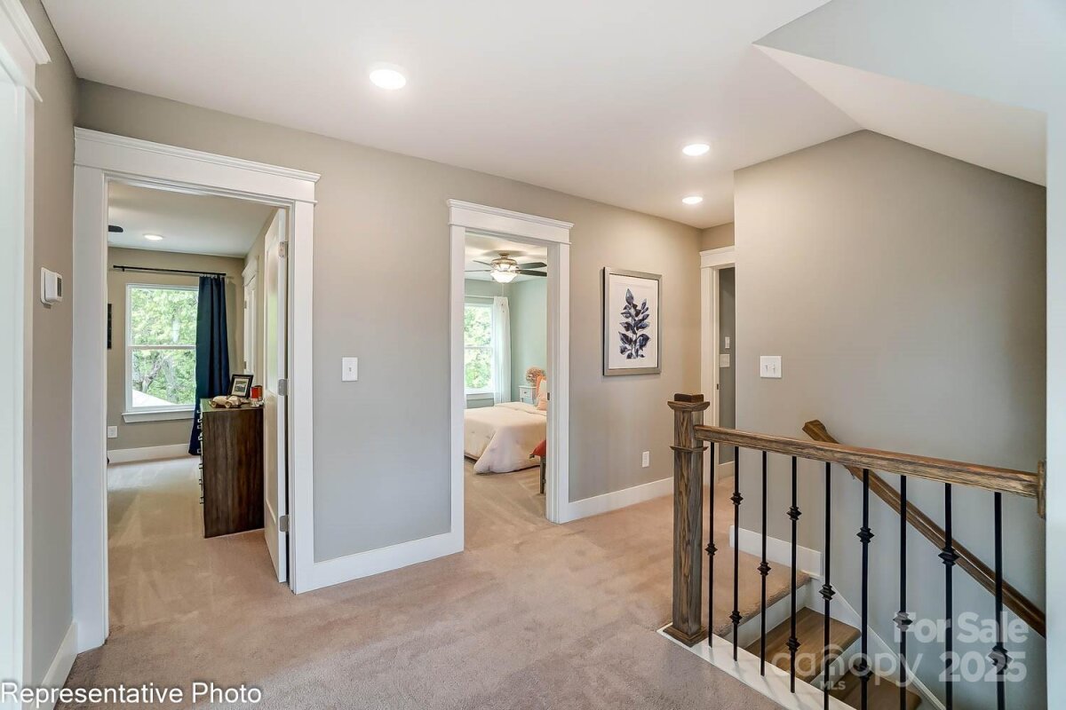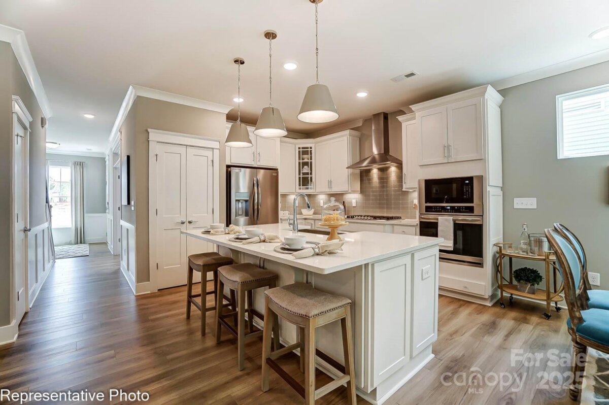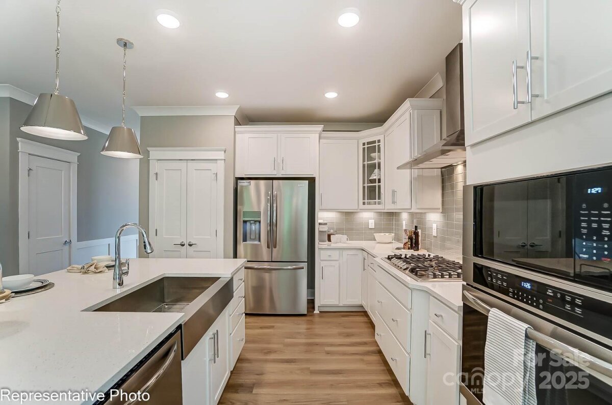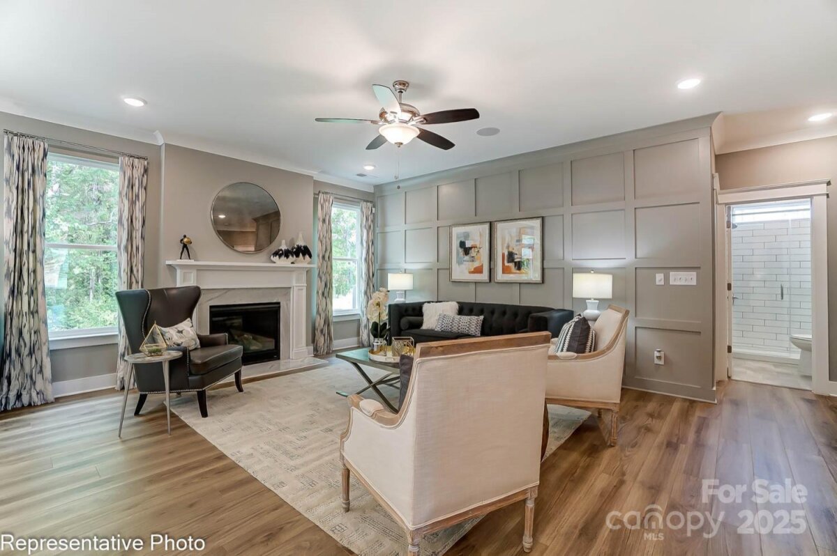 New Construction in Mooresville! This 2-story Cypress plan features 4 bedrooms and 3 full baths. The first floor includes a guest suite, a beautiful kitchen with breakfast space, a family room with Cosmo fireplace and shiplap wall, and a study. The second floor features the primary bedroom, two secondary bedrooms, and a loft, as well as the laundry room. The kitchen has 42-inch cabinets & chrome hardware, quartz counters, a tile backsplash, & stainless appliances including a gas cooktop with designer range hood & wall oven. Additional upgrades include a luxury primary shower, composite stair treads, colonial trim package, modern bathroom faucets and more! Enjoy outdoors with the 12x12 ft deck in the back, backing up to a tree-lined view!
