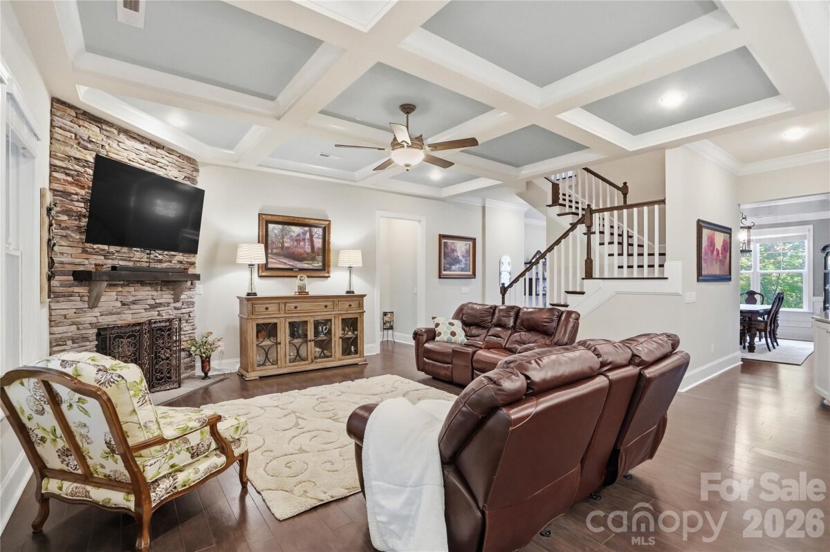 Meticulously maintained and beautifully appointed, this stunning home offers a rare opportunity to live in one of Belmont’s most sought-after communities, McLean South Shore. Thoughtfully curated with designer finishes throughout, the home exudes both warmth and sophistication—from the coffered and double tray ceilings to the elegant crown molding that carries throughout. At the heart of the home, the inviting kitchen is designed for both everyday living and entertaining, featuring stainless steel appliances, a generous island, and seamless flow into the expansive great room, where a cozy fireplace creates the perfect gathering space. Outdoor living is just as impressive, with a private screened porch and deck overlooking a spacious backyard ready for play, gardening, or creating your dream outdoor retreat. The main-level primary suite offers convenience and comfort, while the upper-level features three additional bedrooms and a large bonus room—ideal for a home office, recreation space, or guest retreat. Residents of McLean South Shore enjoy exceptional amenities, including a clubhouse, fitness center, dog park, playground, scenic walking trails, picnic areas, and lake access with a boat and paddleboard launch. You’re also just a short golf cart ride away from Drift on Lake Wylie—perfect for an easy lunch or sunset dinner. This home combines lifestyle, location, and luxury. Experience all this home and community have to offer.