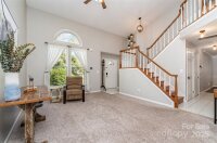 Wonderful 4 bed 2.5 bath home in sought after Woodside Falls. Updated kitchen with shaker cabinets, granite countertops and stainless appliances. Gorgeous farm style sink and tiled backsplash. Floorplan flows beautifully from the entry with its soaring 2 story ceilings to the Living room and open to the dining room. Large Family room with a fireplace to enjoy the cooler weather. Kitchen and Family room along with a breakfast nook flow together seamlessly for a more modern lifestyle. Beautiful finished sunroom with a fantastic pine ceiling overlooking the wooded, fenced, private, level backyard. Wonderful deck off the back of the home for grilling and enjoying the back yard. Upstairs are 4 generously sized bedrooms. Primary bedroom has a ensuite bath with a garden tub, shower and updated fixtures. Walk in closet to round out the Primary. Home has been tastefully decorated and is in move in ready condition. Woodside Falls is in one of the best locations in Mecklenburg County. Walking distance to Ballantyne. Minutes to the new "Bowl in Ballantyne" with the outdoor Amphitheatre for live music. 30 minutes to the airport, minutes to I-485 and access to the entire City. Woodside Falls has a pool, playground, sports court, walking trails all around a beautiful neighborhood pond. Extremely low HOA fees and no City Taxes. Throw in the fact the neighborhood has been zoned for the new high school at Ballantyne Ridge. Don't miss this home.