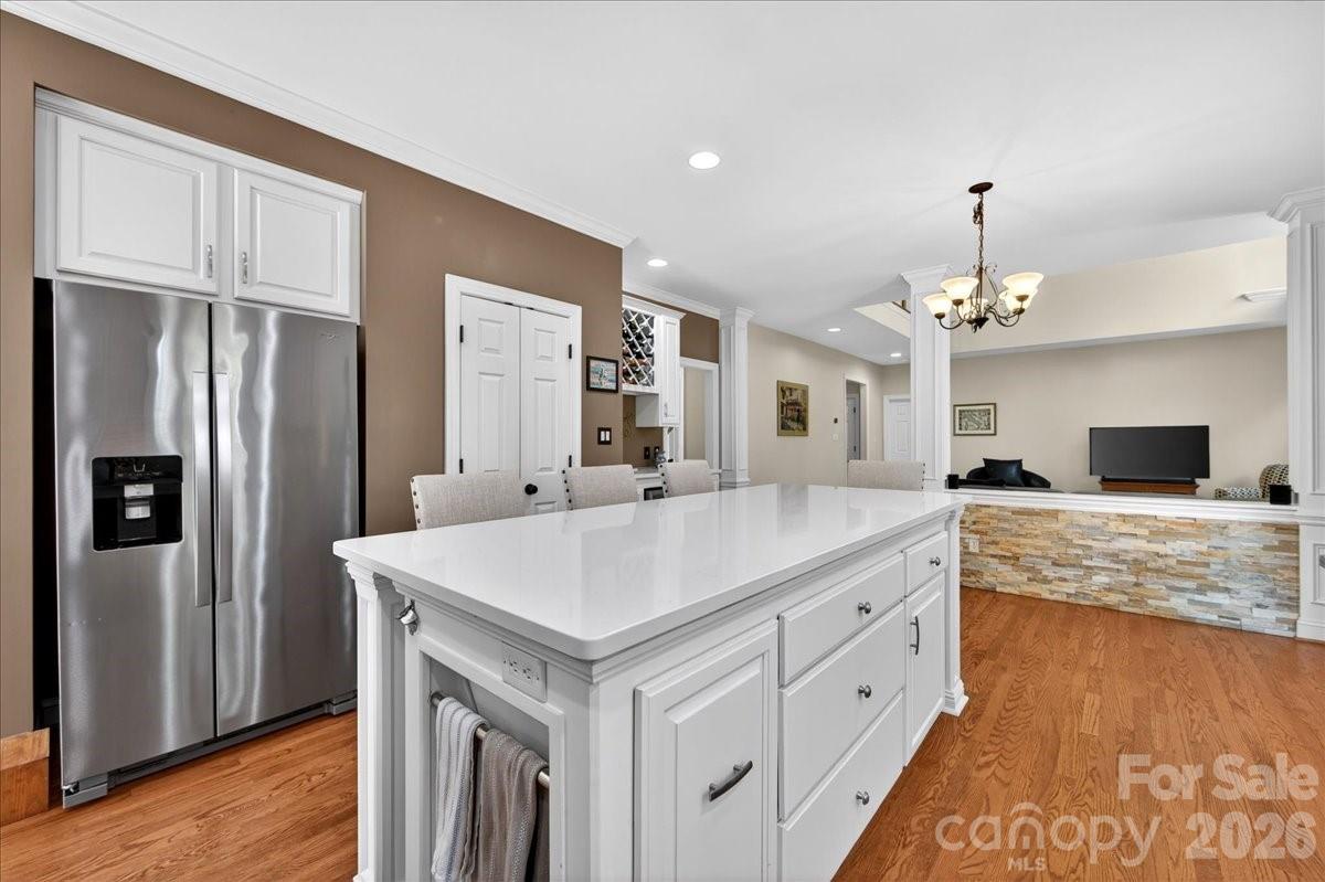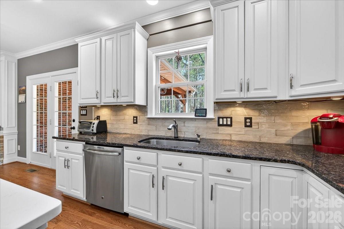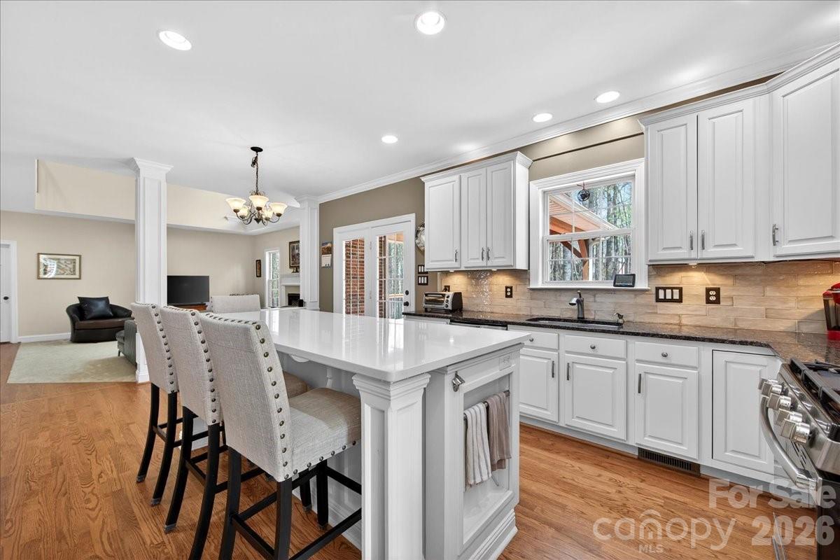 Located in the highly sought-after waterfront community of Overlook, this stunning full brick home sits on a spacious corner lot of .628 acres, offering both privacy and curb appeal. With 6 bedrooms and 5 full bathrooms, this home provides exceptional space and flexibility for modern living. The home features a newly remodeled kitchen with quartz countertops, a stylish backsplash, and a custom wine bar complete with a beverage refrigerator—perfect for entertaining. Fresh designer paint throughout, refinished wood floors, new carpet, and smart home features including Nest thermostats add a fresh, move-in-ready feel. Designed for convenience and versatility, the layout includes a guest suite on the main floor with an ensuite bathroom, two laundry rooms, and dual staircases. The finished walkout basement offers even more living space, complete with a bedroom, full bath, and abundant storage—ideal for guests, a home office, or multi-generational living. Step outside to enjoy beautiful landscaping, a fenced backyard, and an oversized, multilevel deck—perfect for relaxing or hosting gatherings. Ideally located just minutes from the airport and I-485, this home is also close to Riverbend Village, Mountain Island Lake, and the U.S. National Whitewater Center, with Uptown Charlotte only 15 minutes away for easy access to dining, arts, and professional sports. This exceptional property combines space, style, and location in an amenity rich waterfront community—don’t miss the opportunity to call it home.