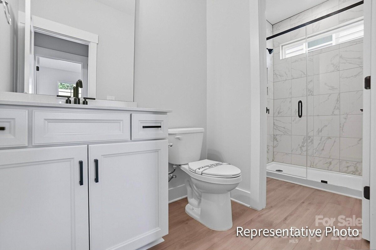 Brand new community close to Lake Norman! This Avery plan features an open kitchen with breakfast area that leads into the family room. The kitchen includes white cabinets with matte black hardware, quartz countertops and stainless-steel appliances including a gas cooktop and wall-oven. Living area features a fireplace with tile surround. Primary bedroom is spacious, and primary bath includes a luxury tile shower with dual sink vanity, linen closet and water closet. This home also includes two additional bedrooms, laundry room and storage! Enjoy the outdoors on the rear covered patio!