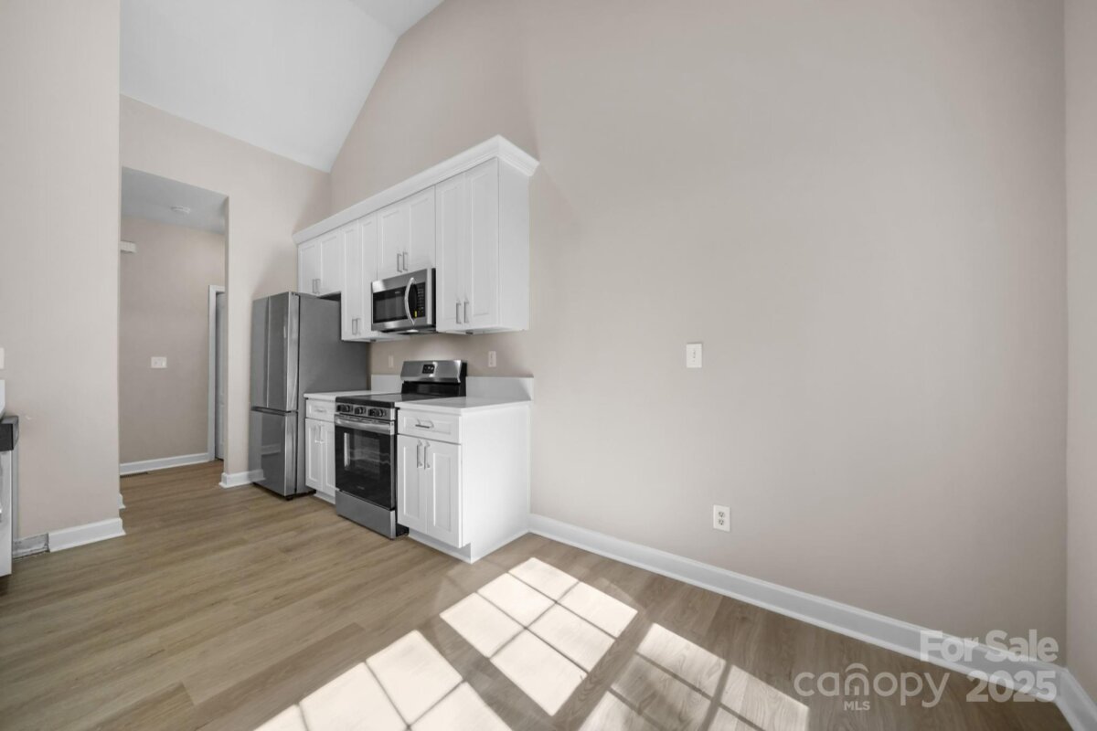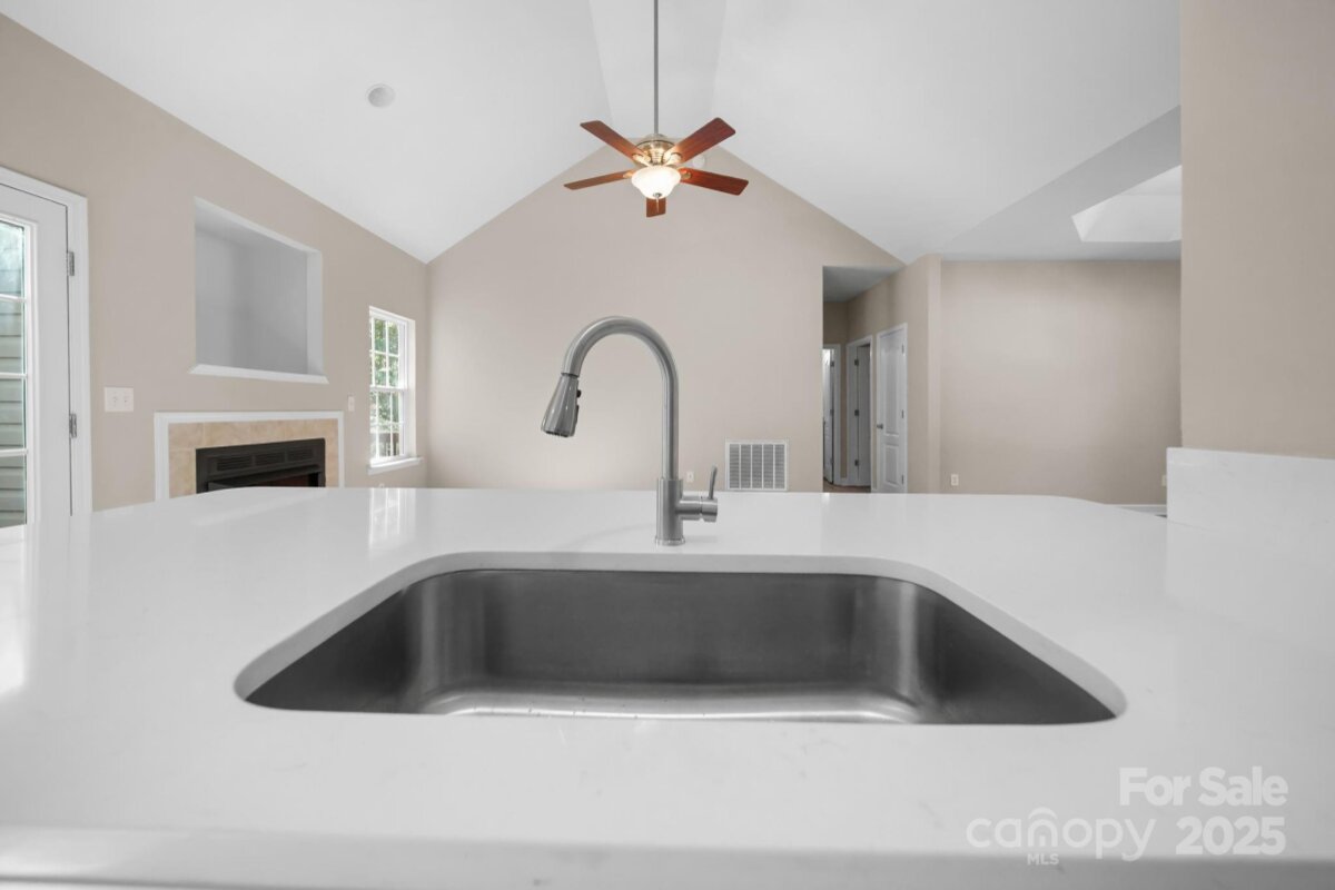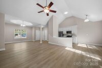 Discover this beautifully updated 3-bedroom, 2-bath ranch on a spacious 1.17-acre lot in desirable Troutman. With 1,424 sq. ft. of stylish living space, this home offers an open floor plan with vaulted ceilings—perfect for entertaining family and friends. The split-bedroom layout provides privacy, while the fully renovated kitchen features new cabinetry, stainless steel appliances, modern lighting, and sleek quartz countertops. Both bathrooms have been updated with new cabinets, lighting and quartz vanities. Luxury vinyl plank flooring adds warmth, durability, and contemporary appeal throughout the home. Brand new roof and HVAC mean this should be low maintenance for years. Step outside to a large deck overlooking a peaceful, private backyard—ideal for relaxing or hosting gatherings. Enjoy the freedom of no HOA fees and the convenience of being close to shopping, Lake Norman State Park, and I-77. Move-in ready and beautifully finished, this home perfectly blends comfort, style, and location. Some Photos virtually staged.