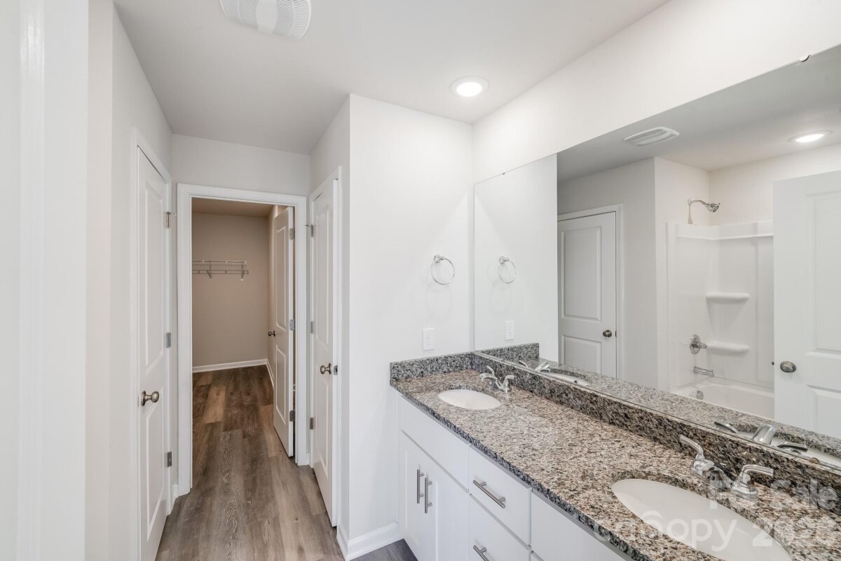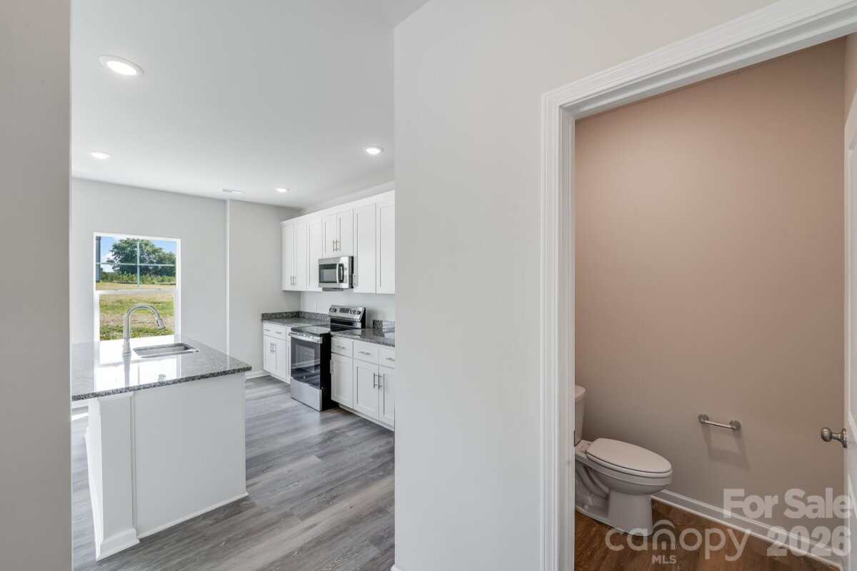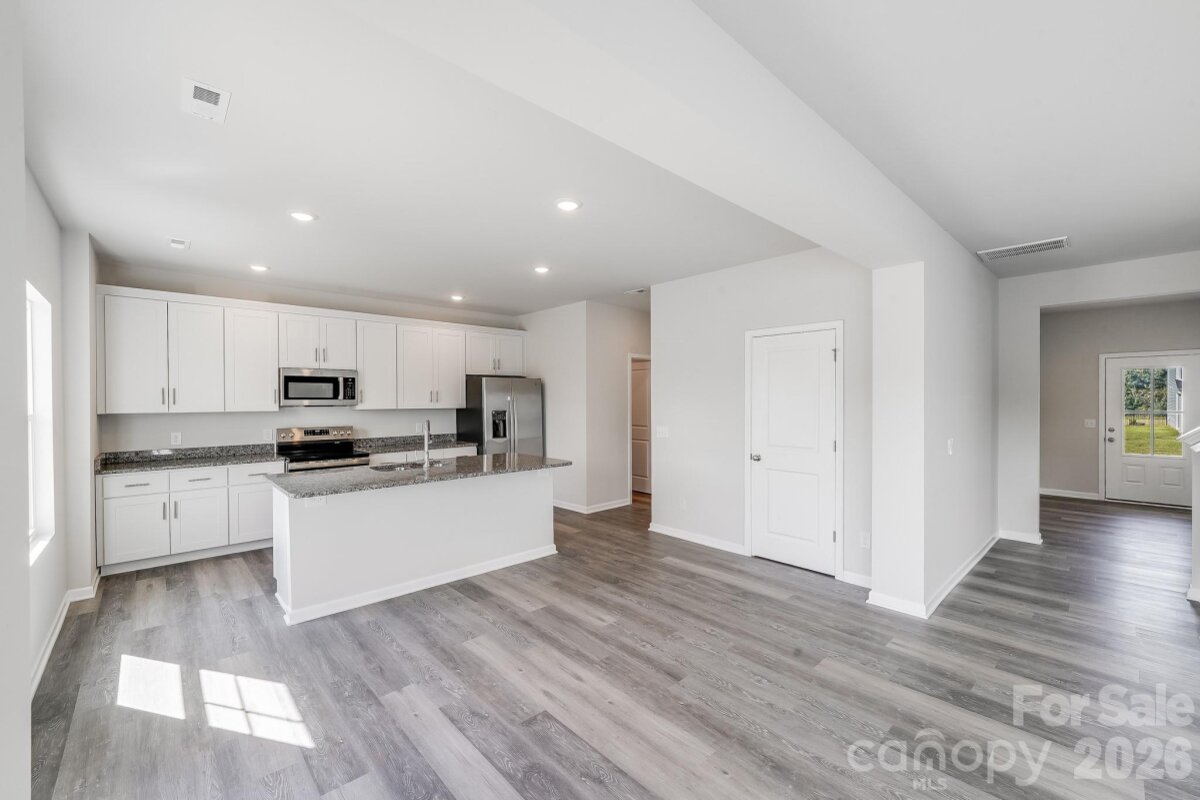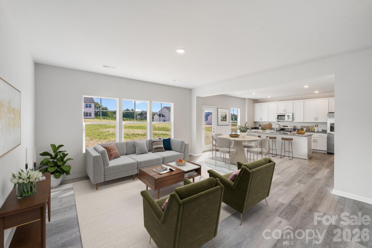 Welcome to this inviting two-story, 3-bedroom, 2.5-bath home offering the best of modern living—perfect for first-time buyers or those looking to upgrade to more space. Situated on a generous 0.54-acre lot, this property combines privacy with the convenience of quick access to I-40. The main level is designed for comfort and flexibility, featuring a spacious great room with three large windows overlooking the backyard and filling the space with natural light. The kitchen is a chef’s delight, showcasing white cabinetry, granite countertops, a large island with a breakfast bar, a pantry, stainless steel appliances, and a dedicated dining area ideal for casual meals or entertaining guests. Upstairs, the primary suite offers a roomy walk-in closet and a private bathroom with dual sinks and granite countertops. Two additional bedrooms share a full bath with matching finishes, providing comfort and style for everyone. Additional highlights include a 2-car garage with an opener, a covered front porch perfect for relaxing outdoors, and a move-in-ready home with a versatile layout and ample space to grow—a perfect place to start your next chapter.