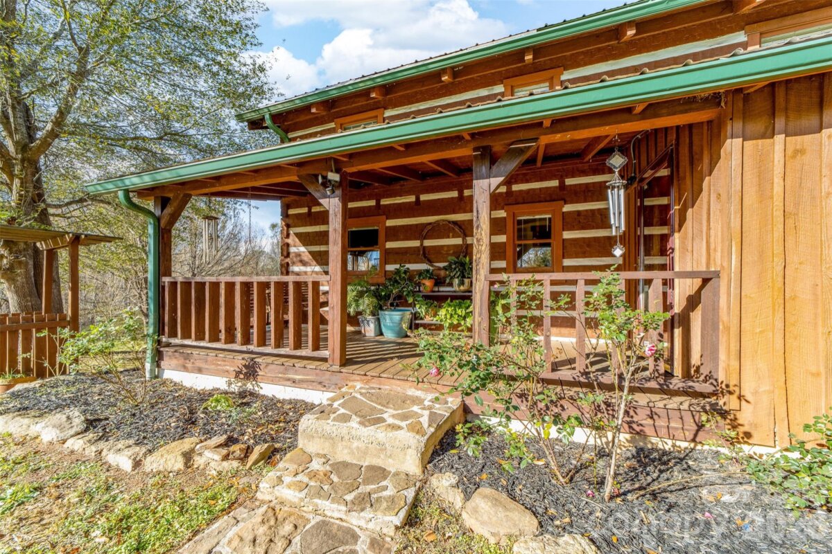 COMING SOON!!! Looking for a dream property? Here it is, 9.9 private acres bordering Knob Creek. Classic Log Home with primary on the main level. Total of 3 bedrooms | 2 full bathrooms, remodeled main level full bath with tile walk in shower, cathedral ceilings, and a stone fireplace. The rocking chair front porch and wrap-around back porches offer lovely views of pastures, barns, multiple garden plots, fruit trees, sunsets, hot tub and firepit circle. Hardwood floors throughout, granite countertops and stainless appliances in the updated kitchen with all the rustic charm. New custom stairway to the upper level. Shed row barn, huge workshop, covered storages add to the flexibility of this property. This is a haven for anyone seeking a blend of nature and comfort. Could be used for short term rentals. Central location to multiple State Parks, Tryon International Equestrian Center and an hour to Charlotte Airport. Bring your horses explore the area. Peaceful Knob Creek borders the property with a Mill Site dating back to 1870. New Septic 2025, Well tested clean 2025.
