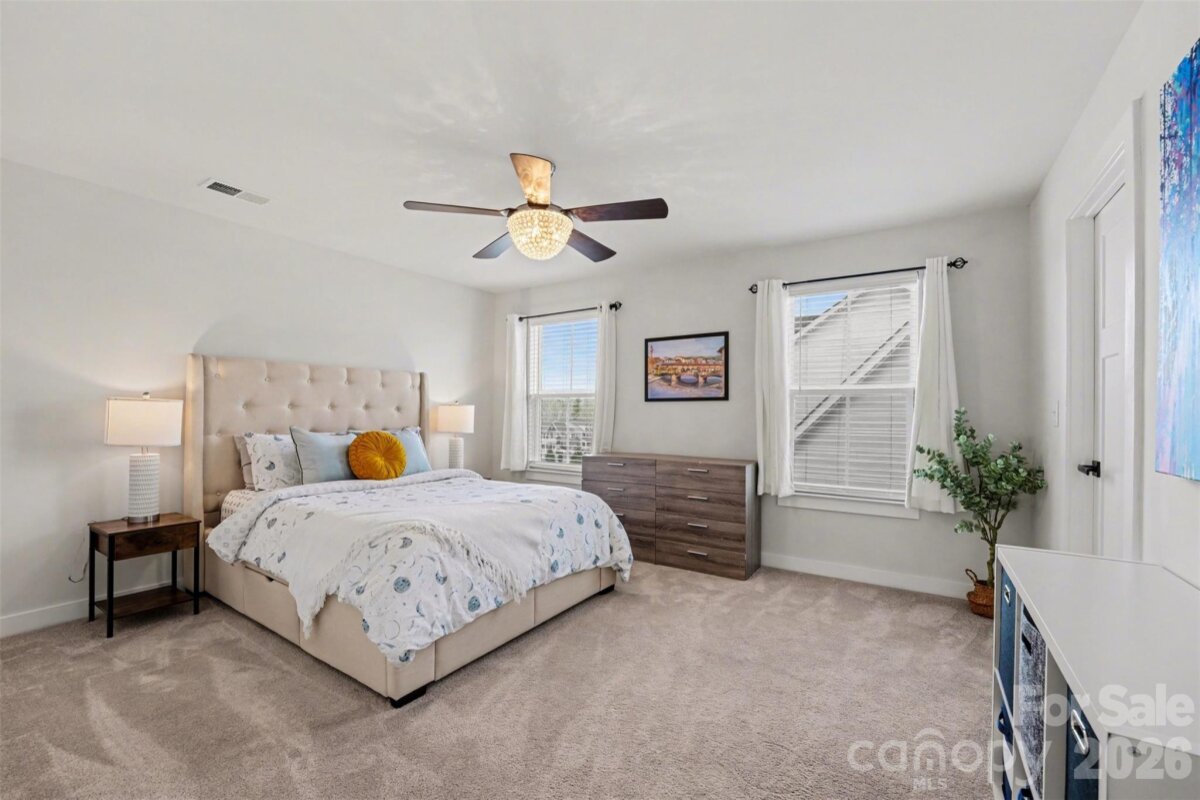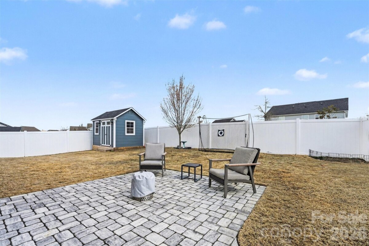 Welcome to this move-in ready home in the highly desirable Vermillion community. This thoughtfully designed home features 3 bedrooms and 2.5 bathrooms, with the primary suite and laundry conveniently located on the main level for easy everyday living. Upon entering, you'll find a spacious private office that also works beautifully as a flex space, along with a large formal dining room ideal for entertaining. The open main living area features a generous family room with a gas fireplace that flows seamlessly into the gourmet chef’s kitchen. The kitchen offers abundant cabinetry, a large granite island with seating, and a designated breakfast nook, creating the perfect space for both daily living and gatherings. Upstairs, you’ll find two additional bedrooms, a full bathroom, and a large versatile loft currently used as a second living and entertainment area. Step outside to enjoy the fully fenced backyard featuring a covered patio and a brand new 8x12 storage shed added this year, providing additional storage and functionality. Located only a half mile from downtown Huntersville, this home offers easy access to Veterans Park, local coffee shops, restaurants, a brewery, and the nearby greenway. Residents of Vermillion also enjoy neighborhood amenities including two saltwater pools, a playground, and Harvey’s Neighborhood Bar & Grille.