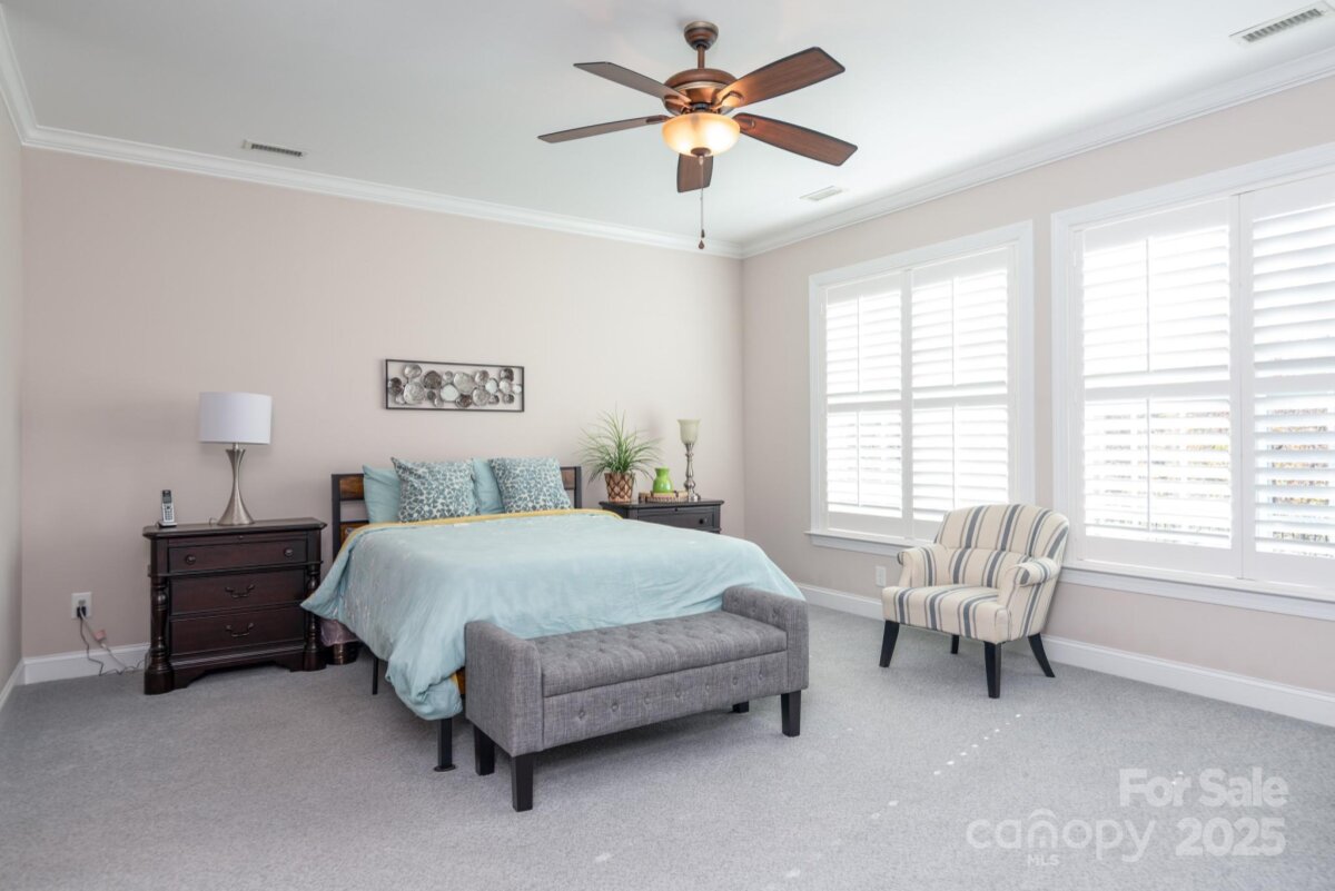 Desirable Carson plan located in the sought-after Bailey’s Glen Active Adult Community. The spacious Great Room features a tray ceiling, built-in media cabinetry, and a cozy fireplace, and opens seamlessly to the gourmet kitchen. The kitchen boasts granite countertops, double wall oven, stainless steel appliances, built-in pantry with roll-out trays, prep island, and an office/workspace. A bright breakfast nook overlooks the wooded backyard and the lovely screened porch. Primary suite boasts tiled shower, garden tub, dual vanities, and two walk in closets, while the two guest bedrooms offer plenty of space for family and friends. The home includes a large laundry room with additional cabinetry and built in ironing board, a drop zone, and an oversized garage. Additional features include double crown molding, gleaming wood floors in the foyer, kitchen, dining room, and great room; tile flooring in baths; electric awning over patio; beautiful window treatments; tiled kitchen backsplash; under-cabinet lighting; and abundant storage throughout. Bailey’s Glen offers an exceptional lifestyle with two Lifestyle Directors coordinating a full calendar of activities. Community amenities include a 12,000-square-foot clubhouse (with a second clubhouse coming summer 2026), Junior Olympic–sized swimming pool, pickleball and tennis courts, putting green, bocce, shuffleboard, pottery and woodworking shops, crafts, fitness facilities, and so much more!