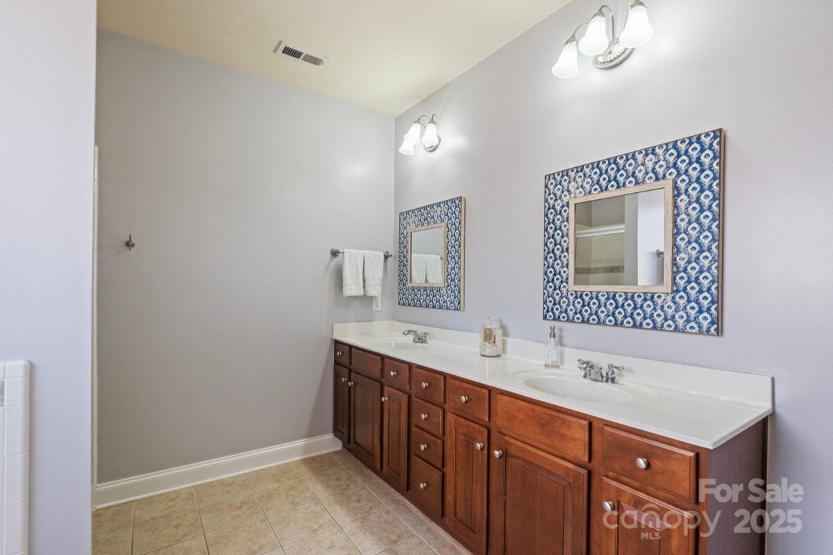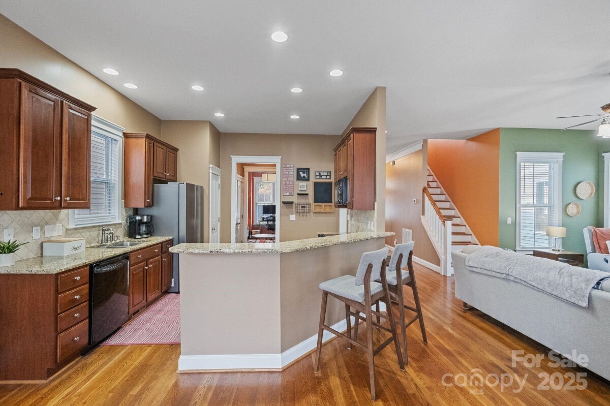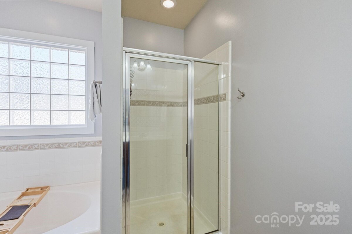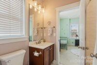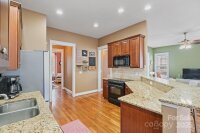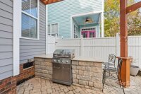Wonderful Charleston style home with rocking chair front porch located in the heart of south Charlotte -- just across the street from Blakeney Shopping Center with multiple shops, restaurants and services all at your fingertips. Blakeney Greens offers an ideal lifestyle with front porches, sidewalks, pocket parks and a neighborhood pool. 12613 Doster Avenue complements the neighborhood with an open main floor plan flowing out to a private back yard retreat with built in fire pit, grill station and koi pond. Inside, 10 ft. ceilings on the main level and 9 ft. ceilings upstairs with moldings and hardwoods throughout the main level, on the stairs, landing and one bedroom give the home a warm and inviting feel. Beautiful kitchen with 42" cabinets, granite counters and tile backsplash opens to dining and living spaces which are surrounded by windows providing ample natural light. Generous primary retreat with luxurious ensuite bath including a garden tub and separate shower. Updated jack and jill bath between the two secondary bedrooms. Both HVAC units replaced in 2024. Oversized two car garage. Unbeatable location both within the neighborhood and south Charlotte with convenient access to 485 and so much more.