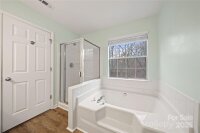 Welcome to 12635 Diamond Dr! Step inside to find an open concept layout featuring a two-story great room that flows into the dining area—perfect for everyday living and entertaining. New LVP and carpet were installed in 2019, adding a fresh, updated feel throughout the home. The kitchen, a true standout, was updated in 2019 to include quartzite countertops, soft-close cabinetry, a farmhouse-style sink, stainless steel appliances, and a charming breakfast nook. It opens directly to the family room, where a gas fireplace creates an inviting gathering space. A half bath completes the main level. Upstairs, you’ll find the primary suite featuring a tray ceiling and walk-in closet. The ensuite bath includes a double vanity, walk-in shower, and a soaking tub. Three additional bedrooms, a full bath, and a conveniently located laundry room complete the upper level. Stone composite flooring was installed in the upstairs bathrooms and laundry room in 2019. Outside, enjoy a fenced backyard with a fire pit, plus a shed for extra storage—a great space for play, pets, or peaceful evenings outdoors. The expansive back deck, freshly repainted in 2025, ideal for grilling, relaxing, or hosting friends. The home also includes a termite bond which has been in place since 2020 through Aruza Pest Control for added peace of mind. Residents enjoy outstanding community amenities including a pool, playground, sport court, pond, and walking trails. Plus, you’re just three miles from The Bowl at Ballantyne, offering shopping, dining, and The Amp—an exciting destination for live music and entertainment!