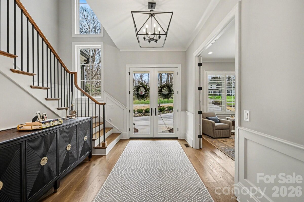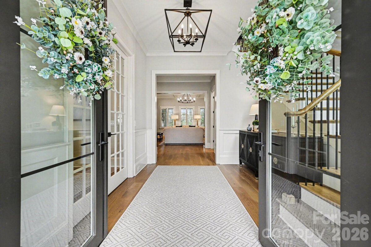 STUNNING, MOVE-IN READY, CUSTOM BUILT HOME in sought after Providence Park. Experience exceptional craftsmanship and modern elegance in this newer constructed 5 bedroom, 5 full bath, and 2 half bath luxury residence with 3 car attached garage designed for both grand entertaining and everyday comfort. A dramatic two-story entry welcomes you into a light-filled interior, showcasing rich hardwood floors throughout and a seamless open-concept layout for the main living space. The chef's kitchen is a true showpiece, featuring a large quartz island, tiled backsplash, upgraded stainless steel appliances, and is close to a conveniently located drop zone. Just beyond, a fully outfitted scullery offers custom cabinetry, quartz countertops, a wine refrigerator, and a spacious walk-in pantry - perfect for effortless hosting. The living room impresses with a coffered ceiling, custom built-ins, and an inviting fireplace. A private main-level office with built-in shelving and storage cabinets, provides the ideal work-from-home retreat, while plantation shutters in every room add timeless sophistication. The main-level primary suite is a serene sanctuary, highlighted by vaulted ceilings and a spa-inspired bath with beautifully tiled shower. A spacious custom walk-in closet connects directly to the main-level laundry room for convenience and everyday ease. An elevator ensures easy access to all levels. Upstairs, you'll find four additional generously sized bedrooms, each with its own private full bath, offering comfort and privacy for family or guests. A huge bonus room serves as the ultimate gathering space, complete with a custom built-in bar featuring quartz countertops, a sink, and a beverage refrigerator-perfect for entertaining. An additional laundry area adds practicality and thoughtful functionality. Step outside to your private resort-style oasis: a fully fenced backyard surrounds a custom in-ground pool and hot tub, all viewed from the back porch with retractable screen that transforms the space into an open-air retreat. This extraordinary home blends luxury finishes, thoughtful design, and high-end amenities to create a truly elevated living experience. Conveniently located between Southpark and Cotswold, near to shopping and restaurants and a short drive to Uptown. Also close to Charlotte Christian, Providence Day and Charlotte Country Day schools.