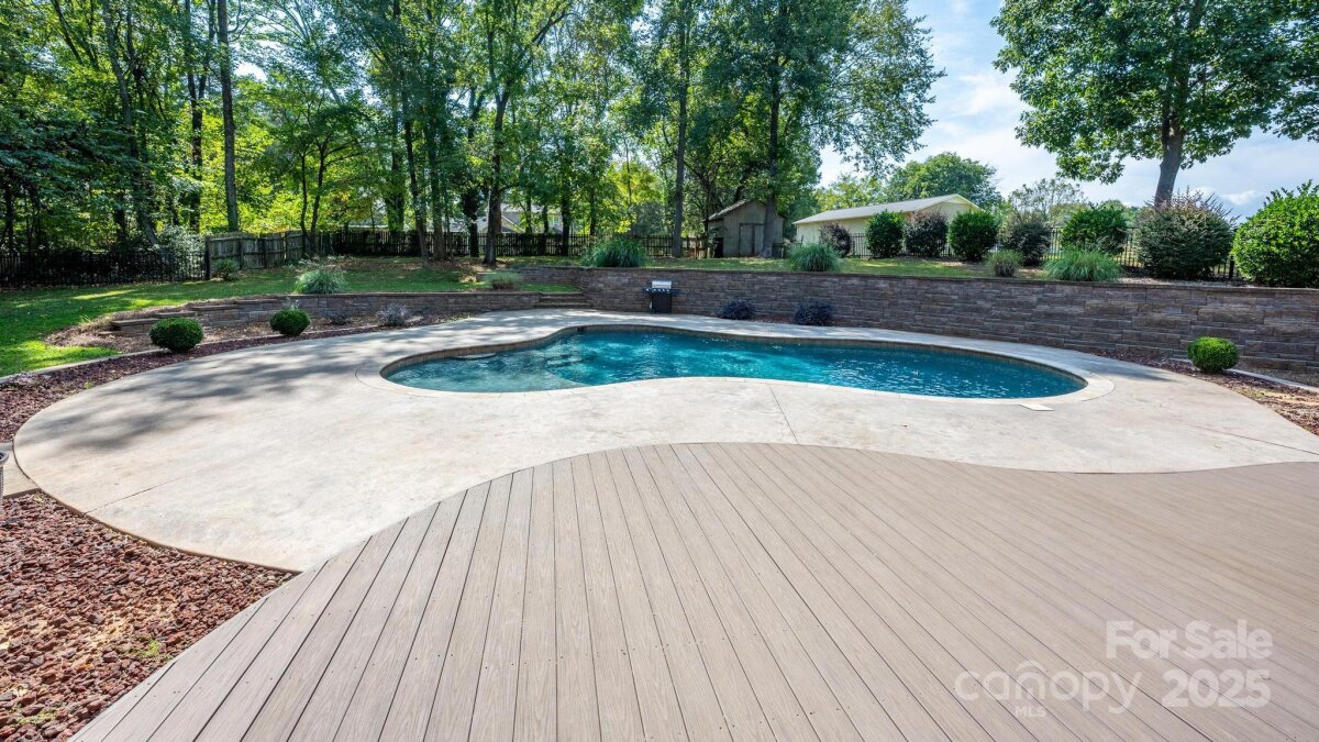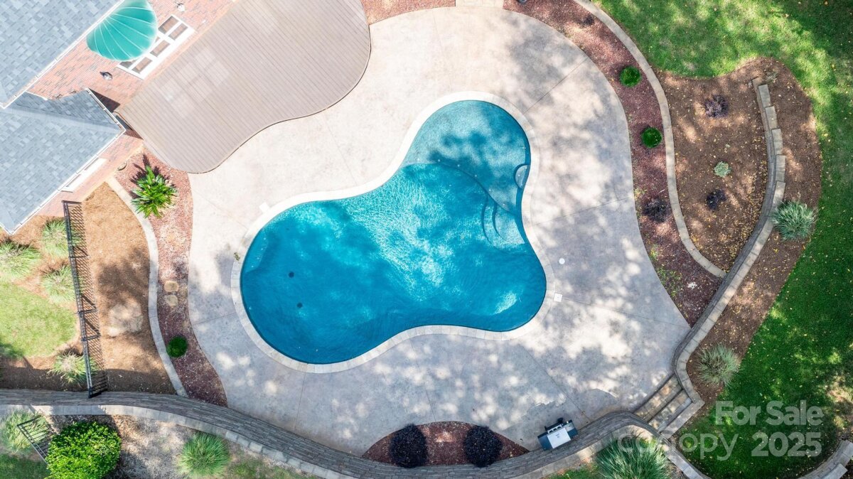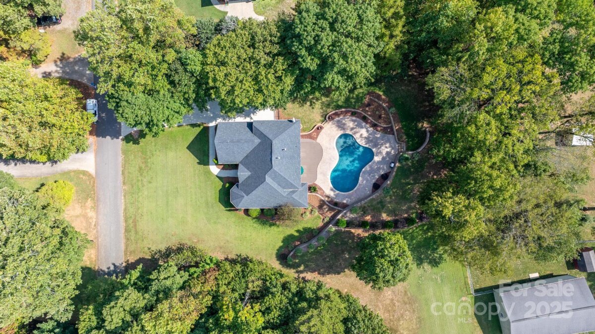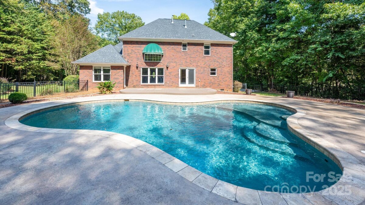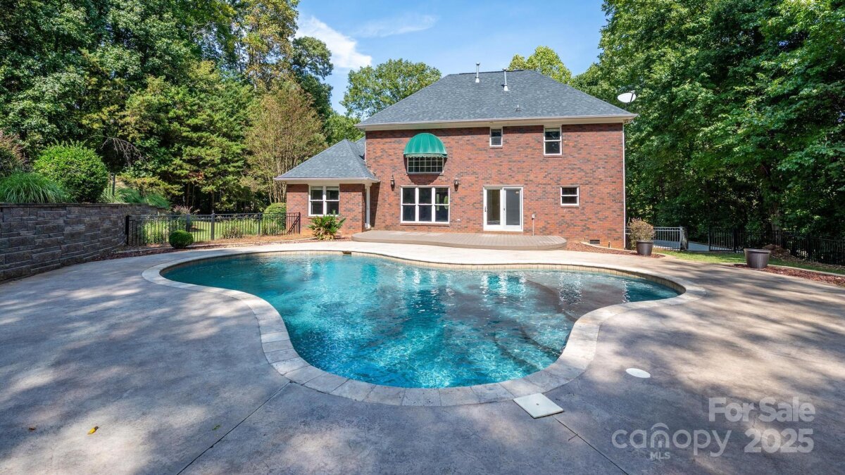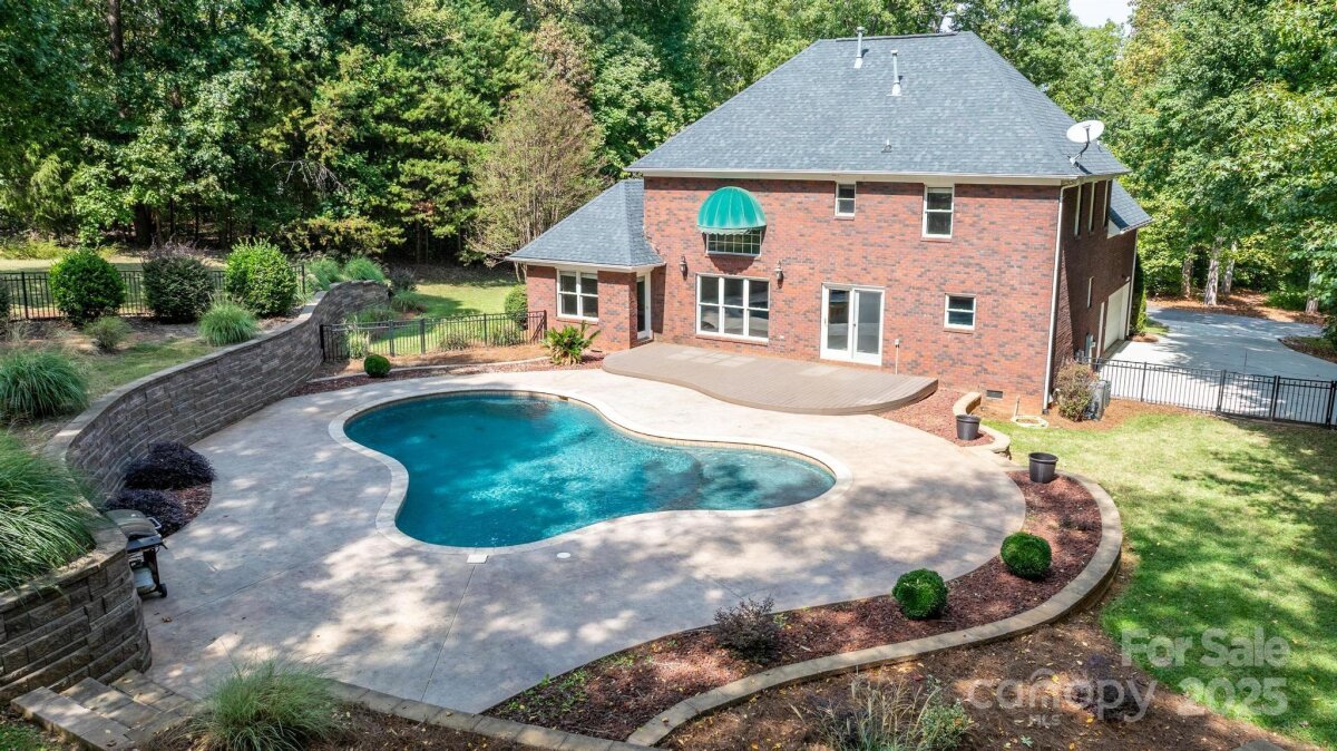 Location, location, location! Custom built by the seller, this full brick ranch sits on nearly an acre, and has a main level primary suite, formal dining room, open floorplan from kitchen to greatroom, 2-story ceiling in the great room, 2 bedrooms and a bonus room upstairs. Gunite pool and beautifully landscaped back yard for entertaining and family enjoyment. Lovely treed lot offers privacy. HOA is voluntary, to maintain entrance and community pond. Conveniently located close to Lowes Corporate HQ and Davidson. Roof replaced in 2017/2018 approx, upstairs HVAC is new, downstairs was replaced in 2021. Priced to allow buyer to make some cosmetic updates inside, but homes of this quality and lots this size are hard to find!