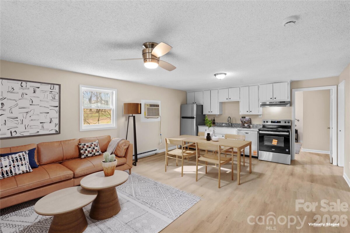 New Price! Must see this Jewel Box Home with Fresh New Renovations! Charming Troutman is situated near the shores of Lake Norman, and is experiencing exciting growth. Look this affordable Home with close proximity to Main Street, for Shopping, Dining, Hair Salons, and Medical Offices. Public Lake Access with Boat Launch at nearby Stumpy Creek. With an Open Floor Plan of Two Bedrooms and One Full Bath, a Kitchen, Dining area and Great Room, it will be "Right Sized" for Buyers. New Updates: Architectural Roof 2026, New Exterior Doors 2026, New full Bathroom amenities and Plumbing lines 2026, New LVP Flooring throughout 2026, New Ceiling Fans and Lighting fixtures 2026, Brand New Stainless Appliances 2026, New Granite Counters 2026, Freshly Painted interiors and exteriors. Enjoy the Covered Front Porch, and the huge Yard. Ready for your Vegetable Garden. No HOA. Thank you for Showing!
