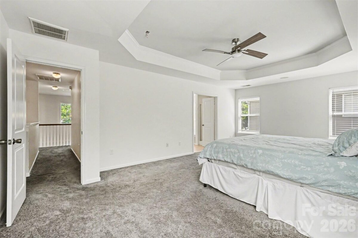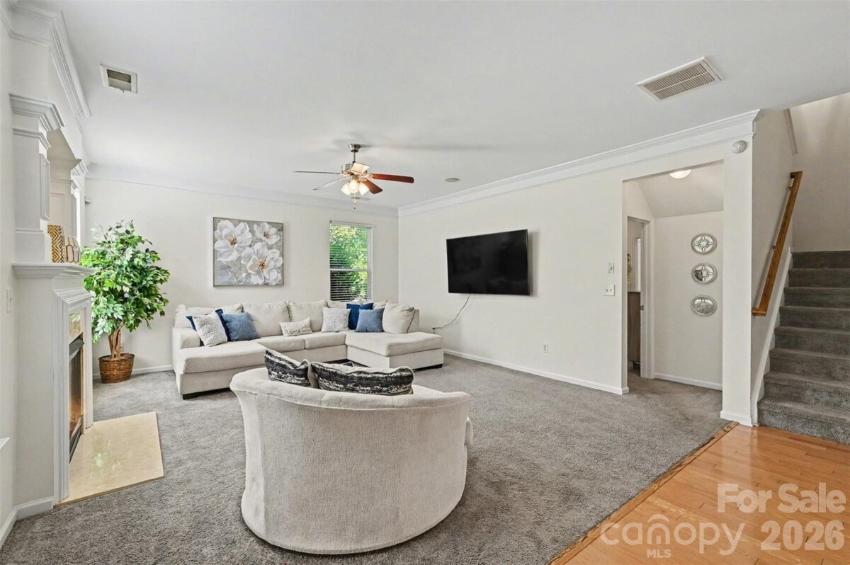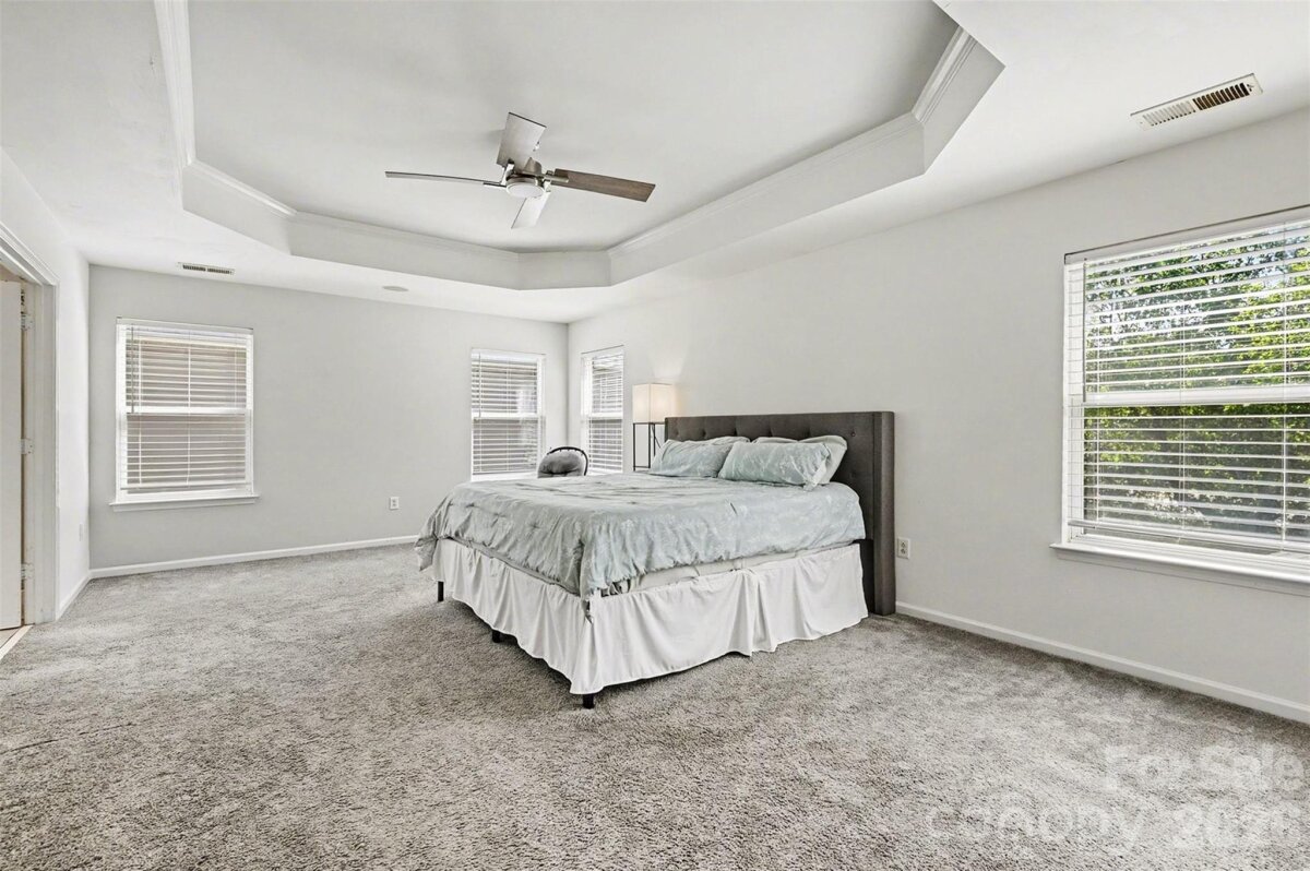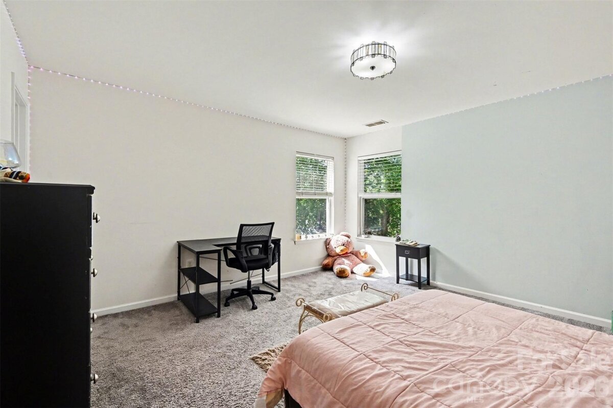 Welcome to this beautifully maintained two-story home where curb appeal and comfort come together from the moment you arrive. Inside, natural light pours into an open and airy main level, thoughtfully designed living spaces create an ideal setting for both everyday living and entertaining. The layout flows effortlessly from the main living area into a bright sunroom, offering a peaceful retreat with views of the backyard. The kitchen serves as the heart of the home, featuring generous counter space, a central island, and seamless connection to the surrounding living and dining areas. Upstairs, the home continues to impress with spacious bedrooms and a versatile loft-style sitting area that can easily adapt to your needs, whether as a home office, media space, or additional lounge. The primary suite is a true retreat, highlighted by a tray ceiling, abundant natural light, and designed for relaxation. Step outside to enjoy a private, fenced backyard with plenty of room to unwind, garden, or host gatherings. The outdoor space offers a balance of open lawn and shaded areas, creating a comfortable extension of the home. Enjoy access to neighborhood amenities including a community pool and shared outdoor spaces that encourage connection and recreation. The location places you just minutes from shopping, dining, and everyday conveniences, with easy access to major roadways, nearby parks, making commuting and exploring Charlotte enjoyable! This home blends space, comfort, and location into one inviting opportunity in a well-established neighborhood.