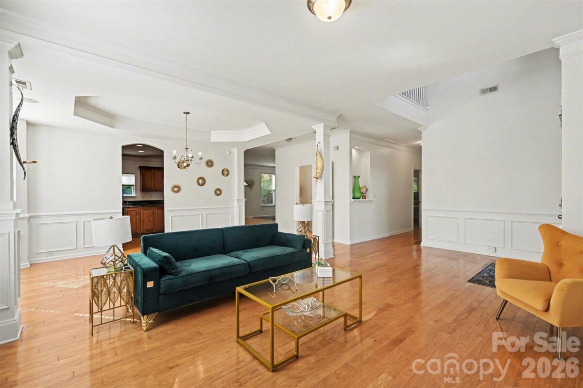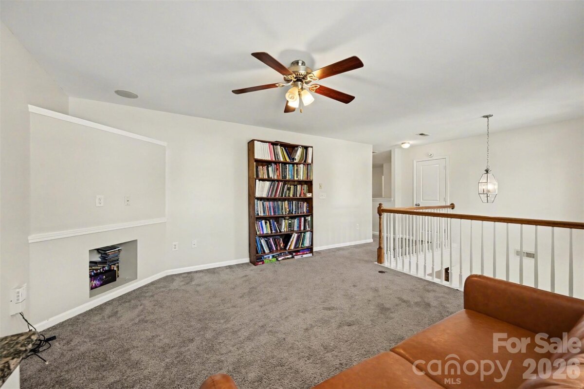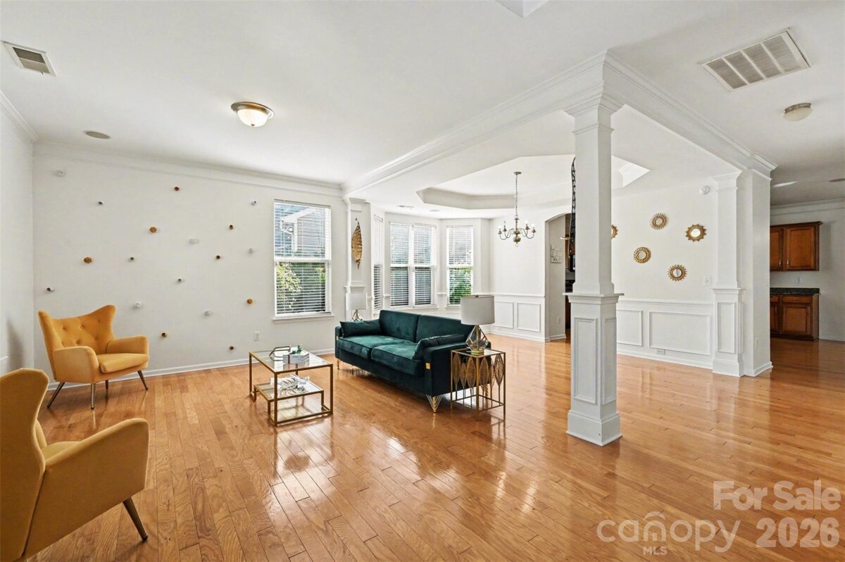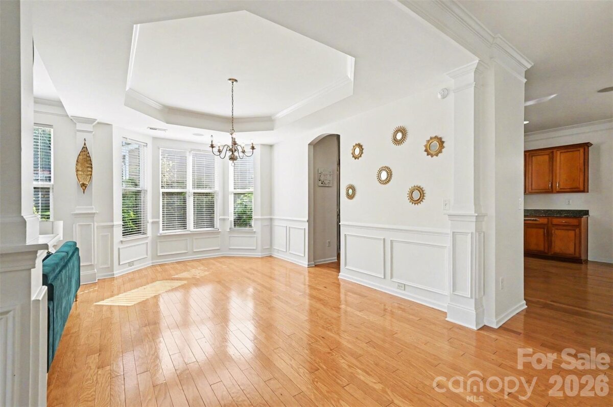 Welcome to this beautifully maintained two-story home where curb appeal and comfort come together from the moment you arrive. Inside, natural light pours into an open and airy main level, thoughtfully designed living spaces create an ideal setting for both everyday living and entertaining. The layout flows effortlessly from the main living area into a bright sunroom, offering a peaceful retreat with views of the backyard. The kitchen serves as the heart of the home, featuring generous counter space, a central island, and seamless connection to the surrounding living and dining areas. Upstairs, the home continues to impress with spacious bedrooms and a versatile loft-style sitting area that can easily adapt to your needs, whether as a home office, media space, or additional lounge. The primary suite is a true retreat, highlighted by a tray ceiling, abundant natural light, and designed for relaxation. Step outside to enjoy a private, fenced backyard with plenty of room to unwind, garden, or host gatherings. The outdoor space offers a balance of open lawn and shaded areas, creating a comfortable extension of the home. Enjoy access to neighborhood amenities including a community pool and shared outdoor spaces that encourage connection and recreation. The location places you just minutes from shopping, dining, and everyday conveniences, with easy access to major roadways, nearby parks, making commuting and exploring Charlotte enjoyable! This home blends space, comfort, and location into one inviting opportunity in a well-established neighborhood.