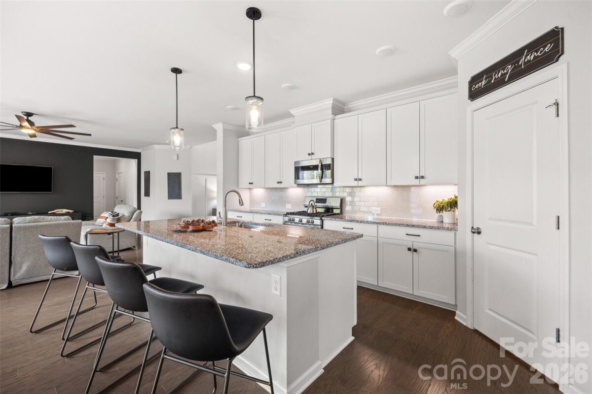 Beautifully maintained 5 bedroom, 3 full bathroom home in the well sought after neighborhood of Massey, located in the award-winning Fort Mill School District. As you enter the home you're greeted with an inviting foyer with large ceilings and custom woodwork, making the space warm and inviting. An open concept living room w/ a gas log fireplace and large windows, bringing in tons of natural light. The kitchen is equipped with tons of granite countertop space for cooking, plenty of cabinets for storage and a large pantry with custom wood shelving. It flows seamlessly into the breakfast area creating an open feel that's perfect for everyday living and entertaining. Downstairs you'll also find an office w/ built-ins and french doors, a full bedroom and full bathroom, perfect for a guest room or a playroom. Upstairs is 4 additional bedrooms, the laundry room and 2 full bathrooms. This home is situated right in front of a large flat green space, perfect area for kids to run around and play while you relax on the front porch. Don't forget about all the amazing amenities this neighborhood has to offer including a fitness center and pool. You won't want to miss this opportunity.