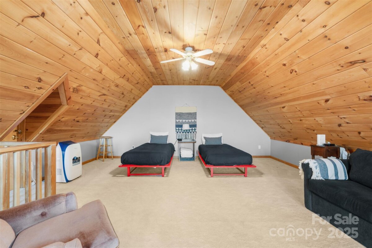 No, you are NOT dreaming! This 13.95 ACRE BEECH MOUNTAIN ESTATE - "ATALINA CABIN" won't last long & is truly a ONE of a KIND MOUNTAIN HOME! This extraordinary PRESTINE 3 BEDROOM + LOFT BEDROOM & 2.5 BATH property is more than just a home; it’s a magical mountain escape that promises serenity and adventure in equal measure. Unlike any other property on Beech Mountain, "Atalina Cabin" boasts beauty, seclusion, expansive land as well as beautiful westerly views into Tennessee! Whether you choose to spend your day wandering through the expanse of 13.95 acres discovering hidden paths and abundant wildlife or unwind on the rear deck while soaking in the tranquil surroundings, you truly won't want to be anywhere else! The main level offers an expansive open floor plan seamlessly connecting the renovated kitchen, dining & family rooms with a wall of windows that flood the main living space with natural sunlight which showcase the mountain views. The striking floor-to-ceiling stone wood burning fireplace adds character and warmth ideal for relaxing after a cold day on the slopes. The main level also offers a 1/2 bath, laundry room & primary bedroom suite. The upper level has a spacious loft bedroom which could also be used for a workout room or office. The lower level has the 2nd family room, 2 guest bedrooms and a beautifully renovated full bath. Another amazing amenity of "Atalina Cabin" is the storm/bomb shelter below ground which has power, water via a private well, sink and toilet. Buckeye Creek also runs below the cabin & is a short hike to the creeks w/mini waterfalls and hidden pockets for water wading. Whether you’re into outdoor activities, wildlife watching or simply soaking in spectacular sunsets, this property offers endless opportunities. Conveniently located just 5 minutes from Ski Beech Resort, this property allows you to easily access all the thrilling outdoor Beech Mountain activities year-round while still being your private sanctuary. This home is beautifully furnished and the furnishings convey at closing. Beech Mountain Club membership is also available should you choose to become a member where you will enjoy access to member only amenities, including FINE DINING, championship golf, outdoor swimming pool, a fully-equipped fitness center & pickleball/tennis courts.
