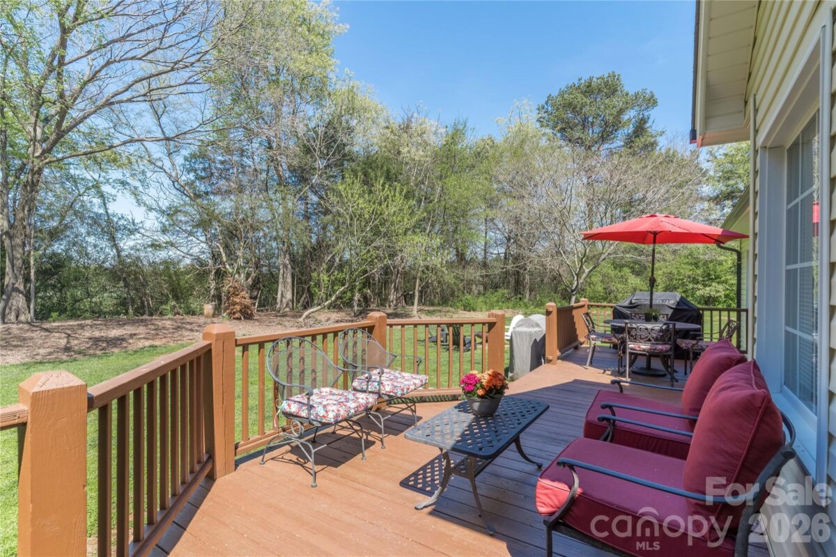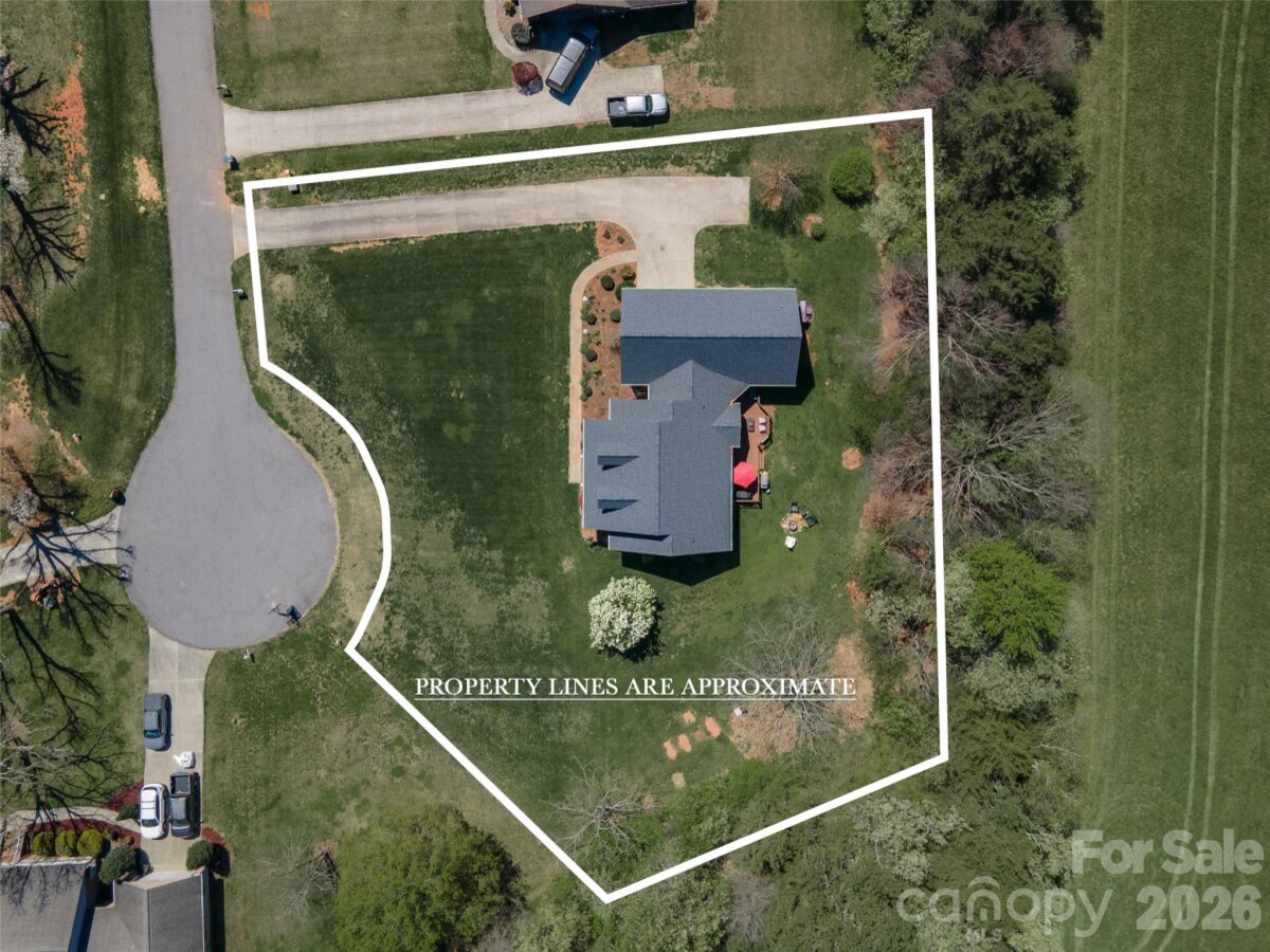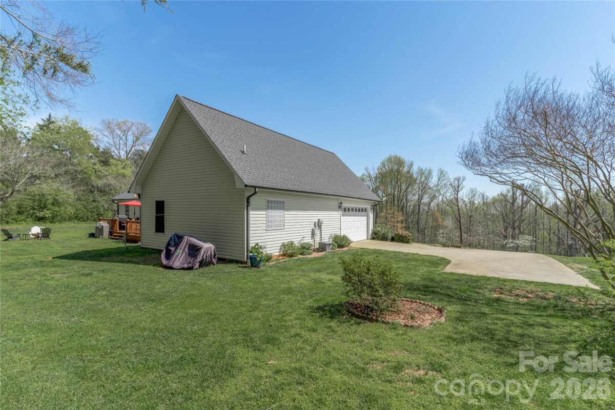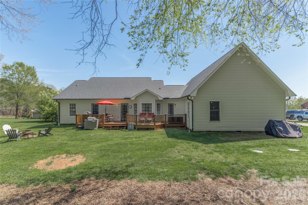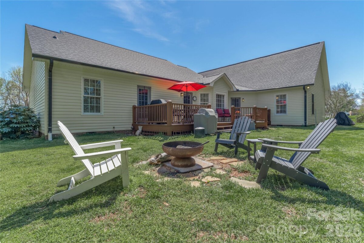 Country living in this one level home with relaxing rocking chair front porch to admire the lush landscaping. Located on a large lot in a quiet cul-de-sac, yet only minutes from I40 or I77. Primary bedroom on main along with a spacious dining room, open kitchen and great room, breakfast area and a large bonus room upstairs that would make a great office, theatre room, or workout area. Primary bath has separate shower, tub, dual vanity sink and walk-in closet. A spacious deck for enjoying your private backyard and a brand new 10X16 shed was just installed and conveys with the property.