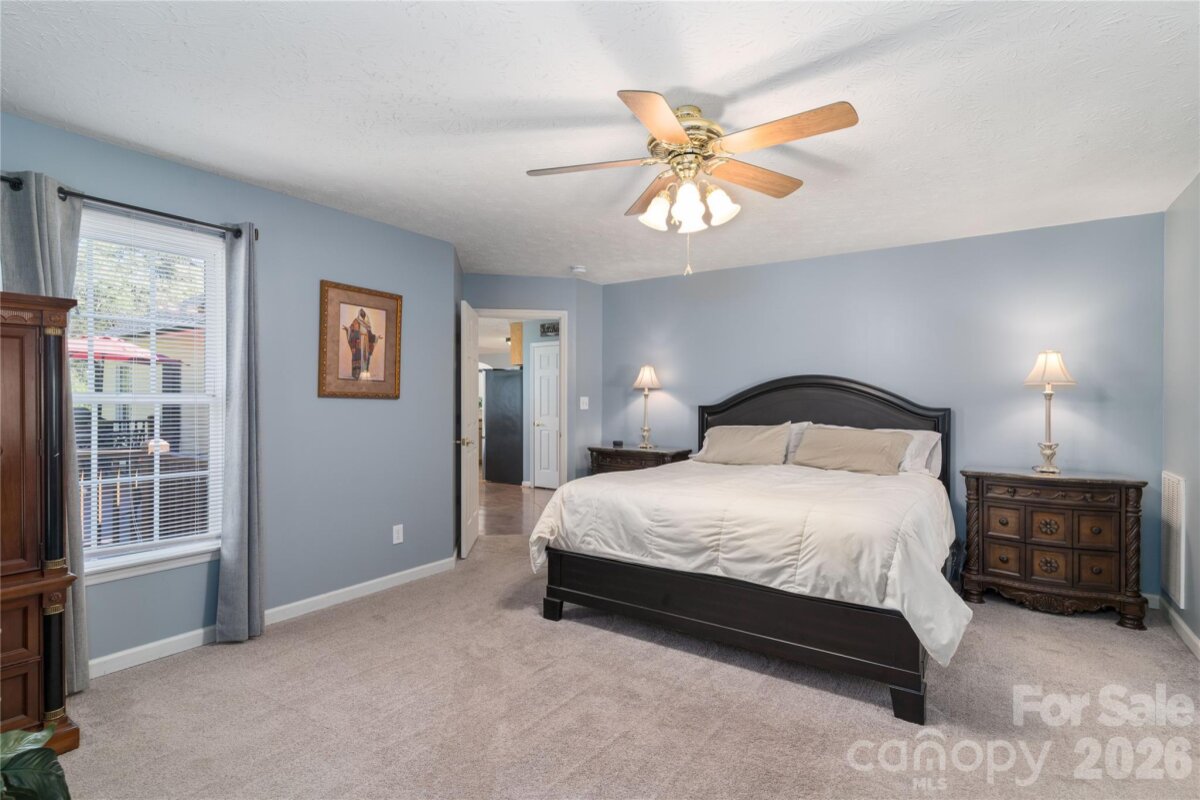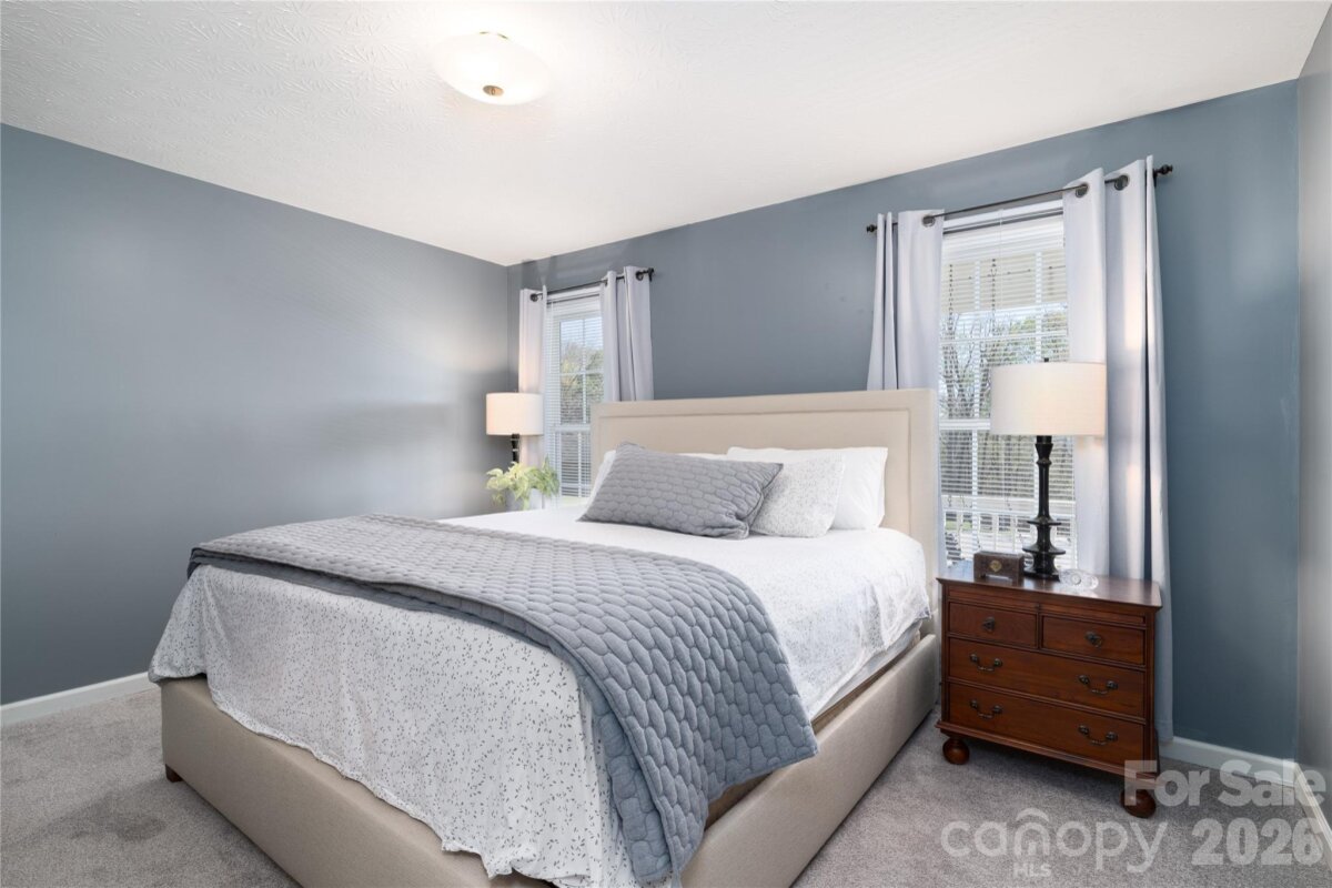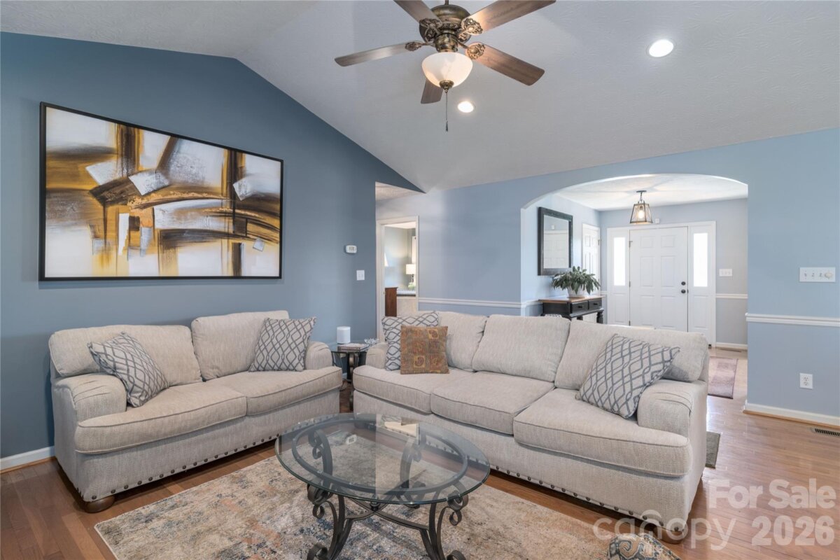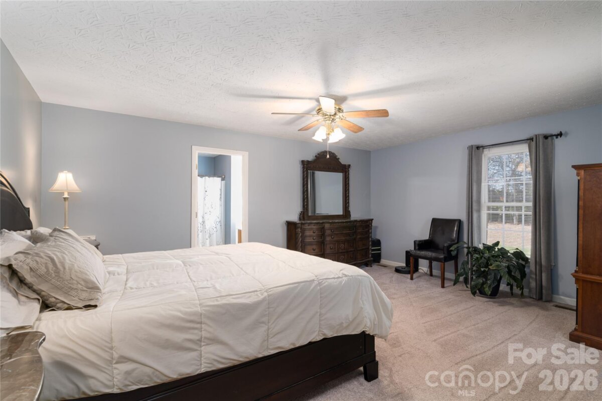 Country living in this one level home with relaxing rocking chair front porch to admire the lush landscaping. Located on a large lot in a quiet cul-de-sac, yet only minutes from I40 or I77. Primary bedroom on main along with a spacious dining room, open kitchen and great room, breakfast area and a large bonus room upstairs that would make a great office, theatre room, or workout area. Primary bath has separate shower, tub, dual vanity sink and walk-in closet. A spacious deck for enjoying your private backyard and a brand new 10X16 shed was just installed and conveys with the property.