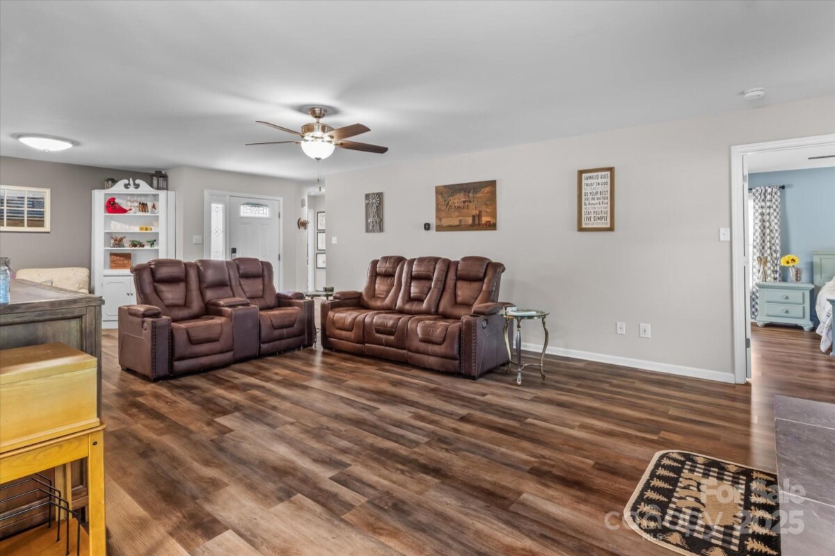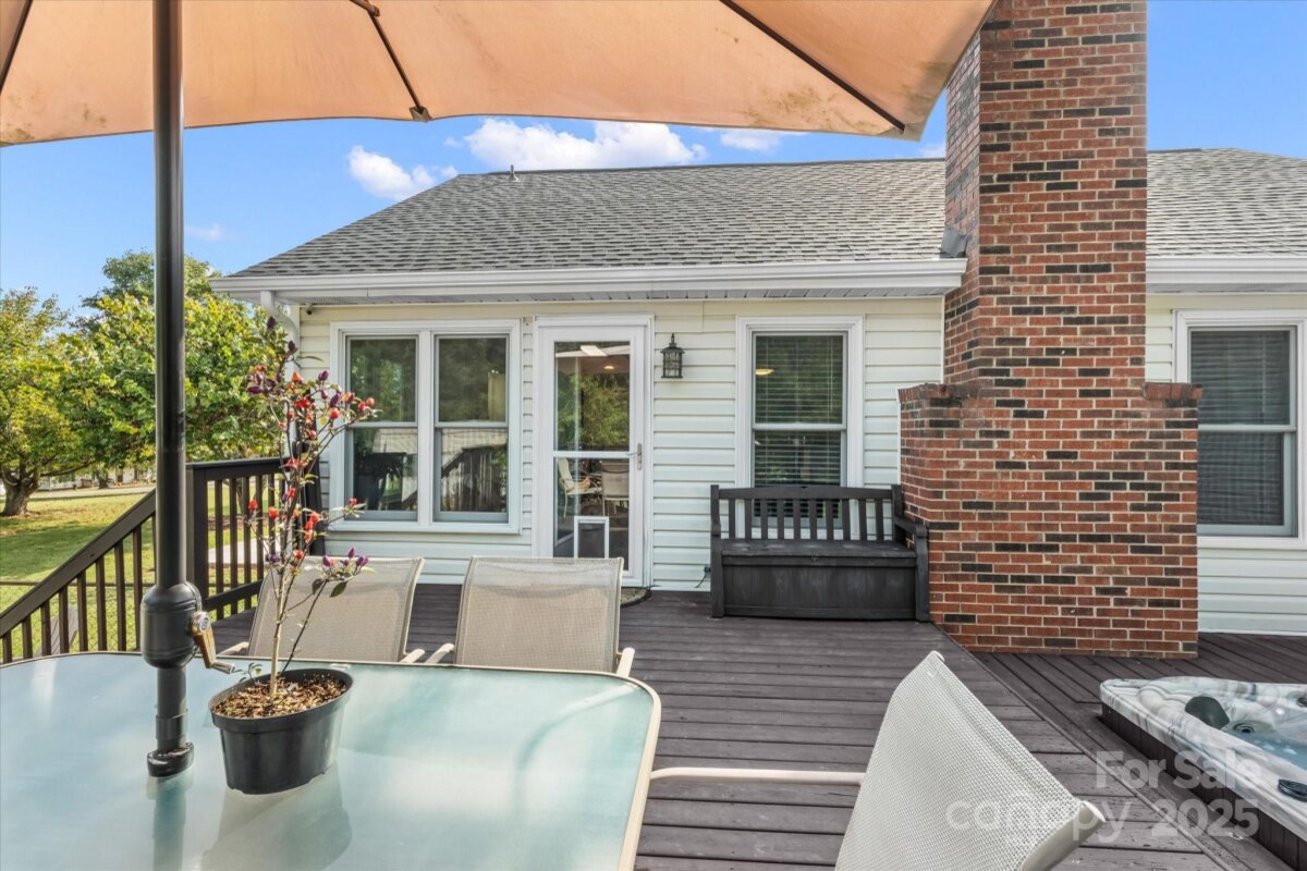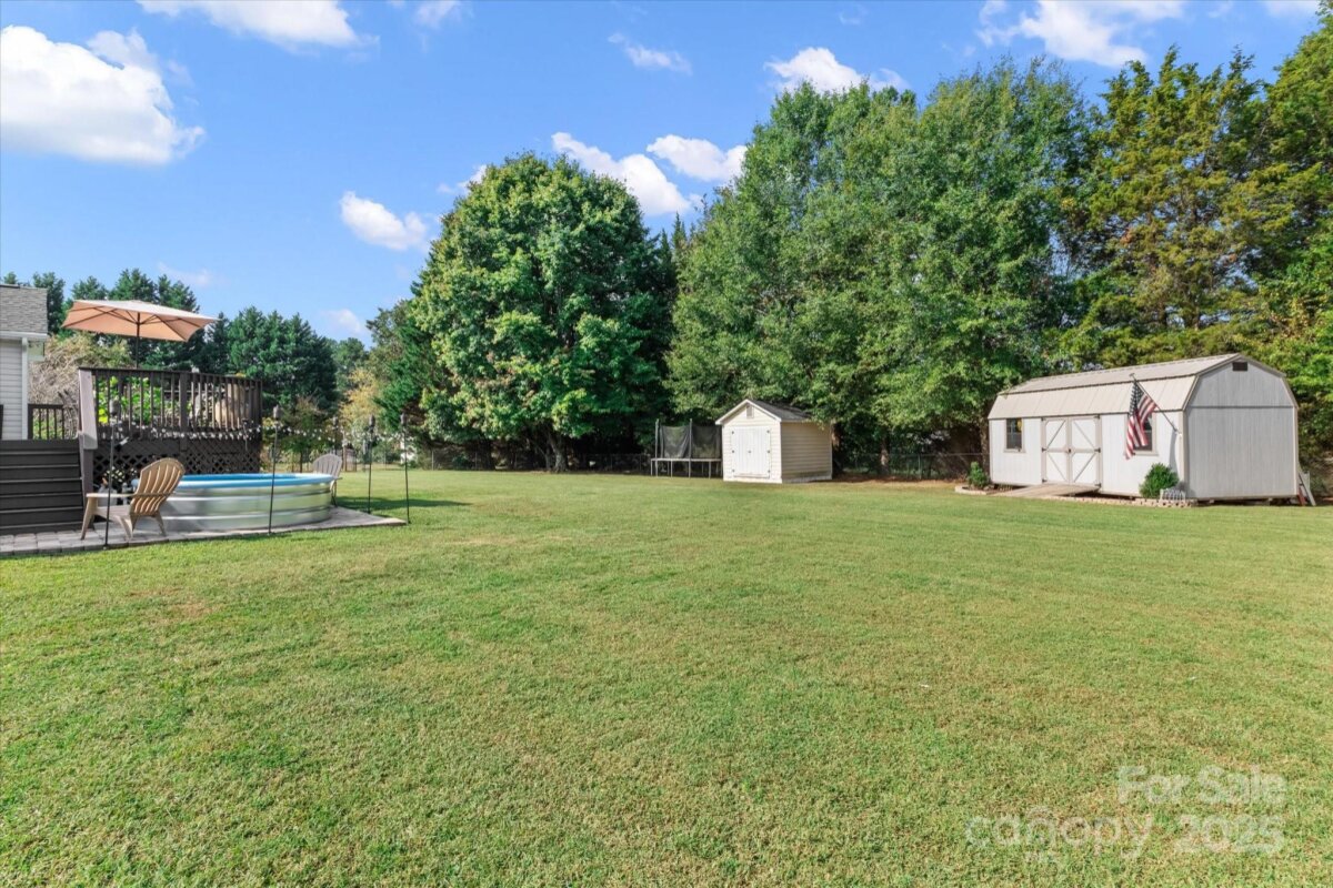 Lippard Springs is a quiet community located conveniently between Troutman and Statesville with easy access to Mooresville. This Home is a must see for anyone dreaming of one level living, cottage style, and large lots. Offering picturesque setting and modern conveniences. Upon entering you'll admire the updated LVP flooring and wood burning fireplace in the large Living room with neutral paint tones. The Kitchen has updated brushed stainless appliances, single bowl sink and plenty of working space. Abundant refinished cabinetry and pantry storage. Landry closet is located off Kitchen for convenient use and extra storage. Washer and Dryer are included. Kitchen peninsula and breakfast area accommodates plenty of seating. Total of 3 Beds and 2 Baths. The Primary Bedroom overlooks the backyard and has a vaulted ceiling, perfect for large furniture. Closet with double hanging levels, shoe storage. The primary Spa Bath has jetted tub, tiled shower with glass door and dual sinks. Guest Bedrooms have comfy carpeting and ample closets. Ceiling fans give extra air circulation in the Primary and one guest Bedroom. The 2 car attached Garage allows for plenty of outdoor storage and car parking. Concrete drive was fully replaced in recent years and is widened for car, boat or camper storage. The private backyard is a highlight of this property. Whether eating a meal at the large table, relaxing in the modern hot tub, or taking a dip in the soaking pool, everyone will enjoy. Puppies will too! Fully Fenced Backyard includes 2 storage buildings. Move in Ready!!! 2025 Water Heater, 2021 Roof, 2019 Heat Pump