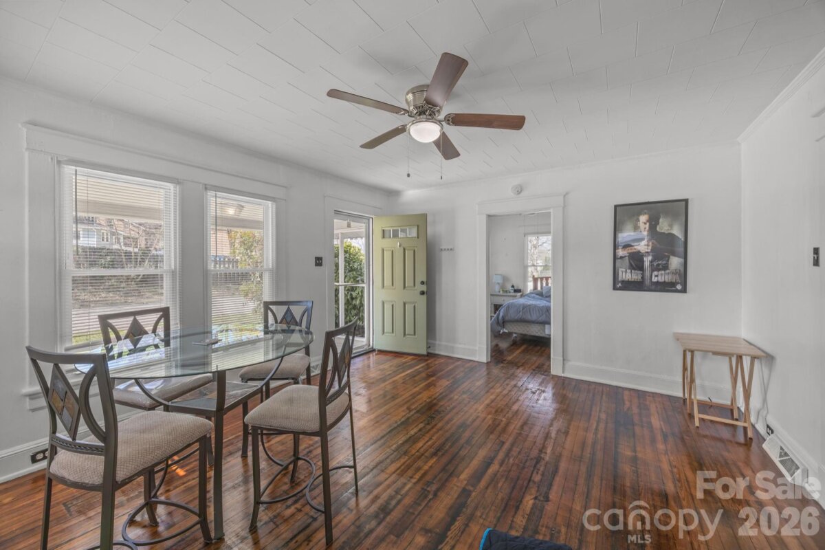 Located just minutes from downtown Statesville, this inviting home offers character, thoughtful updates, and excellent potential for homeowners and investors alike. The covered front porch provides a welcoming entry and a relaxing space to enjoy the neighborhood. Inside, you'll find original hardwood floors, abundant natural light, and an inviting layout that flows easily between the living and dining areas. The kitchen features stainless steel appliances, ample cabinetry, and durable flooring designed for everyday living. The updated bathroom includes a spacious tiled walk-in shower with modern finishes. The two-bedroom layout offers comfortable living with flexibility for a guest room, home office, or personal space. Ideally situated near shopping, dining, and major highways, this property presents a great opportunity for first-time buyers, downsizers, or those looking to add a solid property to their investment portfolio. Seller paid 2-10 Warranty included Refrigerator, washer, and dryer to convey. Television and sectional negotiable with an acceptable offer.