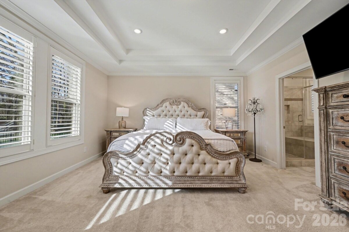 Welcome to this exquisite 4-bedroom, 3.5-bath home that seamlessly combines elegance, comfort, and convenience. As you enter, a striking two-story foyer sets the tone for sophistication, while the open floor plan is perfect for both daily living and entertaining, centered around a cozy fireplace that adds warmth to the main living area. The heart of the home is the beautifully appointed kitchen, equipped with stainless steel appliances, a spacious island ideal for gatherings, ample cabinet and counter space, and a generous pantry for all your storage needs. The main-level primary suite serves as a serene retreat, featuring a luxurious spa-like bathroom and a large walk-in closet. Upstairs, the additional bedrooms are complemented by a delightful terrace that overlooks the grand entryway, enhancing the home's airy ambiance. Step outside to the screened-in back porch, a perfect haven for enjoying peaceful mornings or tranquil evenings. Numerous updates throughout this meticulously maintained home. Ideally situated just minutes from the upscale shopping and dining options at SouthPark, as well as the charming boutiques and restaurants of Downtown Matthews, this home truly embodies comfort, style, and prime location. Don’t miss your chance to make this beautiful residence your own!