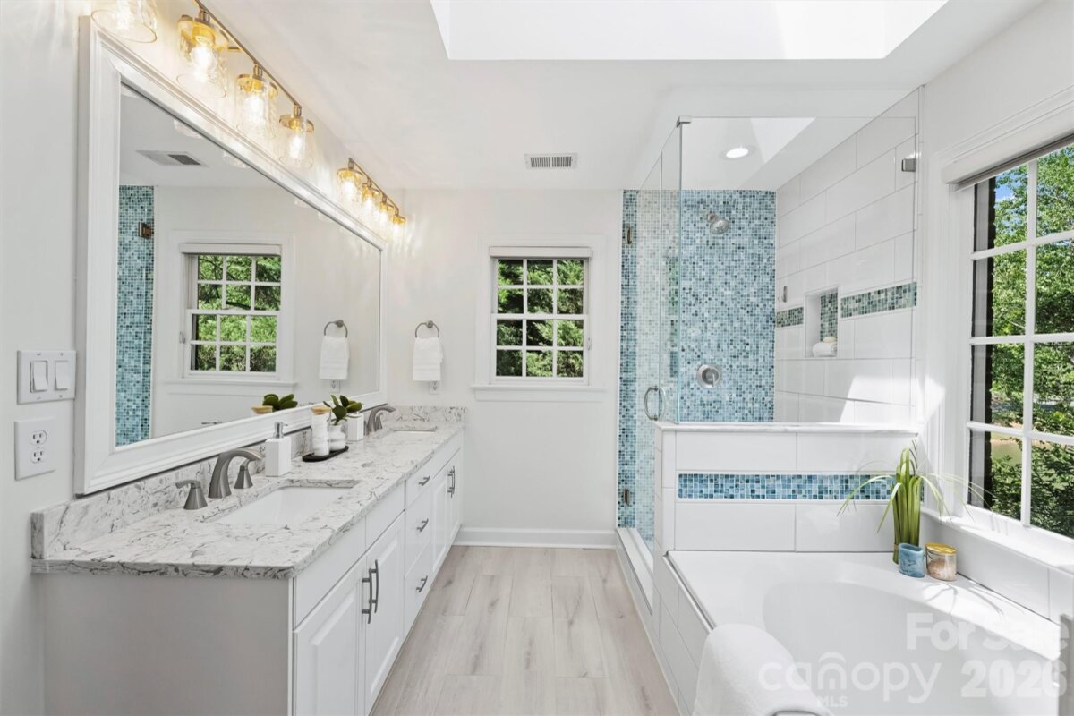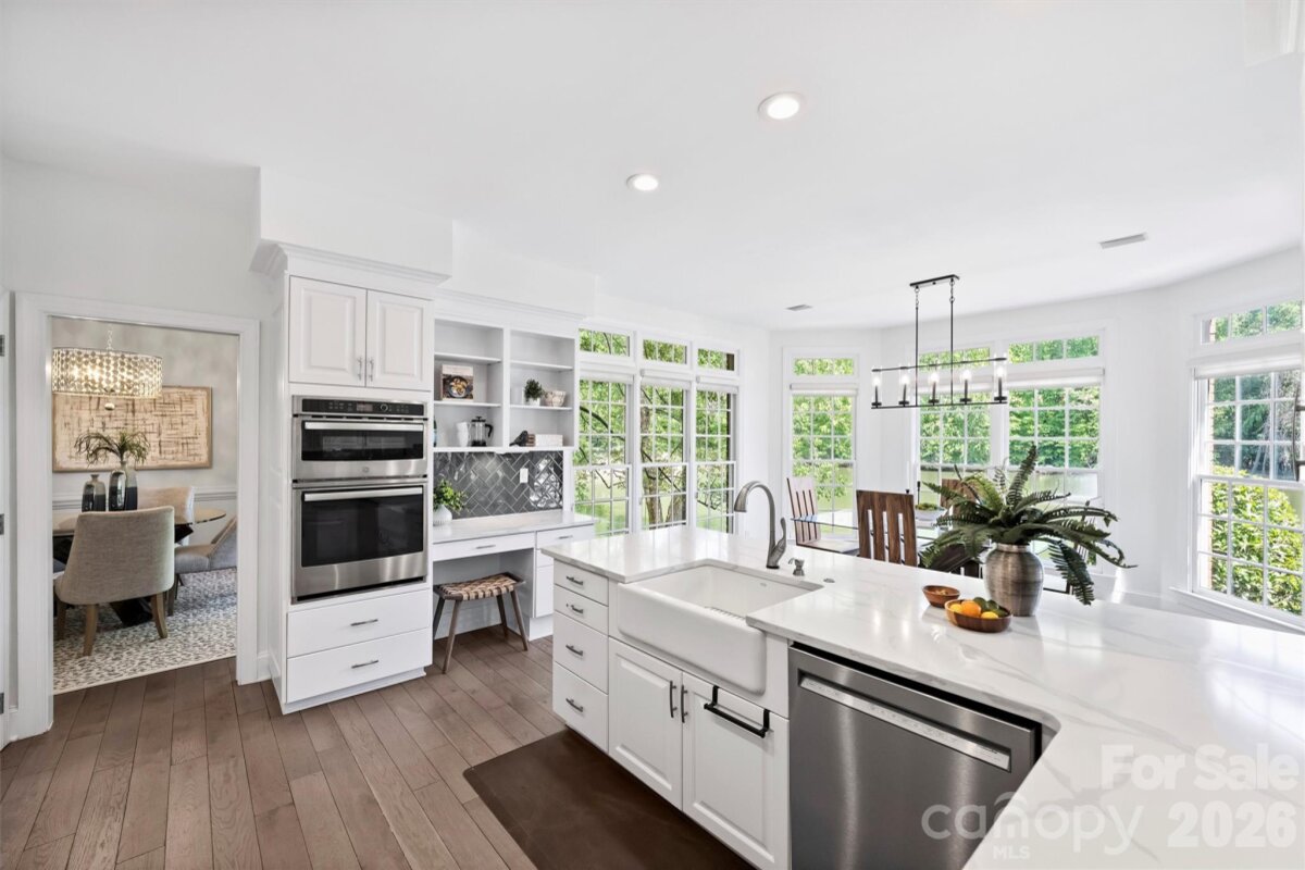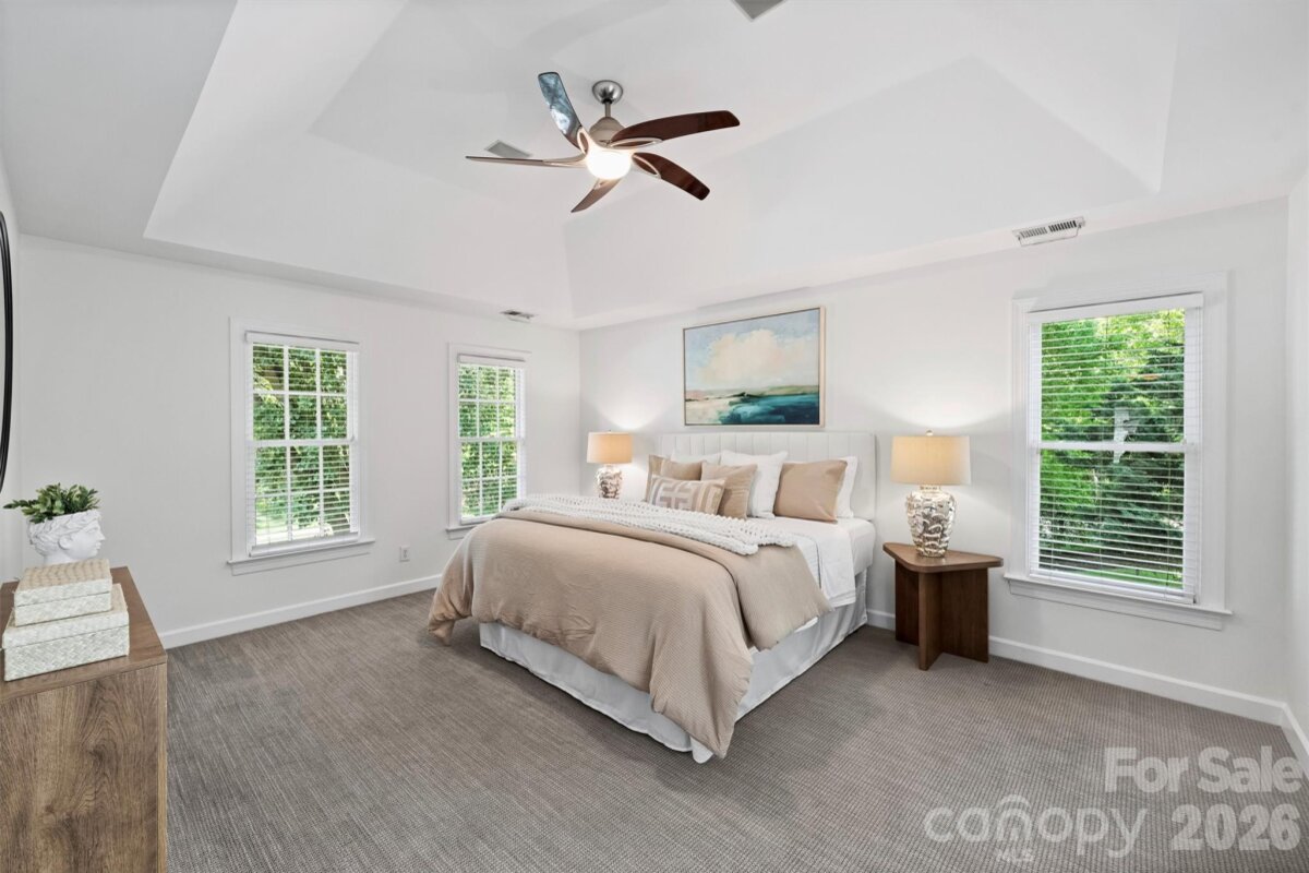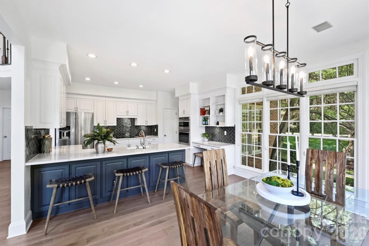 **OFFER DEADLINE Sunday 4/26 @ 2p** With peaceful pond views and a half acre lot, every day is a staycation at 127 Summermore Drive! This full brick home welcomes you with a wide foyer that opens to an impressive two-story great room featuring a gas fireplace, coffered ceiling, and double sliding doors to the rear deck. Expansive windows fill the space with incredible natural light. The adjacent kitchen has been beautifully updated with quartz countertops, stainless steel appliances, wall oven, white cabinetry, farmhouse sink, sleek tile backsplash, and counter seating. The sun-drenched breakfast nook overlooks the pond, and is a great spot for morning coffee. Upstairs, the spacious primary suite offers an updated bath with dual vanity, garden tub, tiled shower, and skylight, plus a custom walk-in closet. Three generously-sized secondary bedrooms and a hall bath complete the second level living areas--but don't miss the convenient walk-up attic with excellent storage space. The outdoors is what makes this home truly special, with a two-level deck overlooking the serene pond and central fountain. Spanning 0.46 acres, this lot also provides plenty of green space to enjoy. Additional highlights include fresh interior paint, a dedicated laundry room, hardwoods on the main level, plush designer carpet upstairs, metal staircase balusters, designer light fixtures, and an epoxy floor in the side-load 2-car garage. Ideally located 0.4 miles from the Greenway, across from Charlotte Christian, and 1.9 miles to Providence Day. Welcome home!