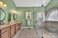 Space, flexibility, and privacy come together in this beautifully designed full brick home offering over 3,500 square feet of thoughtfully planned living space on an acre lot. From the moment you step inside, you’re greeted by warm hardwood floors that flow throughout the main level, complemented by an inviting layout featuring formal living and dining spaces, a spacious great room, and abundant natural light throughout. The heart of the home is the well-appointed kitchen, complete with a gas range, granite countertops, tile backsplash, stainless steel appliances, and a decorative center island—perfect for both everyday living and entertaining. Notable updates include a new stove and dishwasher (2021), adding both style and functionality. The breakfast nook, highlighted by a charming bay window, overlooks the private fenced backyard and wooded surroundings, creating a peaceful start to your day. A true standout feature is the main-level primary suite, thoughtfully designed for comfort and versatility—ideal for multigenerational living or an in-law suite. This spacious retreat features brand new carpeting, a zero-entry walk-in shower, and a walk-in closet with washer & dryer (will convey), offering ultimate convenience. With direct access to the raised outdoor patio, it provides a seamless indoor-outdoor lifestyle. Upstairs, you’ll find all new carpeting throughout, along with a secondary primary suite offering a luxurious retreat, complete with a tray ceiling, spacious walk-in closet, and a spa-like en-suite bath featuring a stand-alone soaking tub, glass and tile walk-in shower, and separate raised vanities—creating the perfect private escape. In addition, the upper level includes three generously sized secondary bedrooms, a second laundry area for added convenience (both washer and dryer sets convey), and a large bonus room with an electric fireplace, ideal for a media room, playroom, or flex space to fit your lifestyle. Step outside to enjoy the exceptional outdoor living areas, including a raised covered patio with ceiling fans and skylights, ideal for relaxing or entertaining year-round. An additional uncovered patio connects directly to the main-level suite, enhancing the home’s functionality and flow. The private lot backs to mature trees, offering a serene, wooded backdrop. Major system updates provide peace of mind, including a new HVAC system installed in 2023 and a new water heater in 2021. The septic tank was recently pumped on March 12, adding another layer of confidence for the next owner. Additional highlights include a side-load oversized garage with a convenient entry door and a spacious layout designed for both everyday living and entertaining. Located in the desirable Hidden Hills community, this home is just minutes to Pine Lake Country Club, with easy access to Mint Hill and Matthews—offering the perfect blend of privacy and convenience.