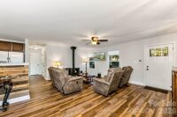 Tucked away on approximately 7.4 acres +/-with over 200 ft of river frontage, this secluded property offers privacy, comfort, and adventure within a gated community. The main home features 3 bedrooms and 2 bathrooms with fresh paint and new flooring on the main level, stainless steel appliances, accent walls, a dedicated laundry room, and a cozy wood burning fireplace. The primary suite includes an en suite bathroom with a garden tub, separate shower, and a large walk in closet. An oversized bonus room provides flexible space for a home office, playroom, or additional living area. Enjoy outdoor living from the covered front porch or the back deck overlooking the fenced in yard, ideal for relaxing or entertaining. Also included on the same parcel is a charming 2 story river cabin with a 2 tier deck overlooking the river. The cabin may be used as a short term rental. Conveniently located near wineries, hiking trails, Stone Mountain, and more, this property offers peaceful seclusion close to outdoor and lifestyle amenities.