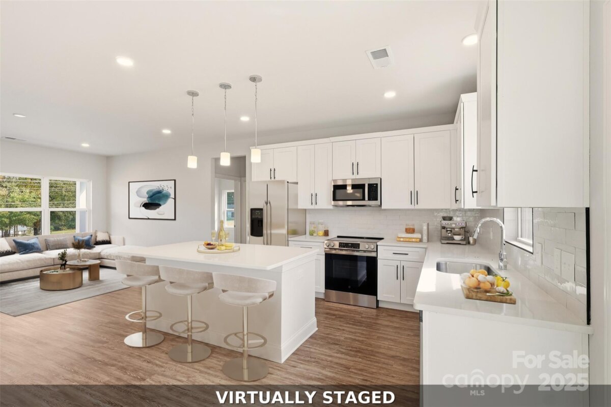Nothing compares to "brand-new!" This new construction ONE LEVEL 3-bedroom, 2-bathroom offers a light-filled, GREAT, open floor-plan with beautiful neutral finishes, esthetically pleasing to the eye. You'll love to cook in your new kitchen, featuring sleek quartz countertops, a spacious island, and top-of-the-line stainless steel appliances. The primary bedroom is large with a private, dual-vanity ensuite bathroom and VERY LARGE walk-in closet. High ceilings flow throughout. Elegant vinyl-plank flooring and comfy carpeting in the bedrooms create an inviting and airy atmosphere. The location is ideal, being close to downtown and amenities in an adorable established neighborhood. Experience the best of new construction with this pristine, move-in-ready home. Add some landscaping to make it yours. New construction, well-built homes on a nice-sized lot are rare at this price-point. Come tour today-your new home awaits!